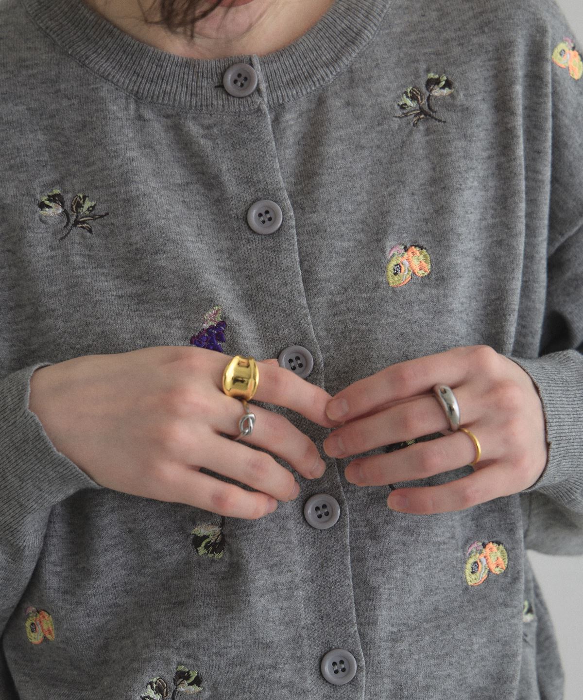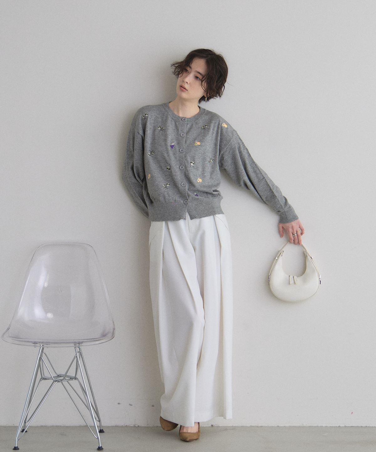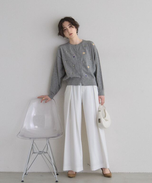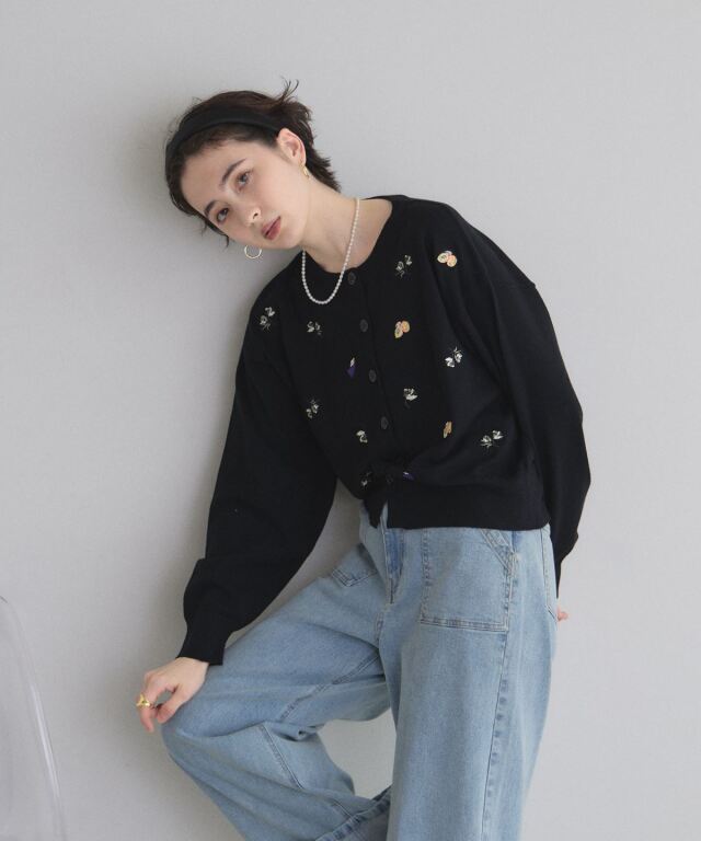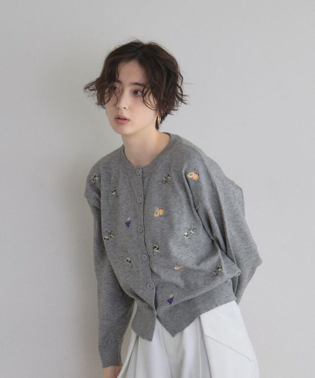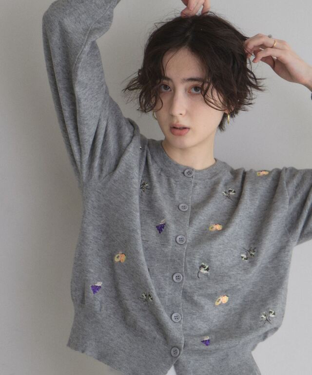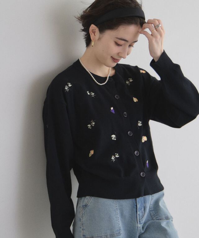 | 商品説明 | : | 花とフルーツの刺繍で、コーデに甘いアクセントを。 フラワーとフルーツの刺繍をちりばめた、遊び心のあるカーディガン。 ふっくらとした糸使いが優しい印象を与え、羽織るだけで可愛らしいスタイルを完成させます。 ほどよいサイズ感で、Tシャツやワンピースの上からさらりと合わせやすいのも魅力。 ボタンを留めてトップス風に着るのもおすすめです。 デイリーコーデを一気に華やかにしてくれる一枚です。 |