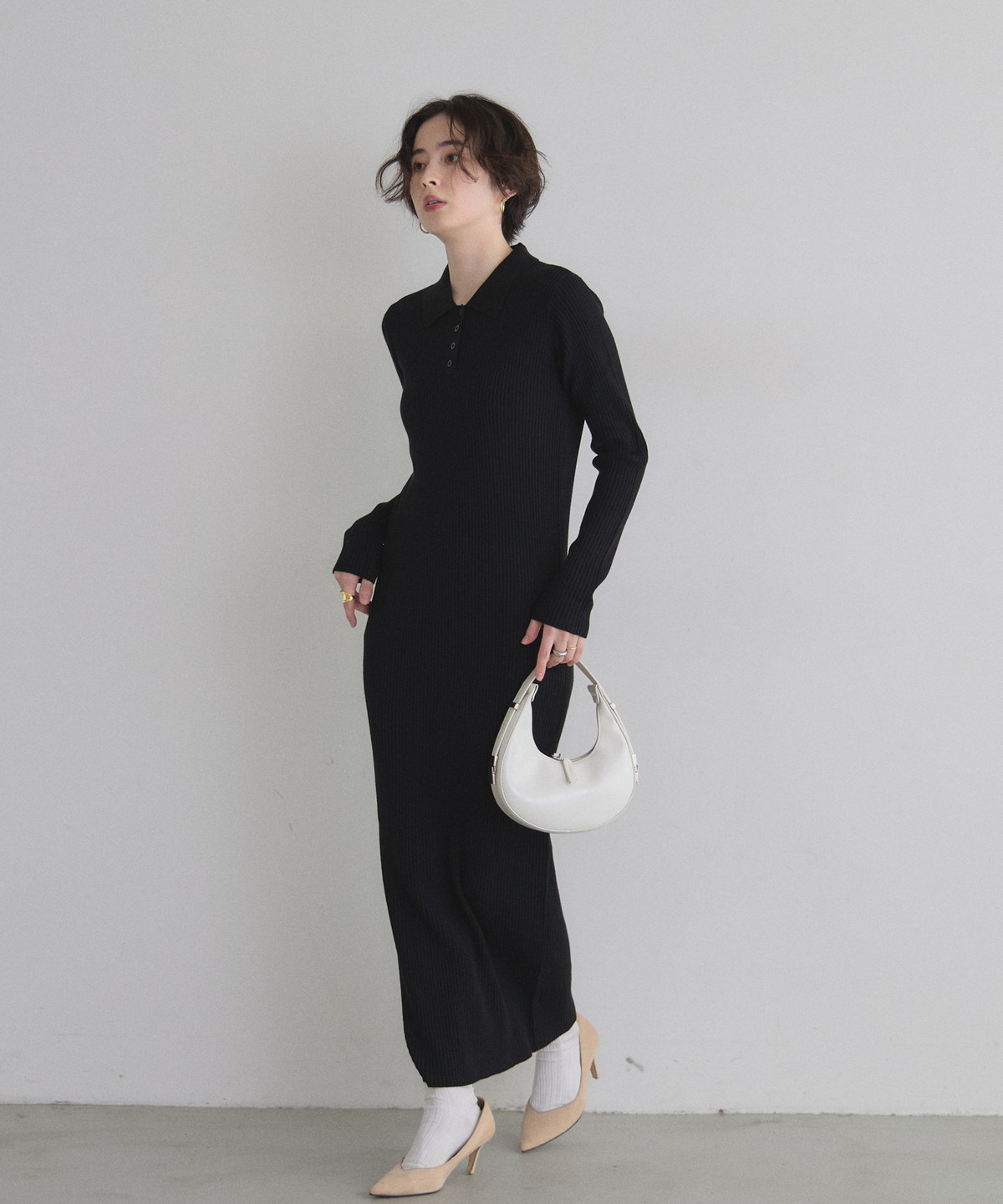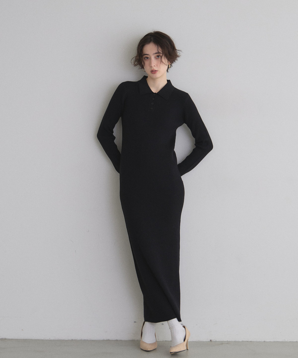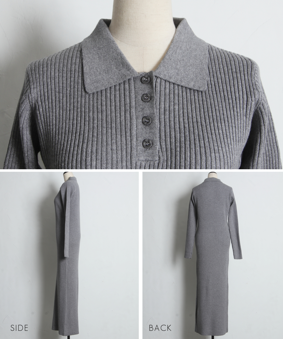 | 商品説明 | : | 着るだけで上品カジュアル、デイリーにぴったりのポロニットワンピース。 全体リブ仕立てで程よくフィット感を出したロングワンピース。 ポロ襟デザインがきちんと感をプラスし、縦ラインがスタイルアップ効果も演出します。 1枚でさらりと着られるのはもちろん、ジャケットやカーディガンとのレイヤードも楽しめ、 デイリーからお出かけまで幅広く活躍するアイテムです。 |