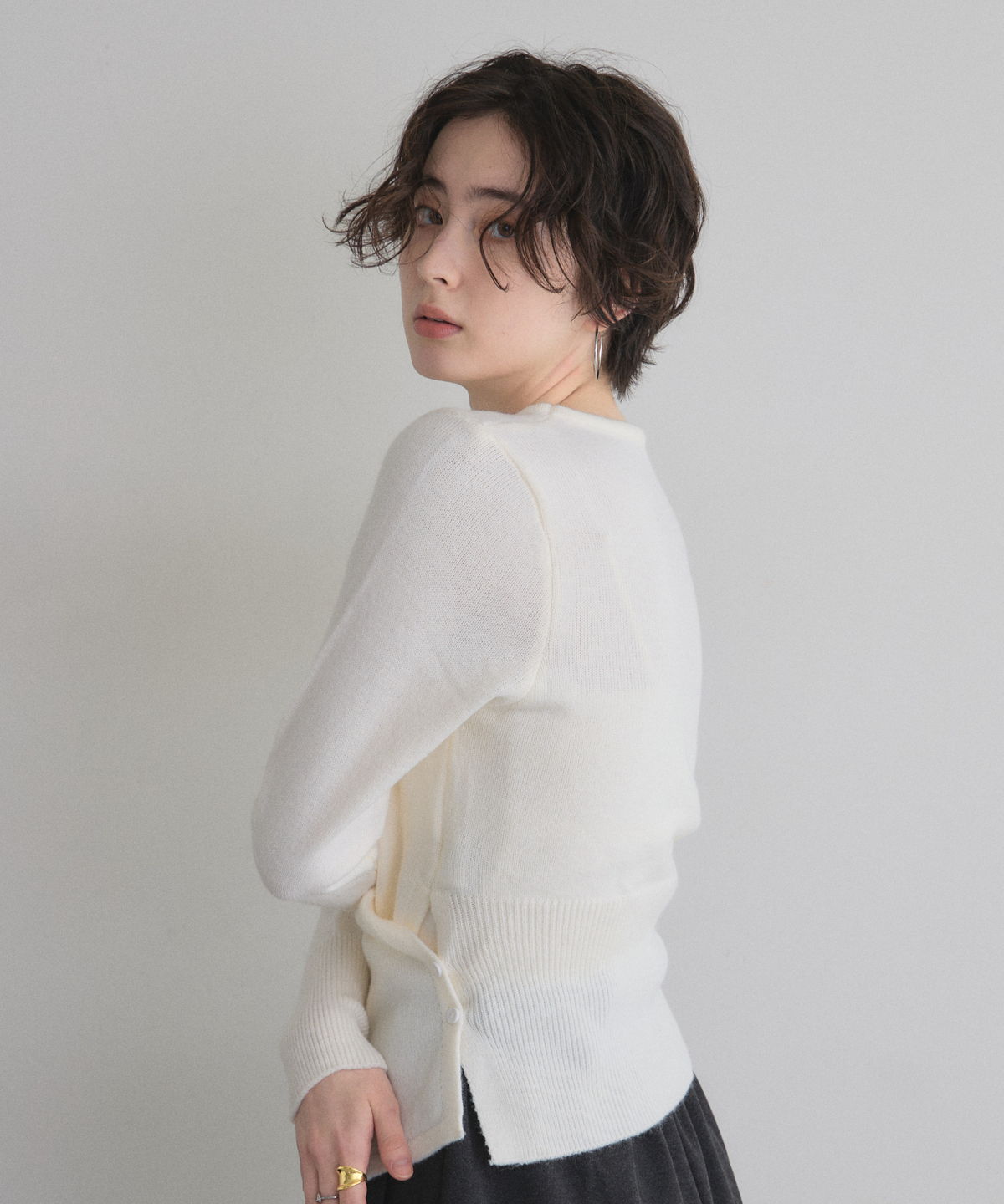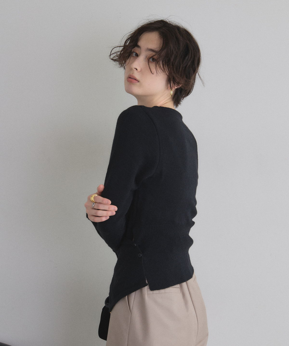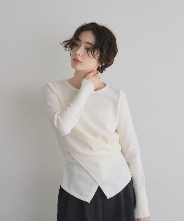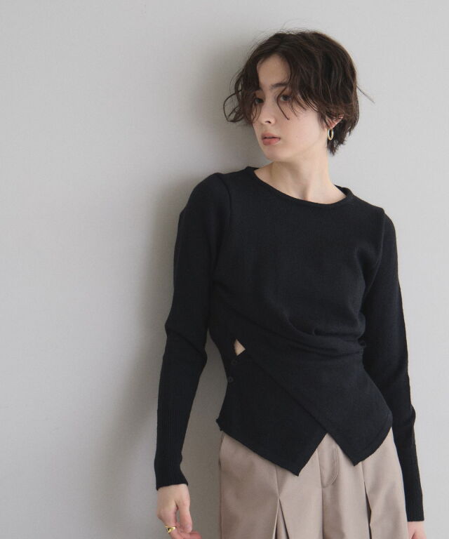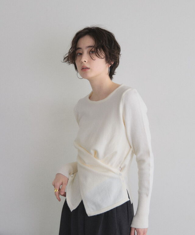 | 商品説明 | ≪ Attention:販売日、在庫状況はWEBと店舗と異なります。予めご了承くださいませ。≫ 立体的なクロスドレープが生み出す、上品なメリハリシルエット。 身体のラインを美しく見せるクロスドレープデザインが印象的なニット。 計算された生地の重なりが立体感を生み、気になるウエスト周りも自然にカバーしてくれる1枚です。 伸びのあるニット素材で着心地は軽やか、程よい厚みでロングシーズン活躍。 デニムでカジュアルに、スラックスやスカートで上品にと幅広くコーディネート可能。 女性らしいシルエットを楽しみたい日にぴったりのアイテムです。 |
