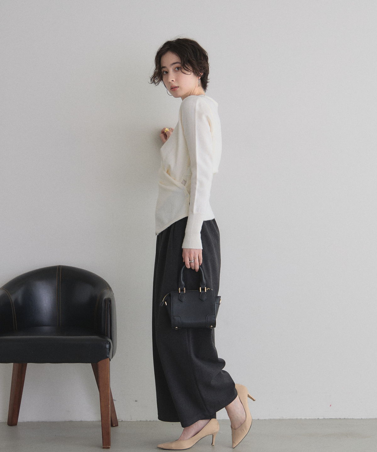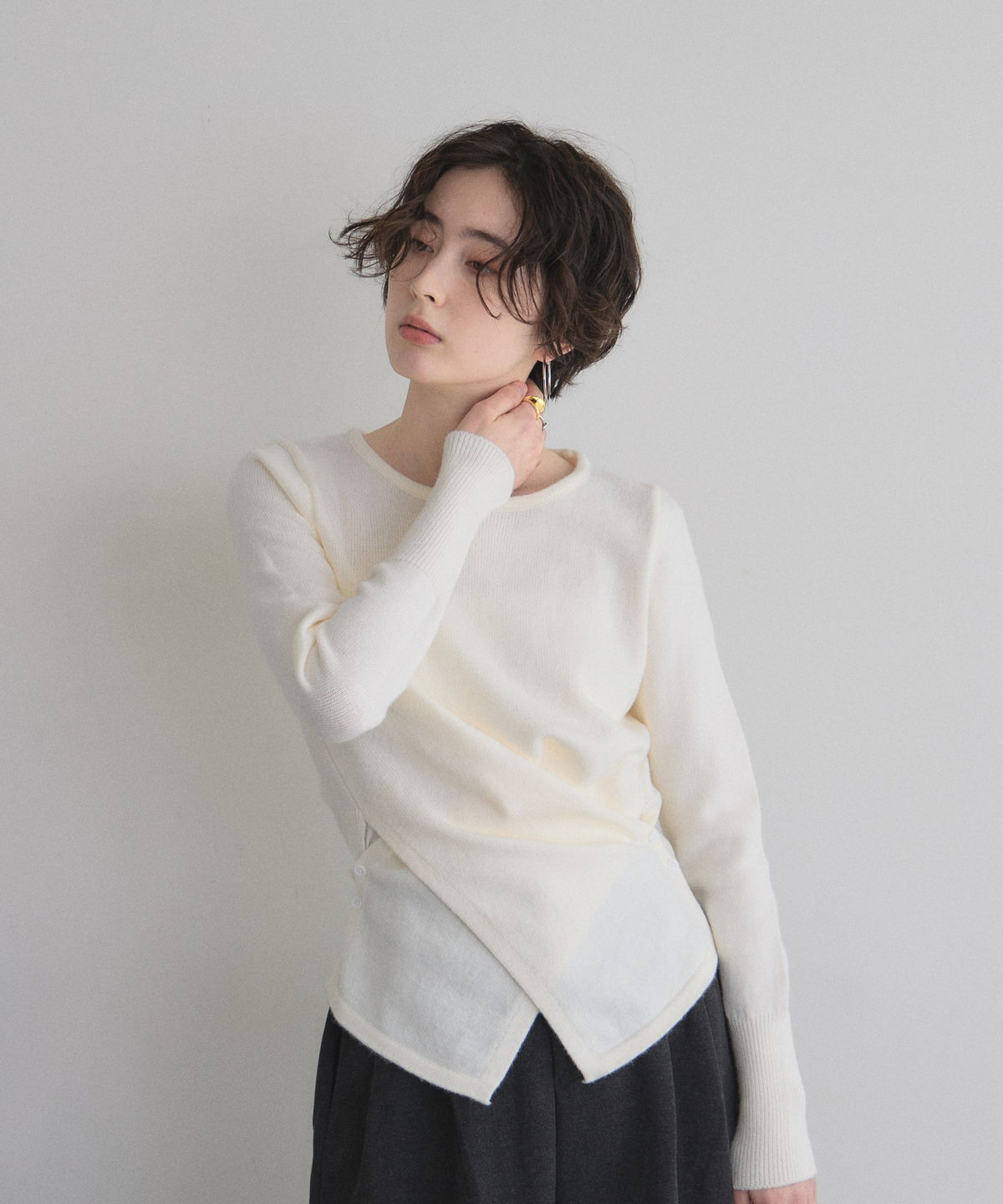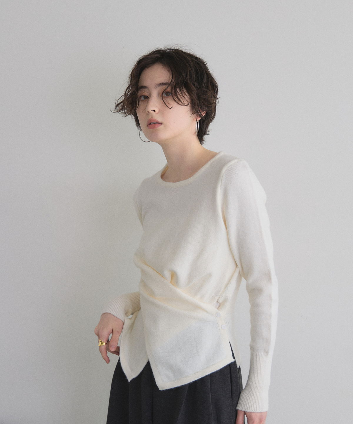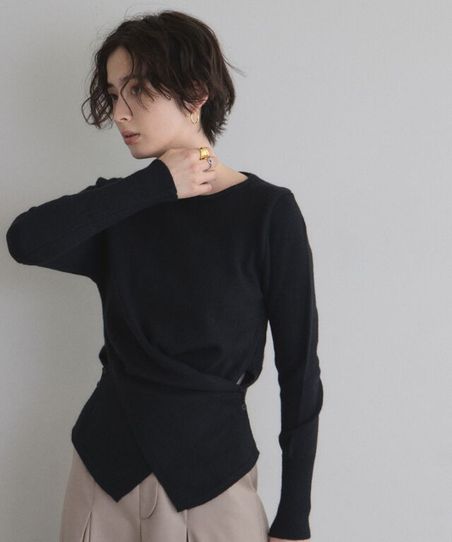立体的なクロスドレープが生み出す、上品なメリハリシルエット。 身体のラインを美しく見せるクロスドレープデザインが印象的なニット。 計算された生地の重なりが立体感を生み、気になるウエスト周りも自然にカバーしてくれる1枚です。 伸びのあるニット素材で着心地は軽やか、程よい厚みでロングシーズン活躍。 デニムでカジュアルに、スラックスやスカートで上品にと幅広くコーディネート可能。 女性らしいシルエットを楽しみたい日にぴったりのアイテムです。 |