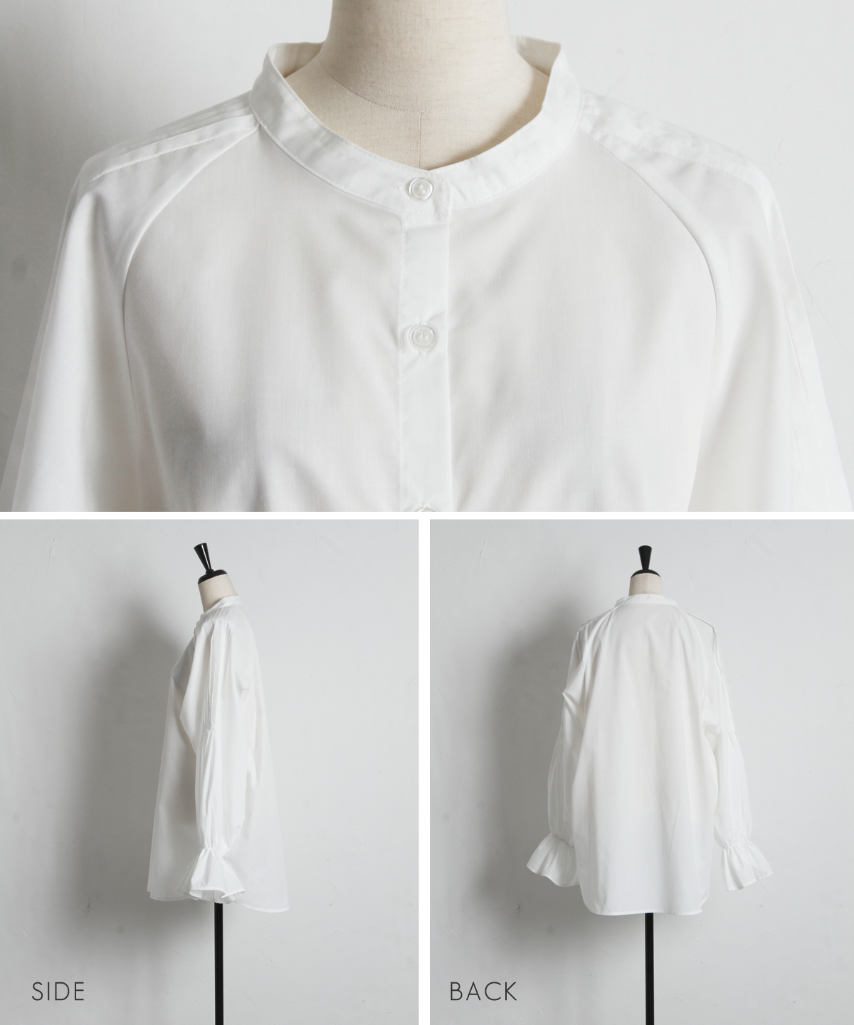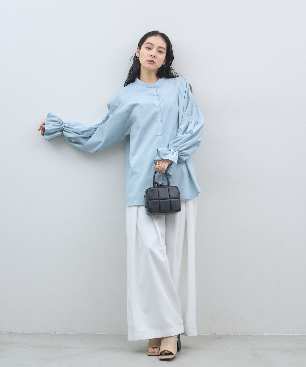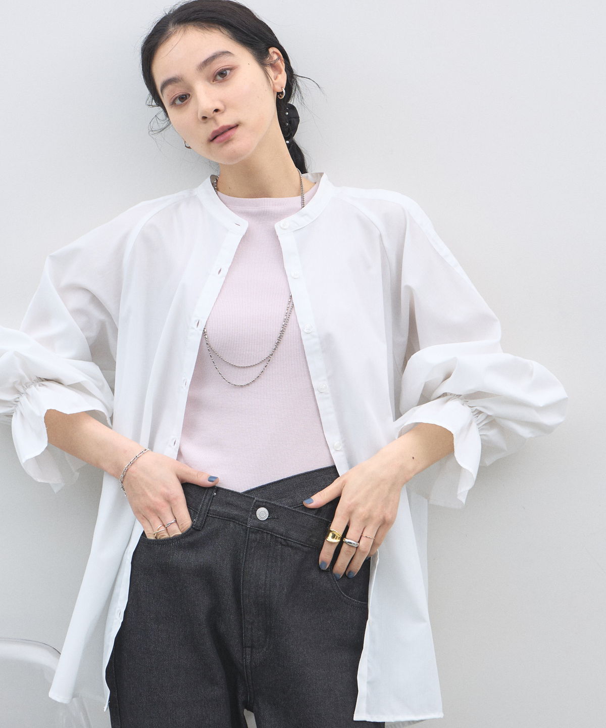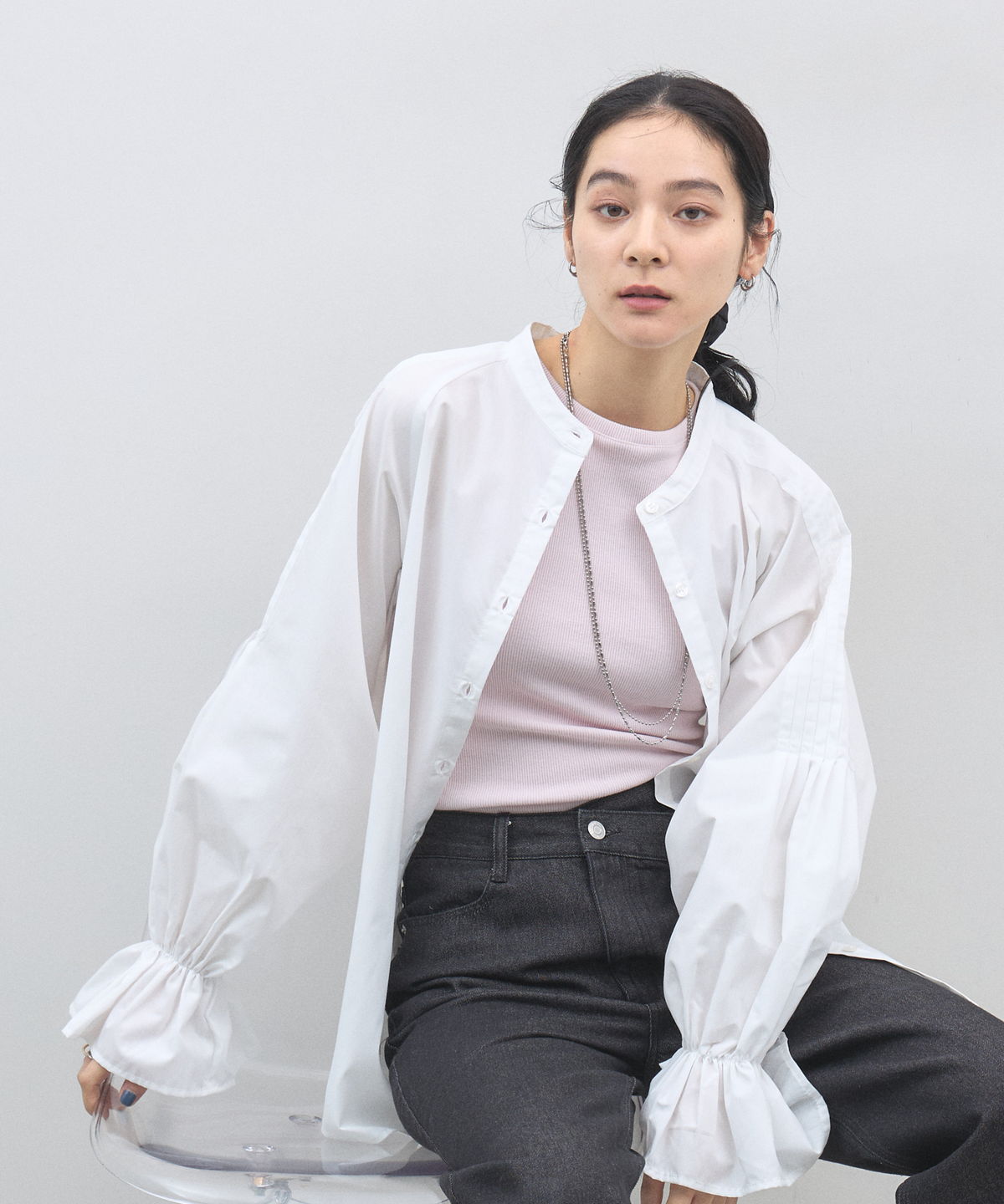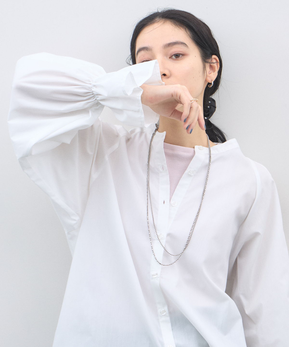 | 商品説明 | : | 一枚で華やぐ、ふんわり袖の大人フェミニンなバンドカラーブラウス。 首元をすっきり見せるバンドカラーと、手元を華やかに演出するキャンディースリーブがポイント。 ゆったりとしたシルエットで体型をカバーしつつ、オンオフ問わず着回せるクリーンなデザインが魅力の一着です。 |