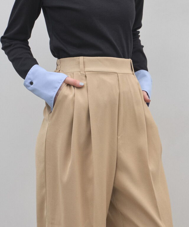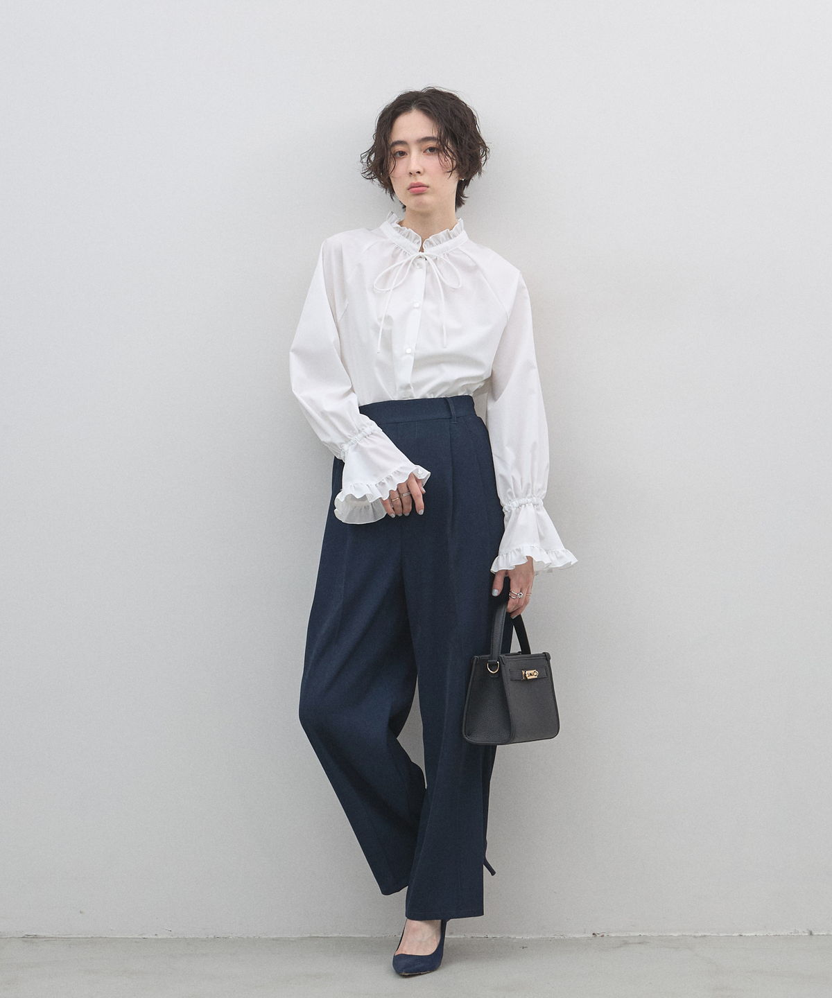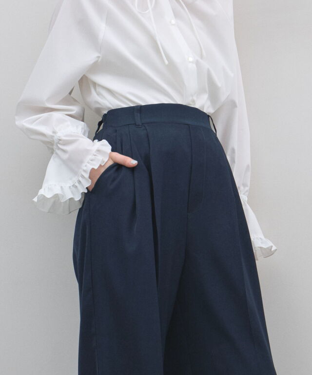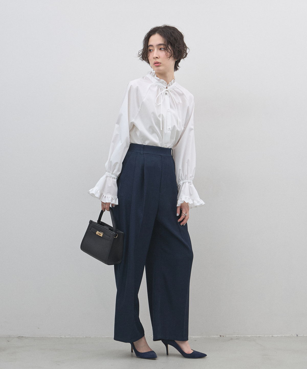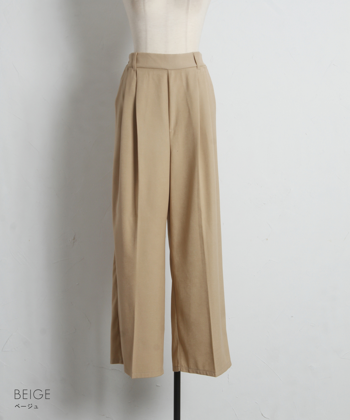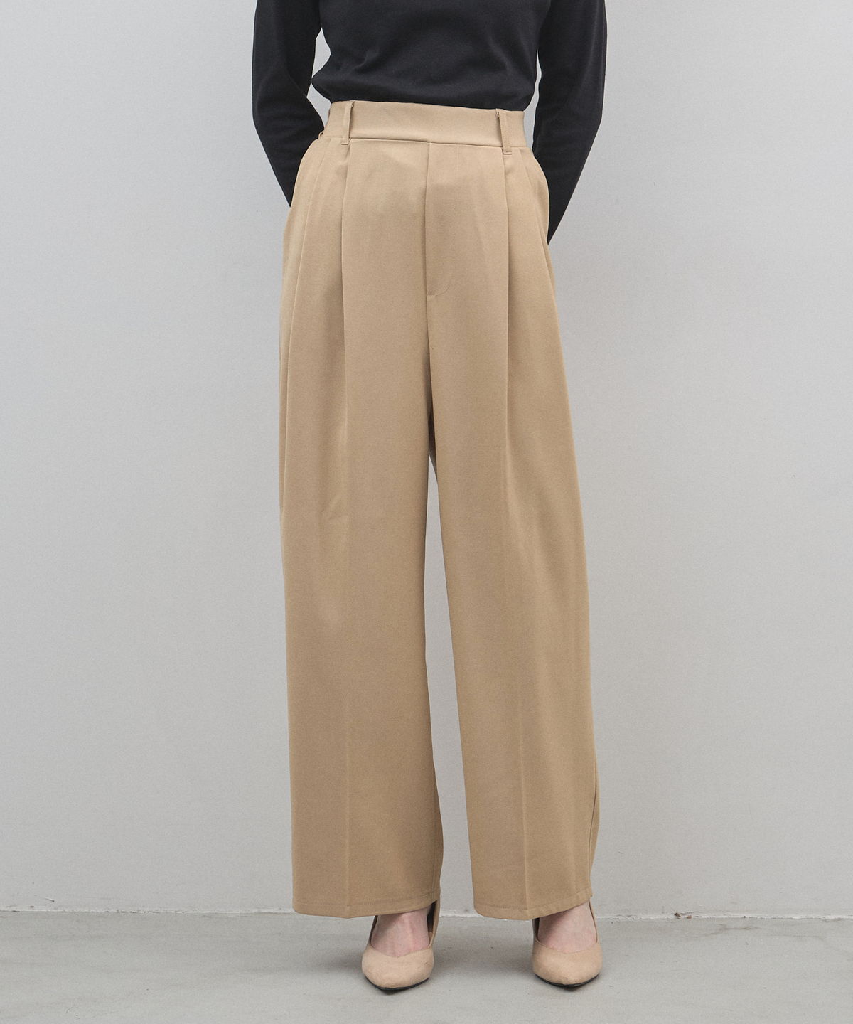 | 商品説明 | : | 端正なシルエットで、日常を格上げするタックワイドパンツ。 ウエストまわりをすっきりと見せるハイウエスト設計に、フロントタックを施した上品なワイドパンツ。 縦のラインを強調するセンタープレスが、脚をまっすぐ美しく演出します。 程よく落ち感のある素材で、きちんと感がありながらも穿き心地は軽やか。 ブラウスをインすれば通勤やオケージョンに、ニットやカットソー合わせで大人のきれいめカジュアルにも活躍する、着回し力の高い一本です。 |