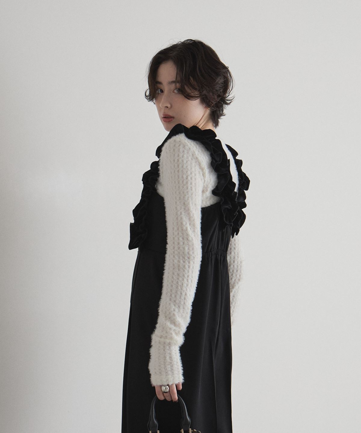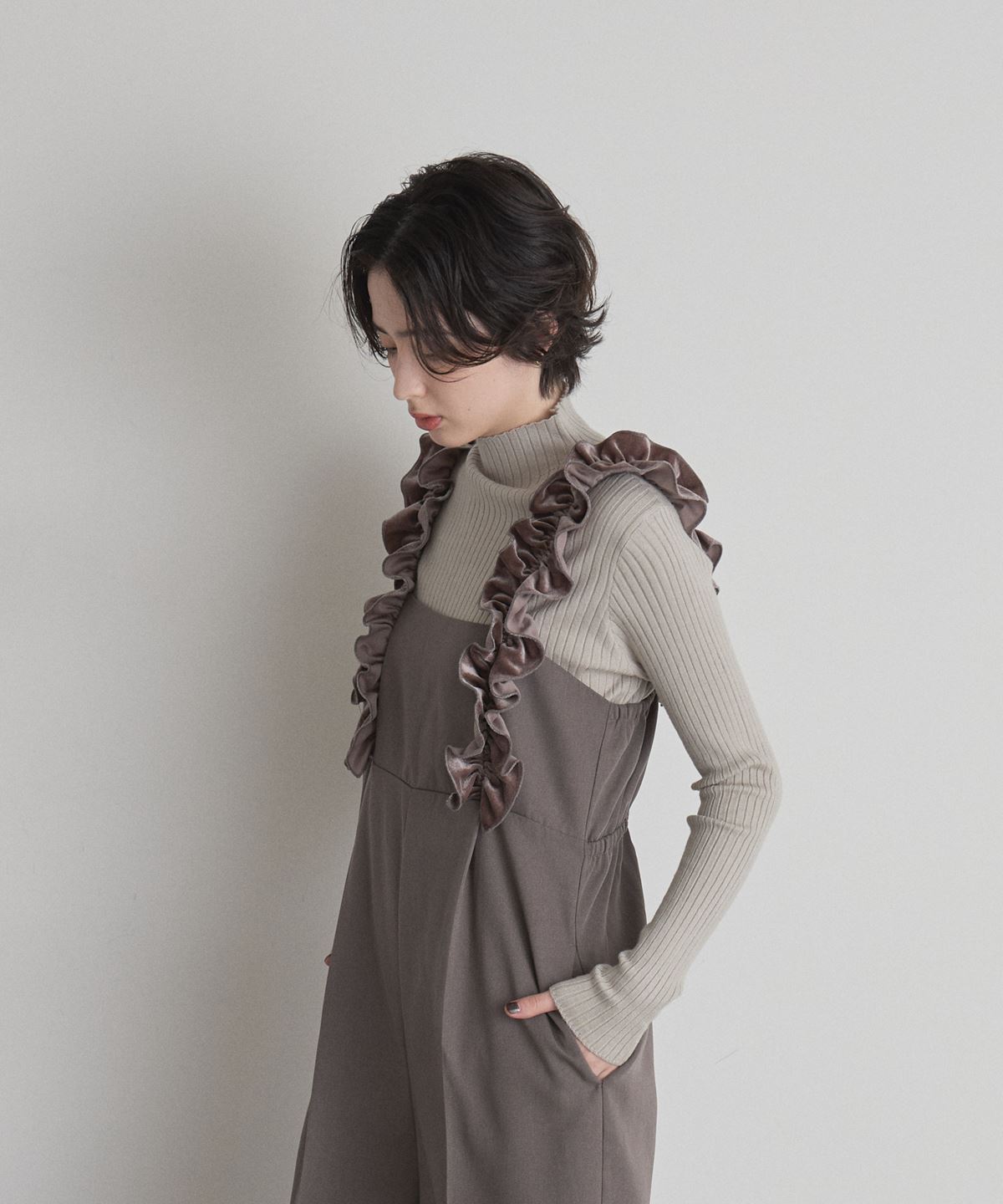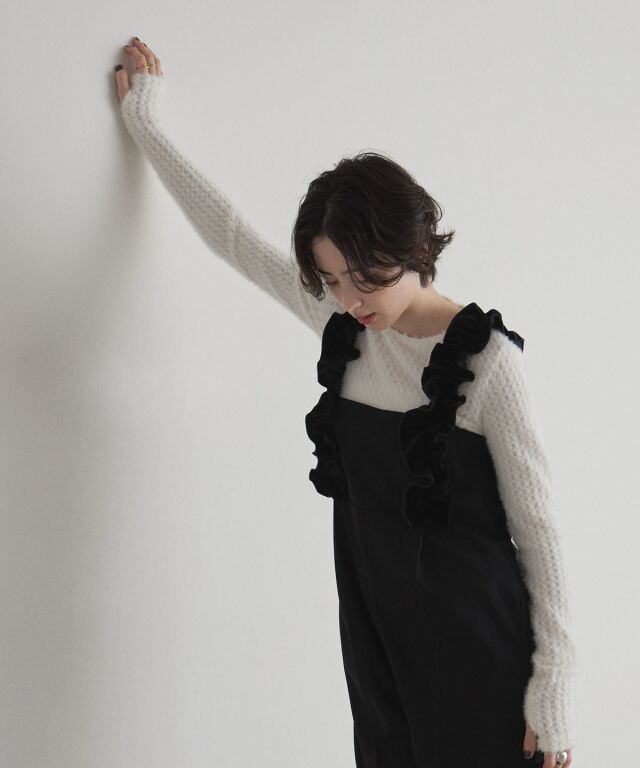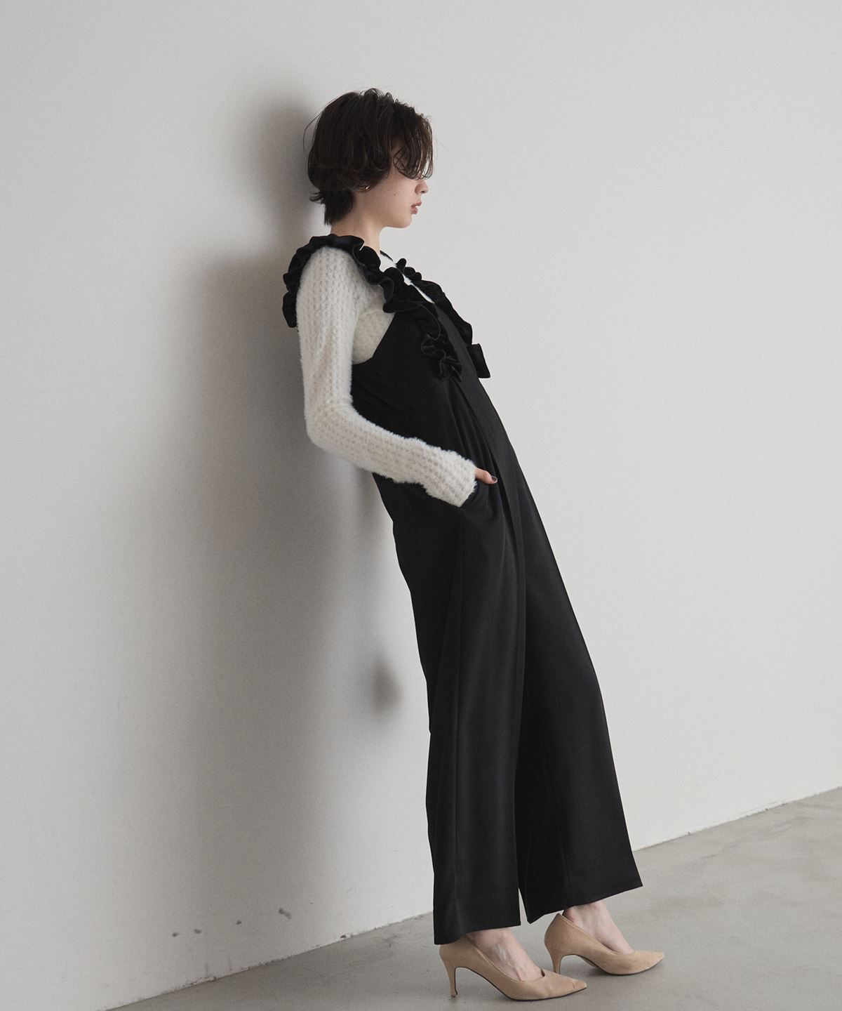 | 商品説明 | : | 甘さと上品さをひとさじ。日常を華やぐフリルサロペット。 肩まわりにあしらった立体的なフリルが、着るだけで気分を上げてくれるサロペット。 華やかなディテールながら、落ち着いたトーンとすとんと落ちるワイドストレートシルエットで、 大人が取り入れやすいバランスに仕上げています。 胸下の切り替えがスタイルアップを演出し、インナー次第で季節を問わず着回せるのも魅力。 ニットやブラウスを合わせるだけで、メリハリのあるフェミニンスタイルが完成する一着です。 |