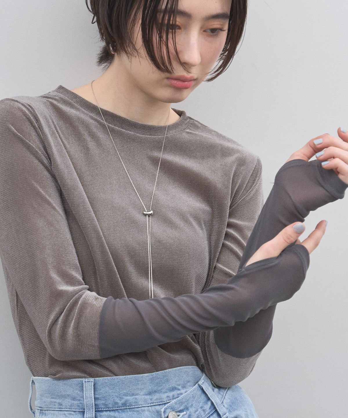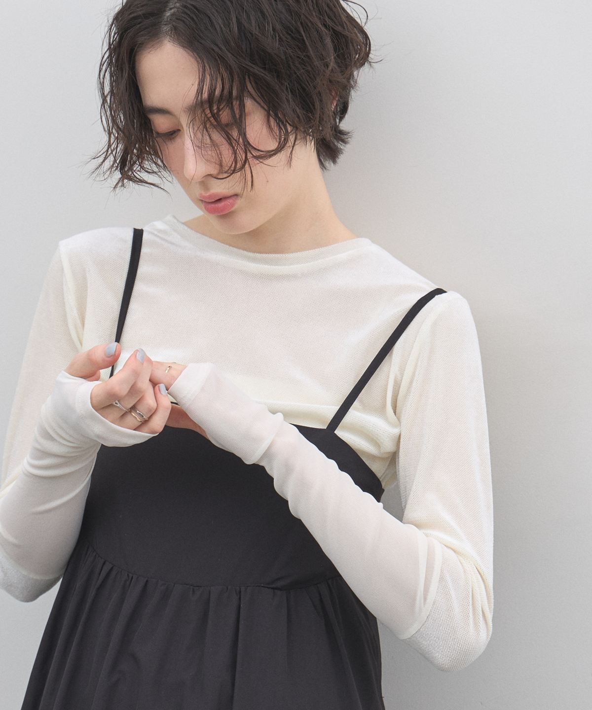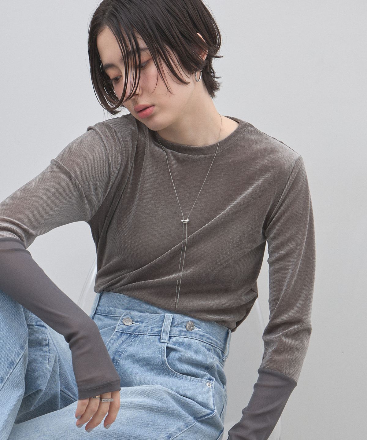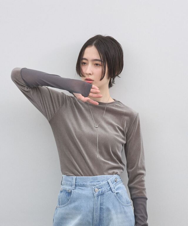 | 商品説明 | : | さりげない透け感で、レイヤードを楽しむ大人トップス。 繊細な透け感が魅力のシアートップス。 程よくフィットするシルエットで、インナー使いでも一枚着でも女性らしい抜け感を演出します。 袖口に向かって切り替えた異素材デザインが、シンプルながらも表情をプラス。 柔らかく伸びのある素材で、長時間の着用もストレスフリーです。 デニムと合わせてカジュアルに、ジャケットやワンピースのインナーとしても活躍。 スタイリングの幅を広げてくれる、着回し力の高い一枚です。 |