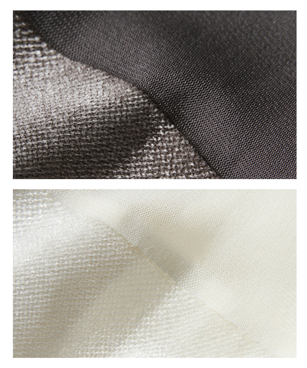 本体/ポリエステル92% ポリウレタン8% 別地/ナイロン100% (中国製・伸縮性:あり・透け感:あり・裏地:なし) |