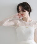 | 商品説明 | : | レイヤードスタイルを華やかに彩る、繊細な透け感の総レーストップス。 ほんのり透ける柔らかなレース素材が、女性らしい抜け感を演出する一枚。 程よく体にフィットするコンパクトなシルエットで、メインのトップスとしてはもちろん、 スウェットやワンピースのインナーとしても大活躍します。 |