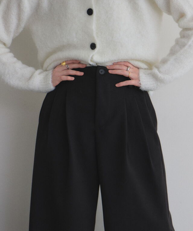 | 商品説明 | ≪ Attention:販売日、在庫状況はWEBと店舗と異なります。予めご了承くださいませ。≫ 上質なツータックが描く、リラックス感と端正さの両立シルエット。 深めに入れたツータックが立体的なワイドシルエットを生み、脚のラインを拾わずにすとんと落ちる美しいストレート感が魅力のパンツ。 気になる腰まわりをすっきり見せつつ、程よいゆとりでノンストレスな穿き心地です。 シーンを選ばない上品さがあり、シャツをインしてきれいめに、スウェットやニットで抜け感をプラスしても◎。 オン・オフどちらのスタイルにも馴染む、ワードローブに1本あると頼れるアイテムです。 |