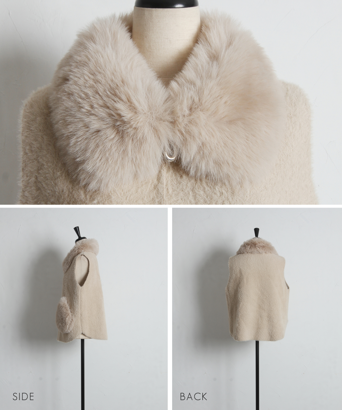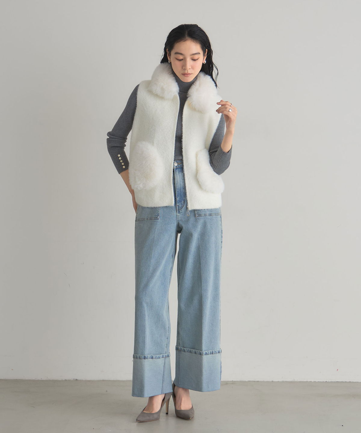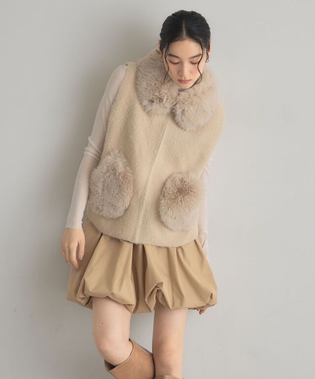 | 商品説明 | ≪ Attention:販売日、在庫状況はWEBと店舗と異なります。予めご了承くださいませ。≫ ふわふわファーとニットの異素材ミックスで、季節感をまとうジップベスト。 フェイクファーとニットを組み合わせた、表情豊かなZIPベスト。 首元とポケットのファーがコーデに華やかさと季節感をプラスし、身頃のニット素材が軽やかな着心地を叶えます。 程よくゆとりのある袖口で、ロンTやニット、ワンピースにも重ねやすいデザイン。 ジップ仕様だから体温調節がしやすく、秋冬のレイヤードスタイルに大活躍。 デイリーからお出かけまで幅広く活躍する、1枚あると便利なアイテムです。 |