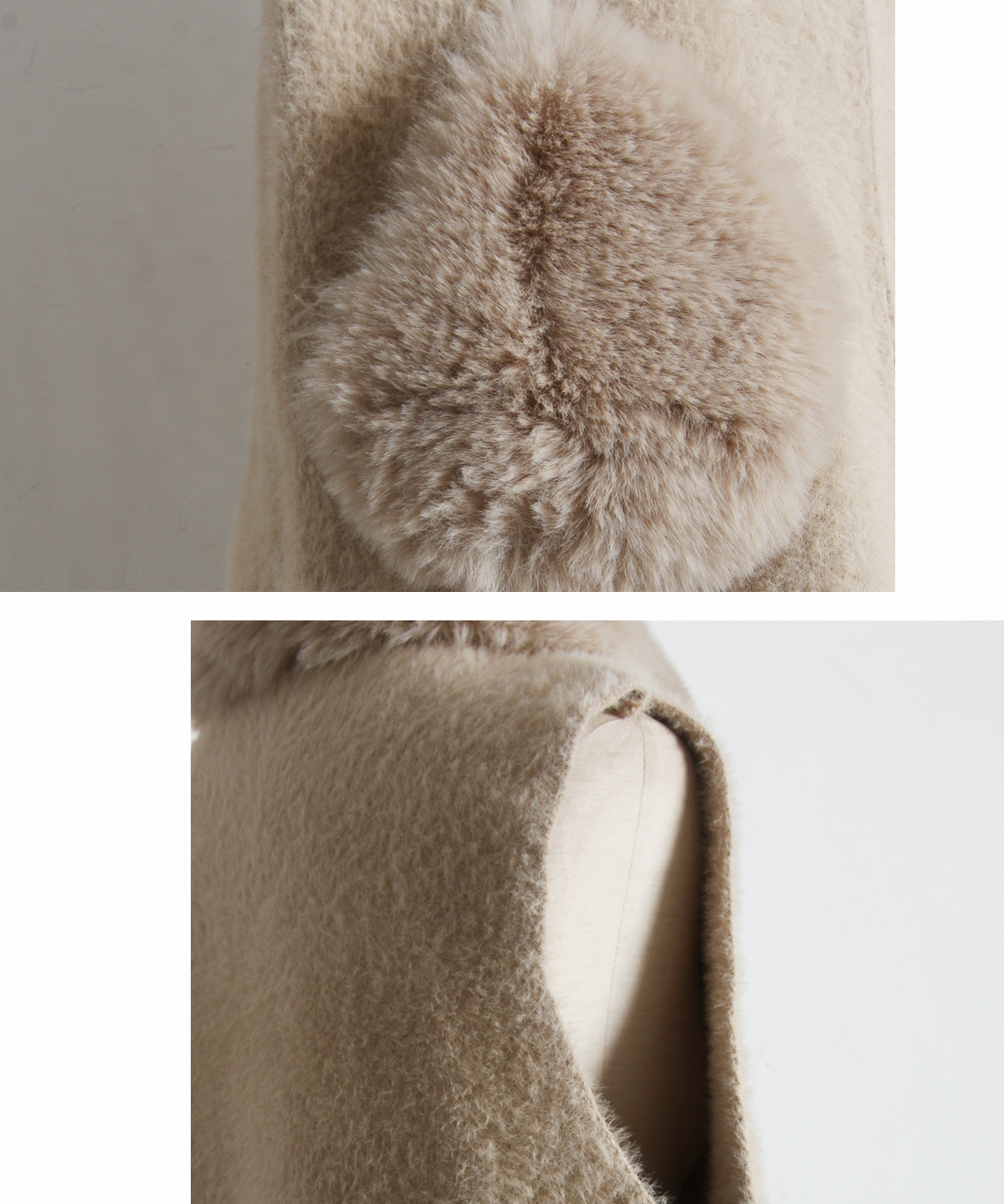 | 素材 | 表地/ナイロン60% ポリエステル20% アクリル20% ファー部分/ポリエステル100% (中国製・伸縮性あり・透け感なし・裏地なし) |