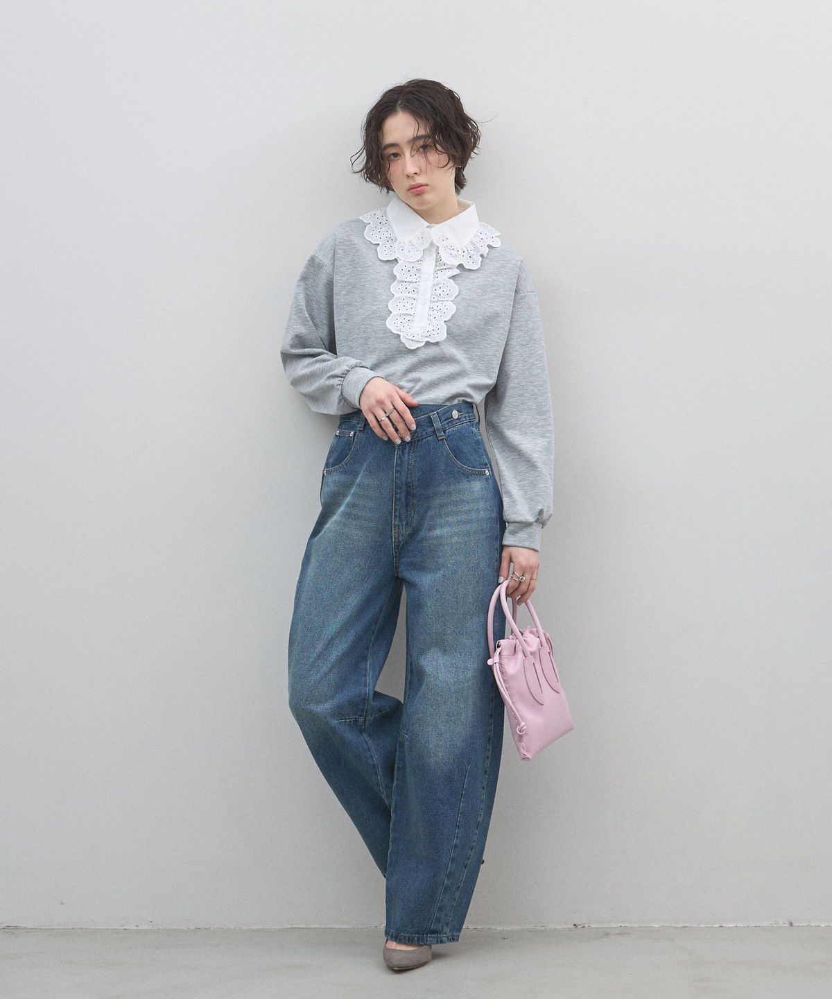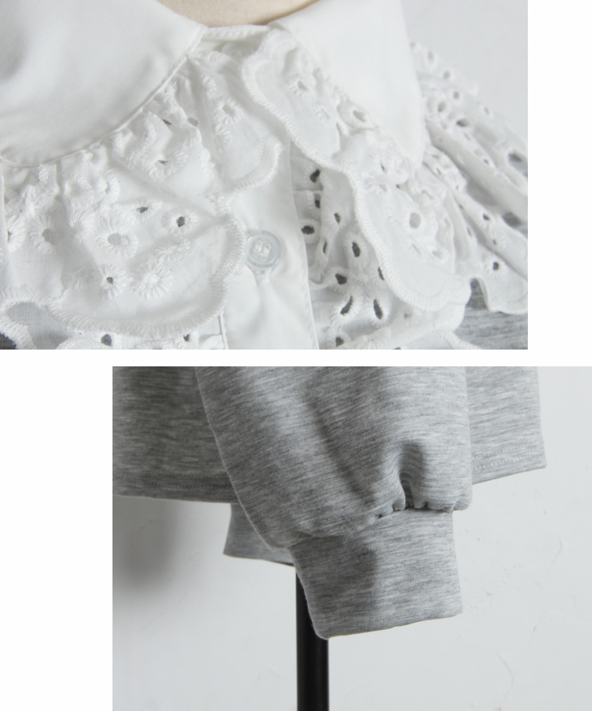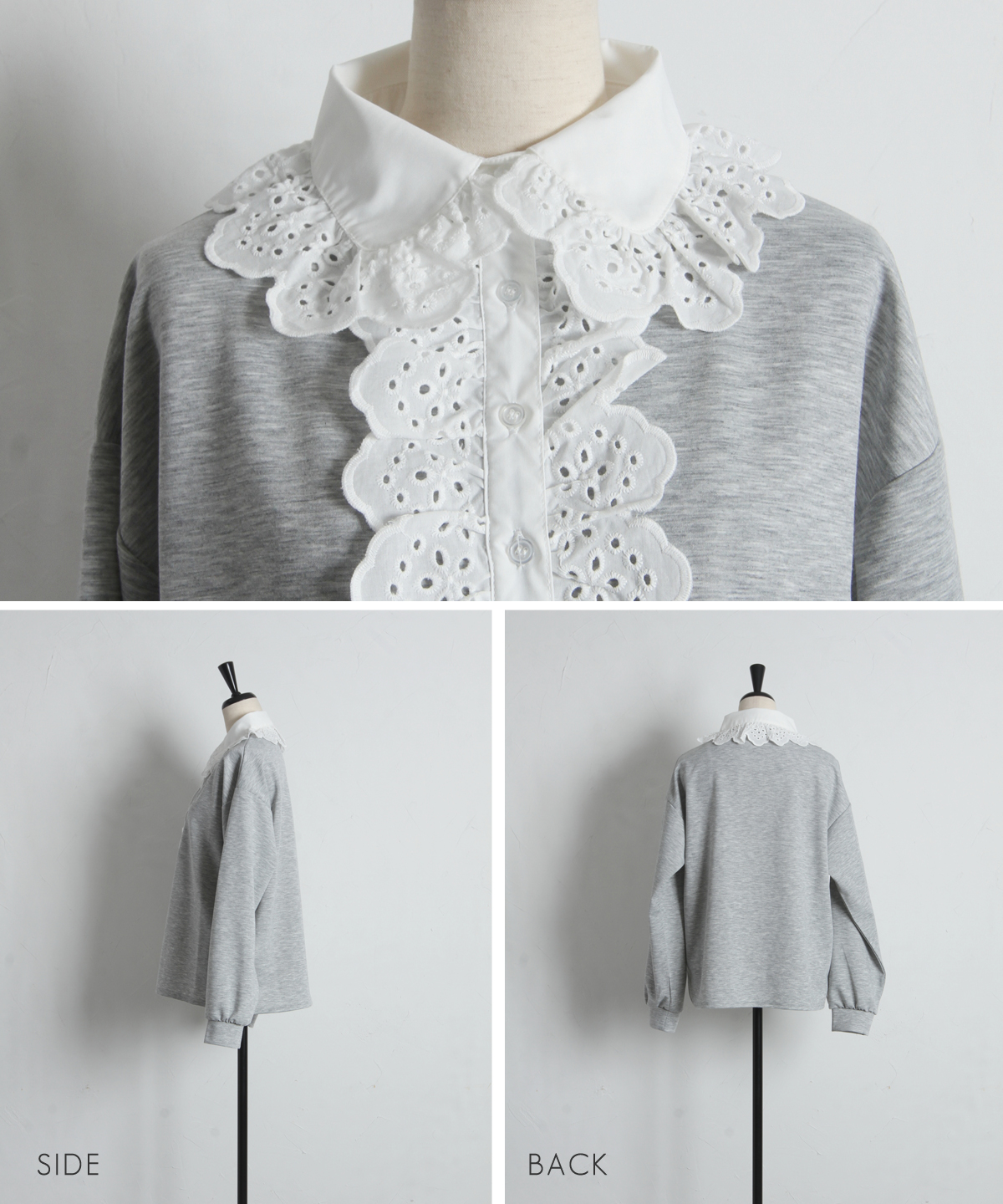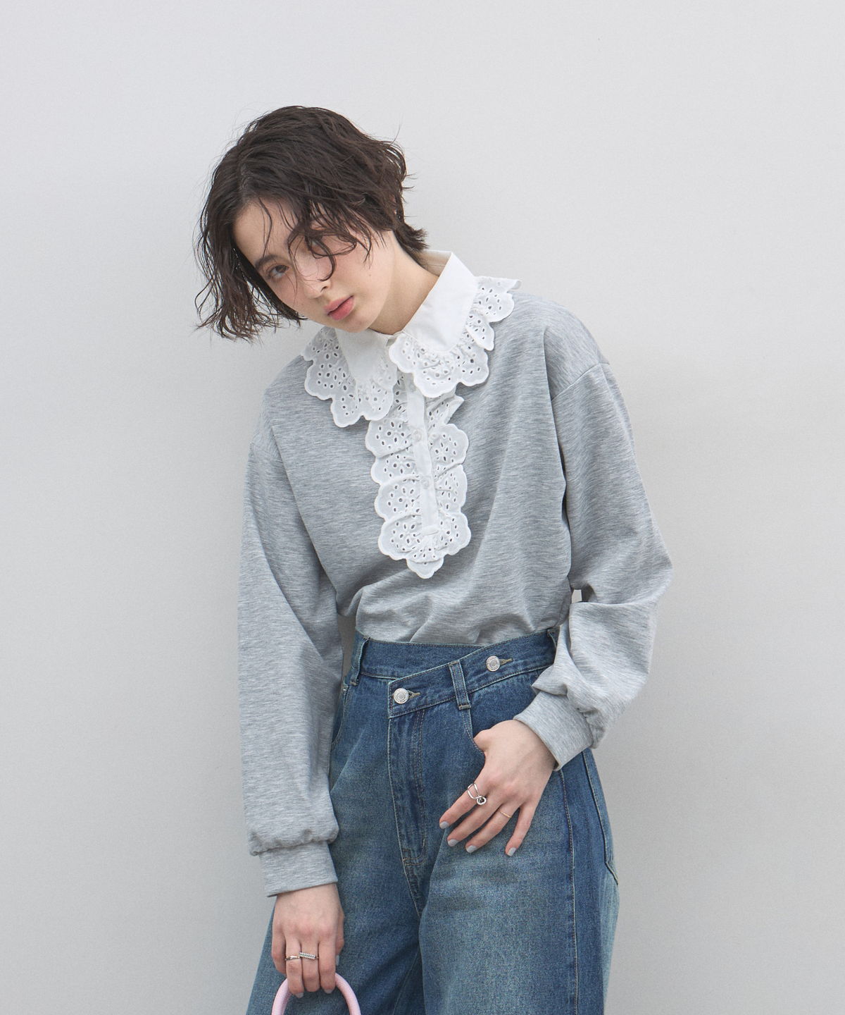 | 商品説明 | : | カジュアルを可憐にアップデート。贅沢な刺繍レースが視線を奪う、主役級プルオーバー。 繊細なアイレット刺繍の襟元が目を惹く、デザインプルオーバー。 顔周りを華やかに彩る大ぶりなフリルレースと、リラクシーなカットソー素材を組み合わせることで、 甘すぎない「大人可愛い」絶妙なバランスを実現しました。 ヴィンテージライクな襟のデザインは、一枚での着用はもちろん、 カーディガンやジャケットから襟を出したレイヤードスタイルにも最適。 身頃は柔らかな風合いで着心地も良く、デニムでカジュアルダウンしても、 スカートできれいめにまとめても様になります。いつもの装いに遊び心を添えてくれる、特別な一枚です。 |