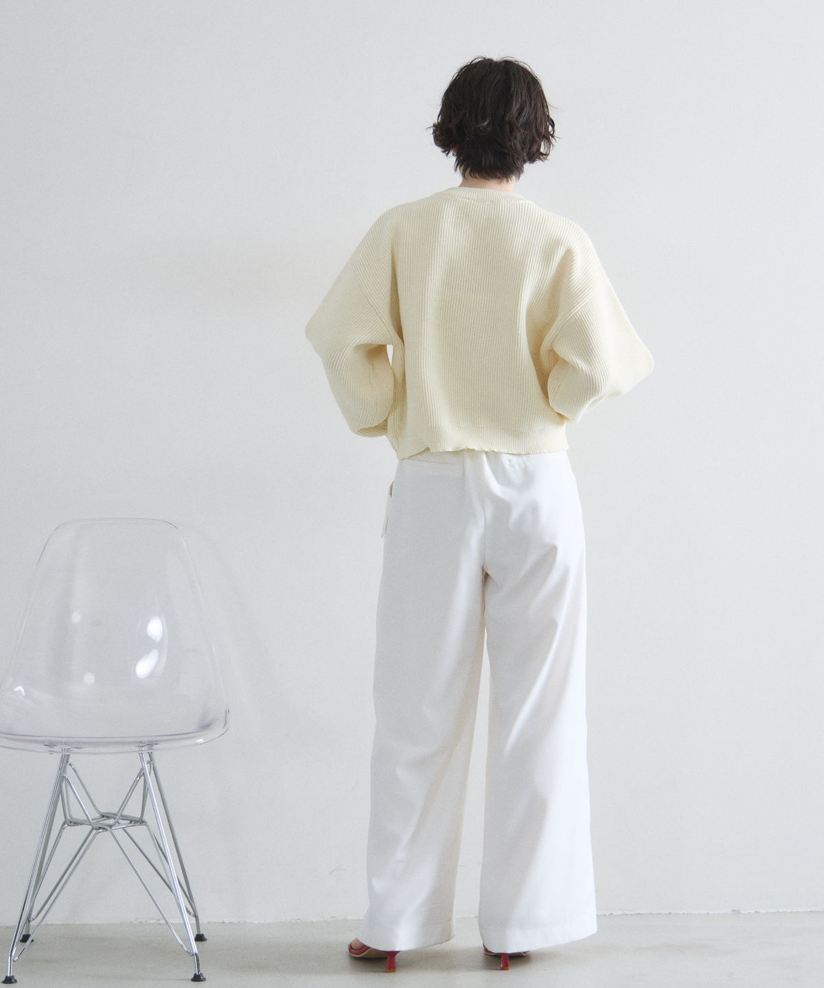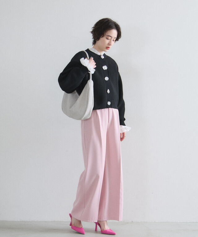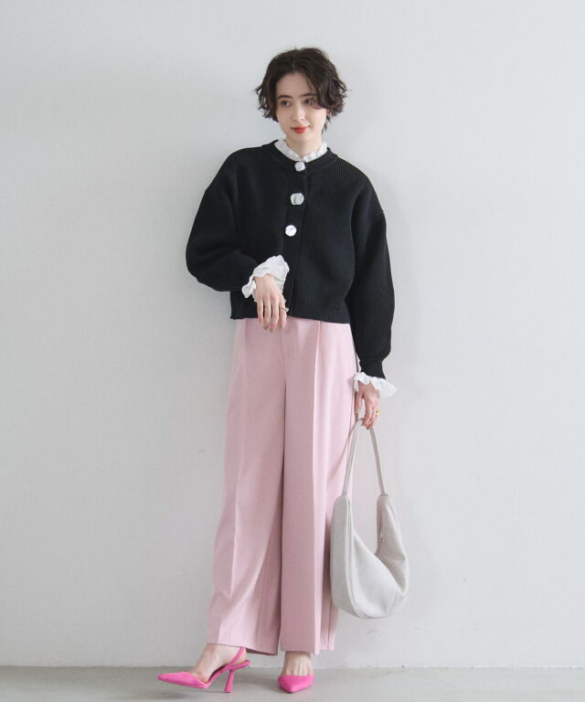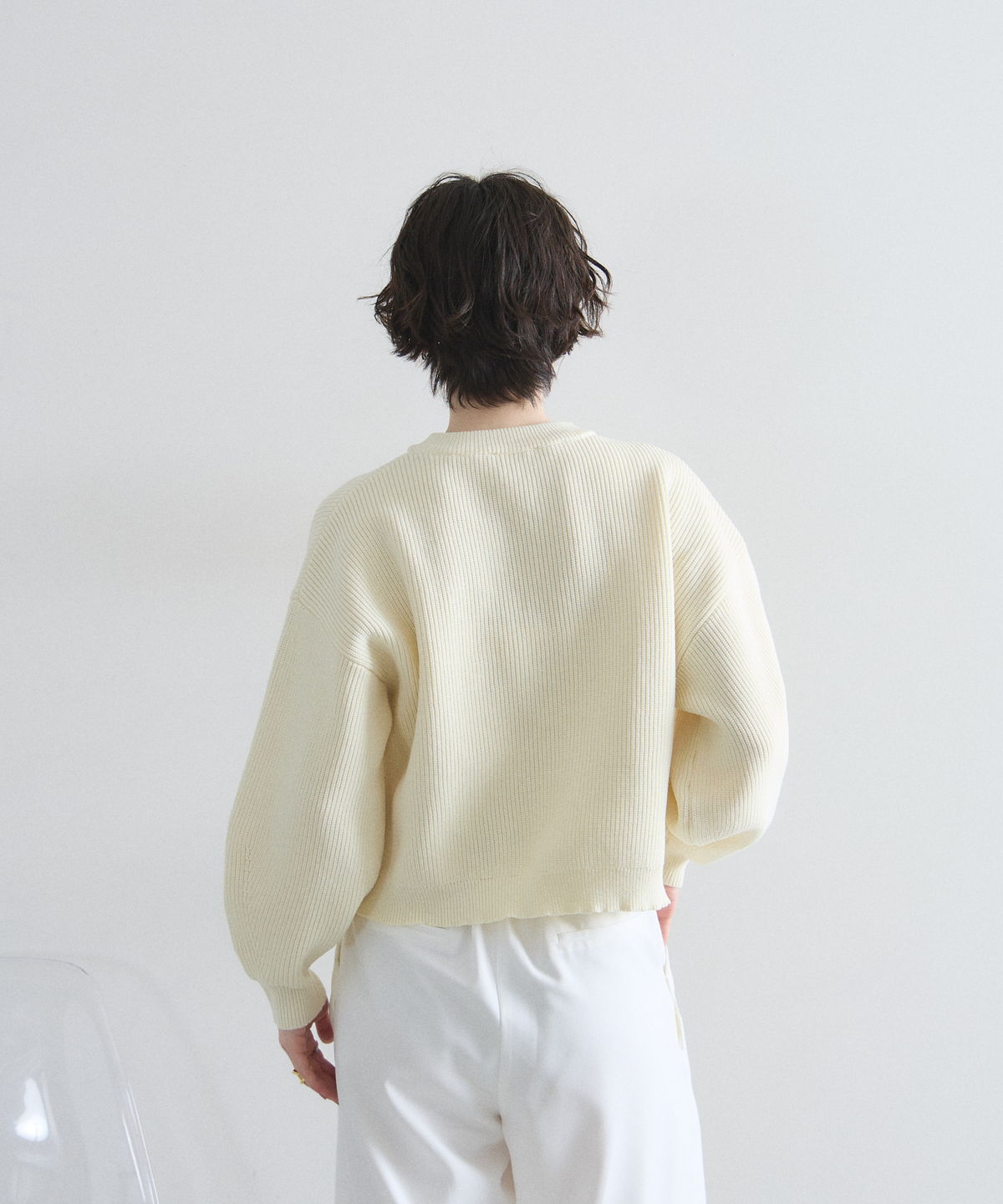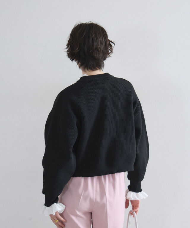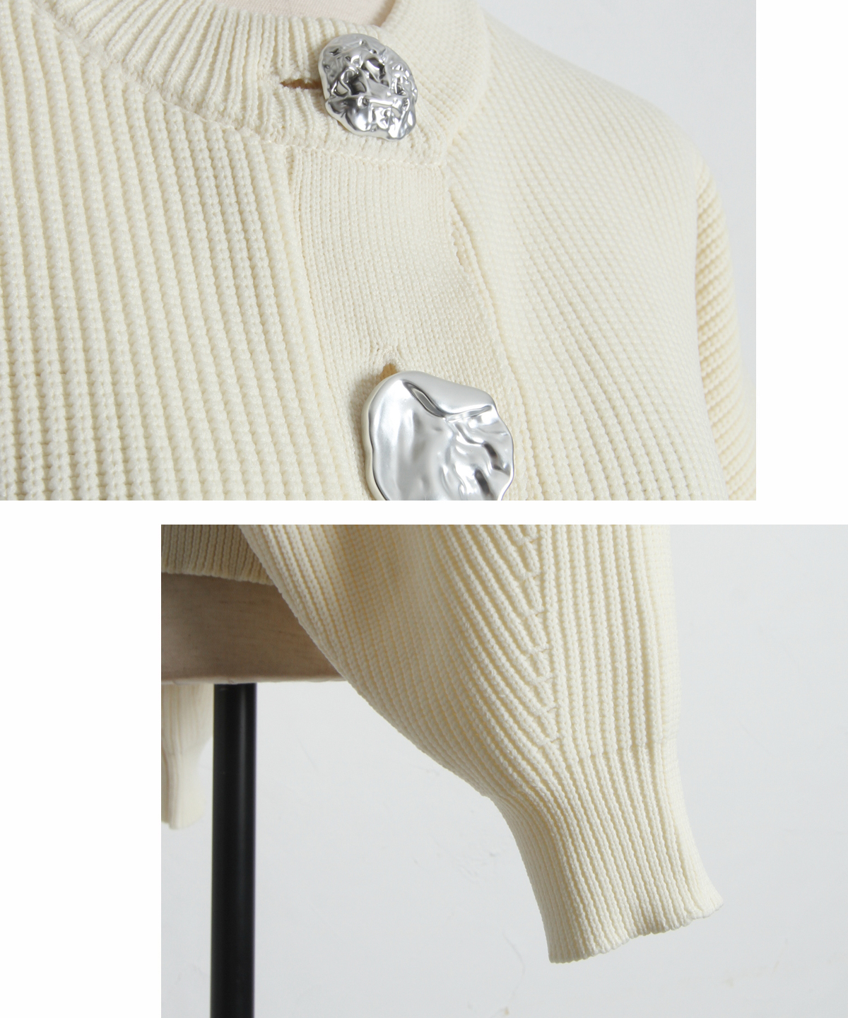 | 商品説明 | : | モードに魅せる主役級カーディガン アンティーク調の変形シルバーボタンが目を惹く、存在感抜群の一着。 ボリューム感のあるパフスリーブと、程よい厚みのリブ編みが、 女性らしい立体的なシルエットを描きます。 コンパクトな着丈はハイウエストのボトムスとも相性が良く、 羽織るだけで洗練されたモードな装いが完成します。 |