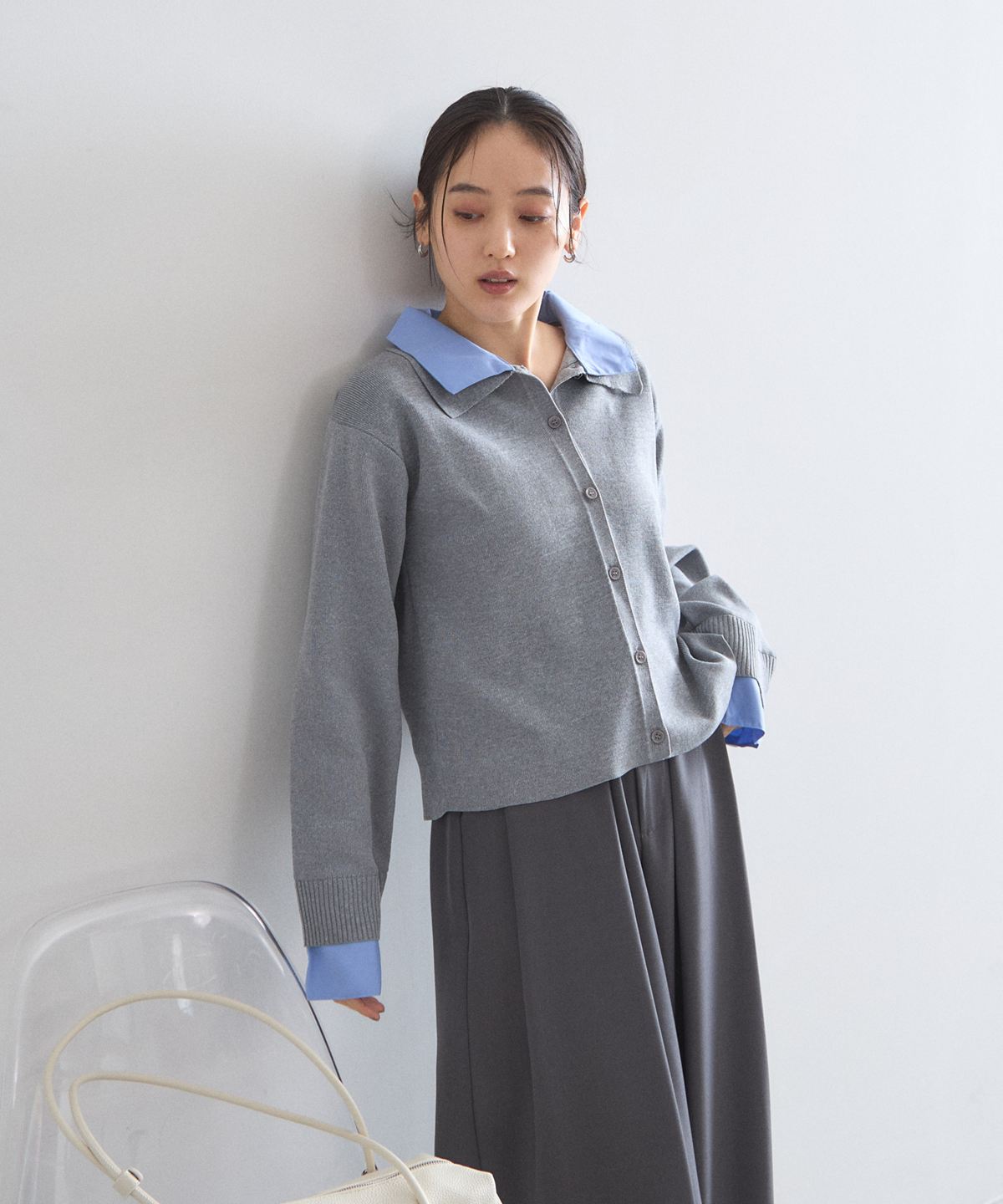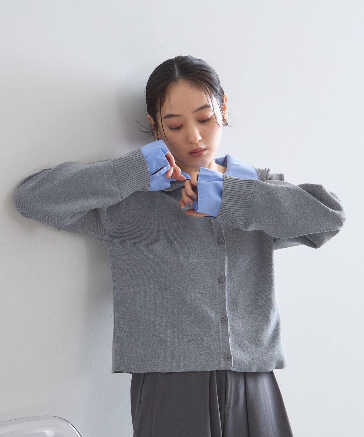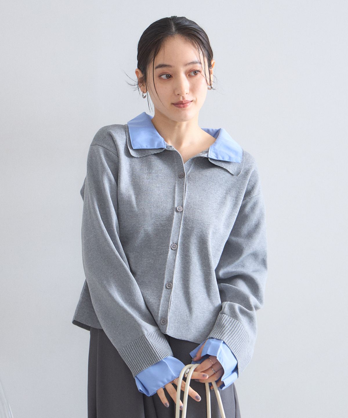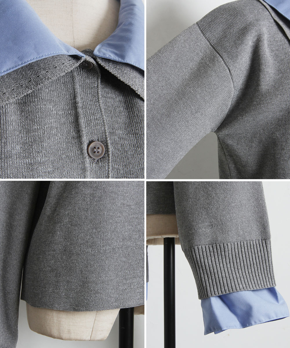| 商品説明 | : | 1枚で理想のレイヤードが完成する、大人の抜け感ニットカーディガン。 シャツを重ね着しているようなドッキングデザインで、テクニック不要でお洒落が決まる一枚。 広めの襟元がデコルテを綺麗に見せ、顔周りに清涼感をプラスします。 柔らかなニット素材とシャツのコントラストが、 オンオフ問わず洗練された印象を与えてくれる優秀アイテムです。 |