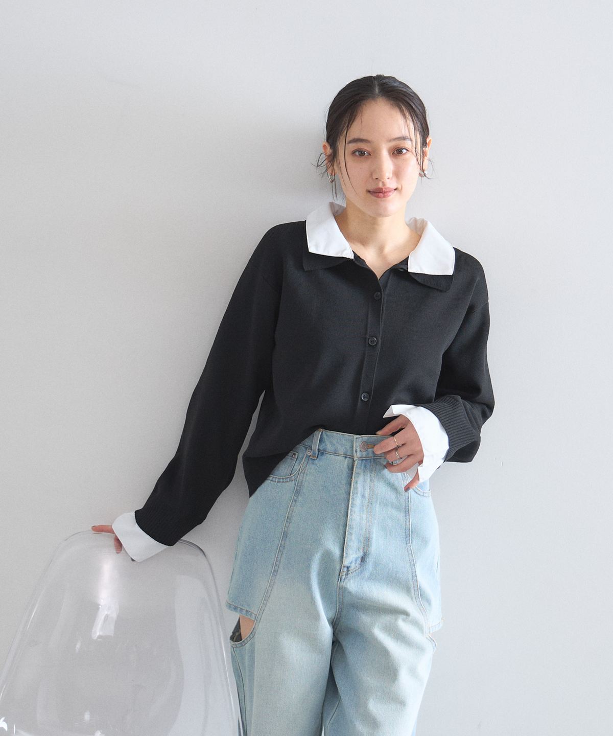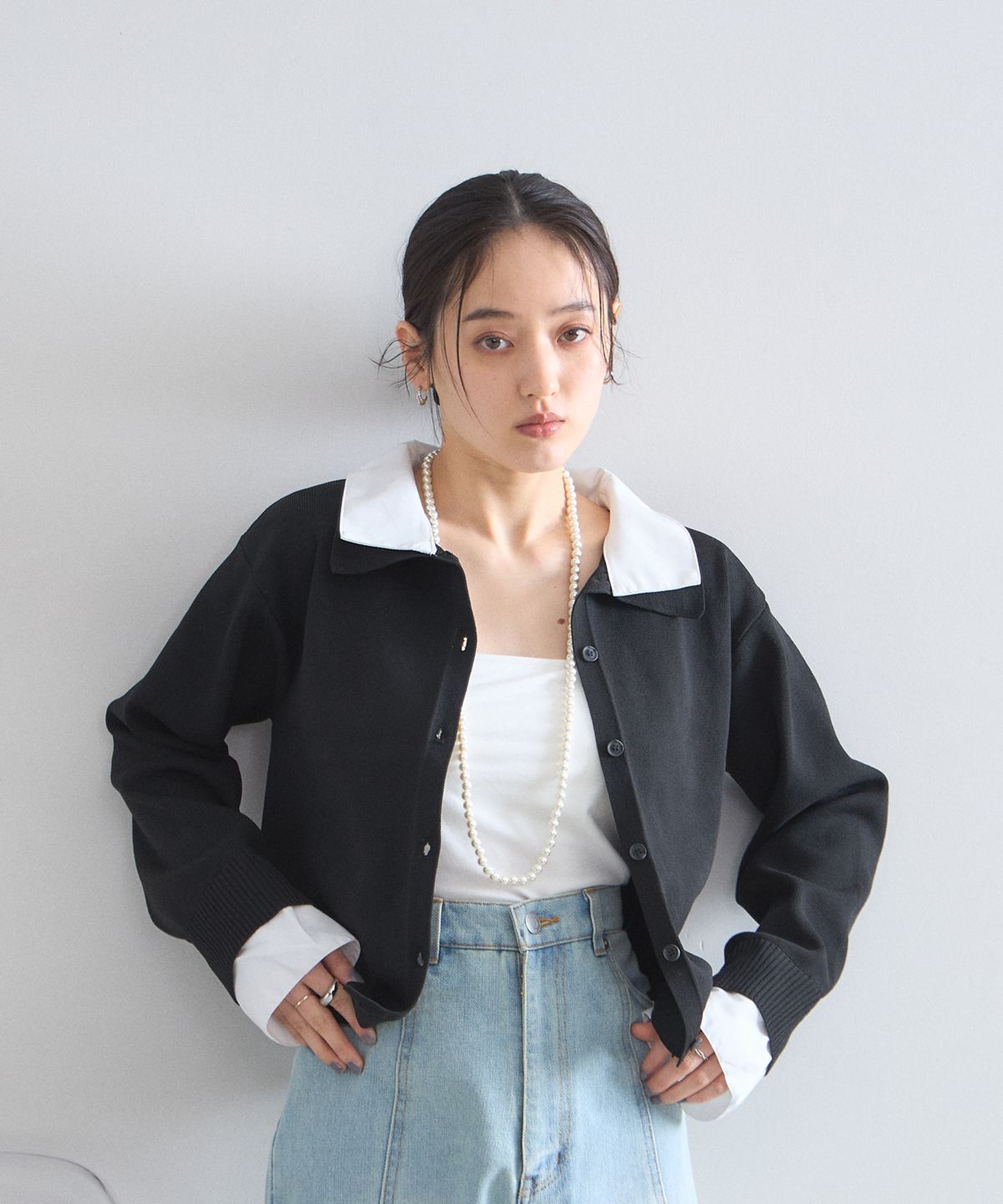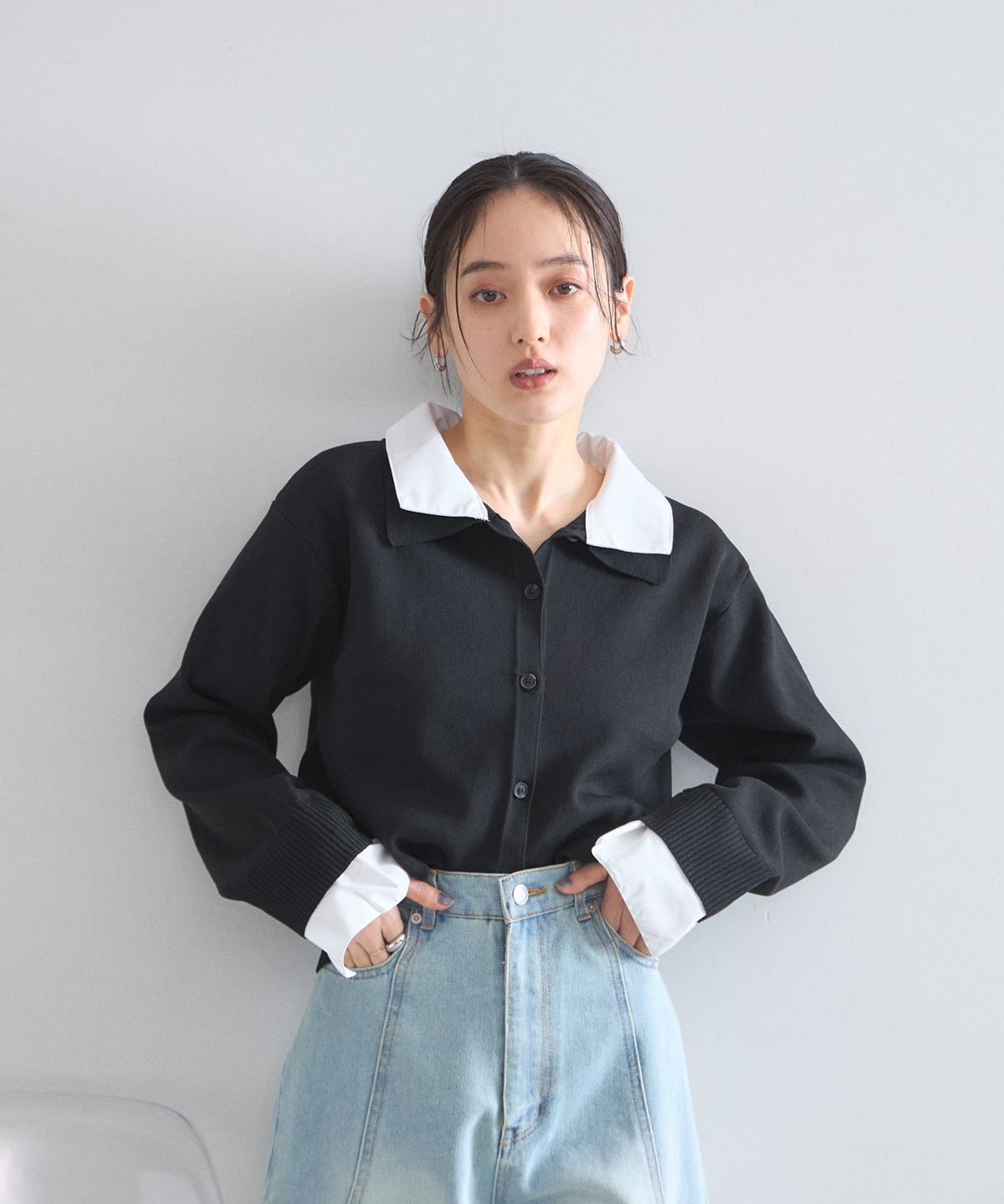 | 商品説明 | : | 1枚で理想のレイヤードが完成する、大人の抜け感ニットカーディガン。 シャツを重ね着しているようなドッキングデザインで、テクニック不要でお洒落が決まる一枚。 広めの襟元がデコルテを綺麗に見せ、顔周りに清涼感をプラスします。 柔らかなニット素材とシャツのコントラストが、 オンオフ問わず洗練された印象を与えてくれる優秀アイテムです。 |