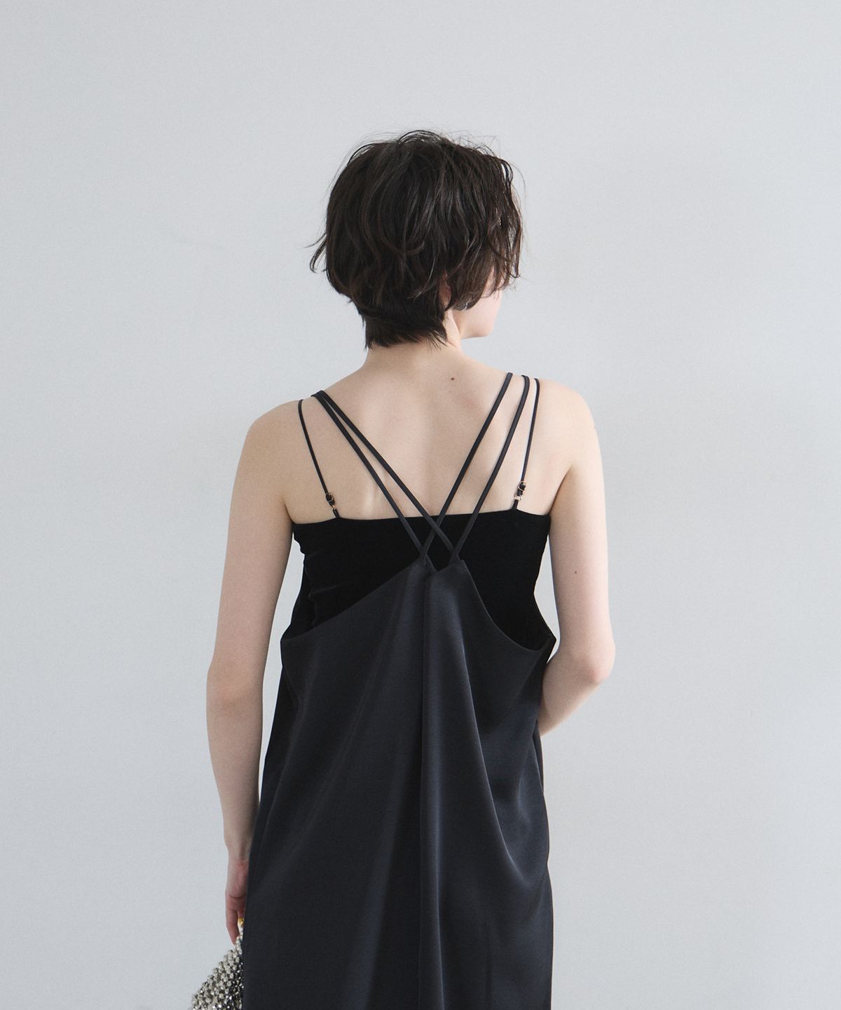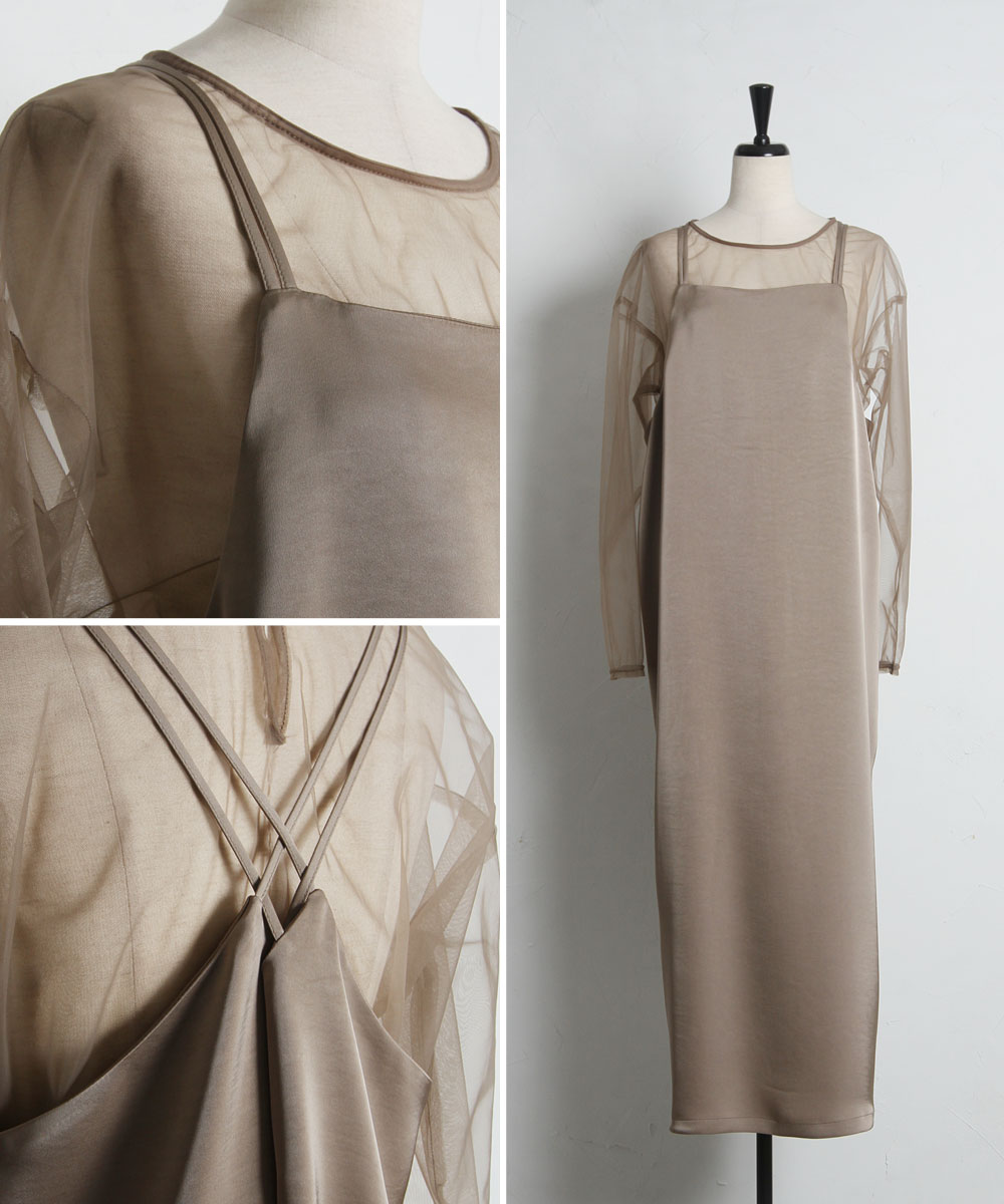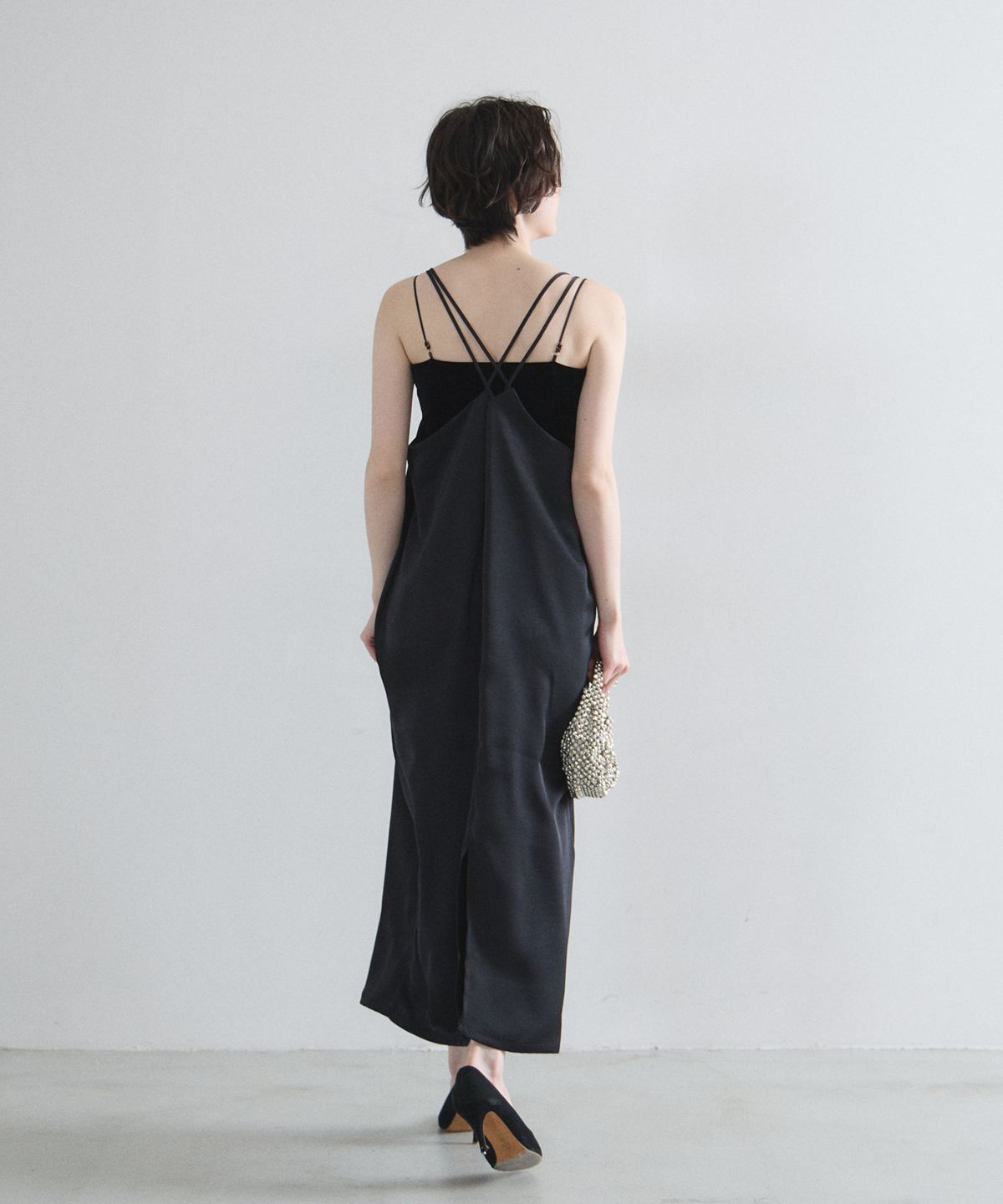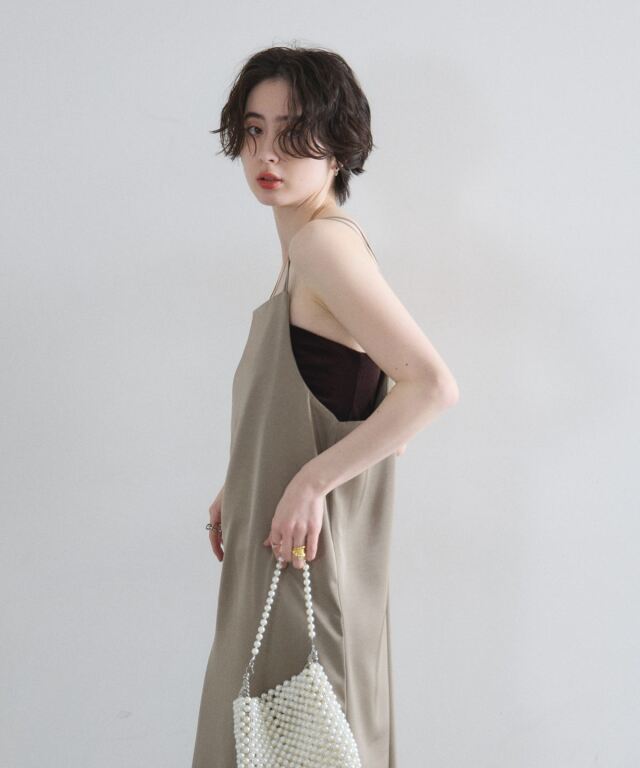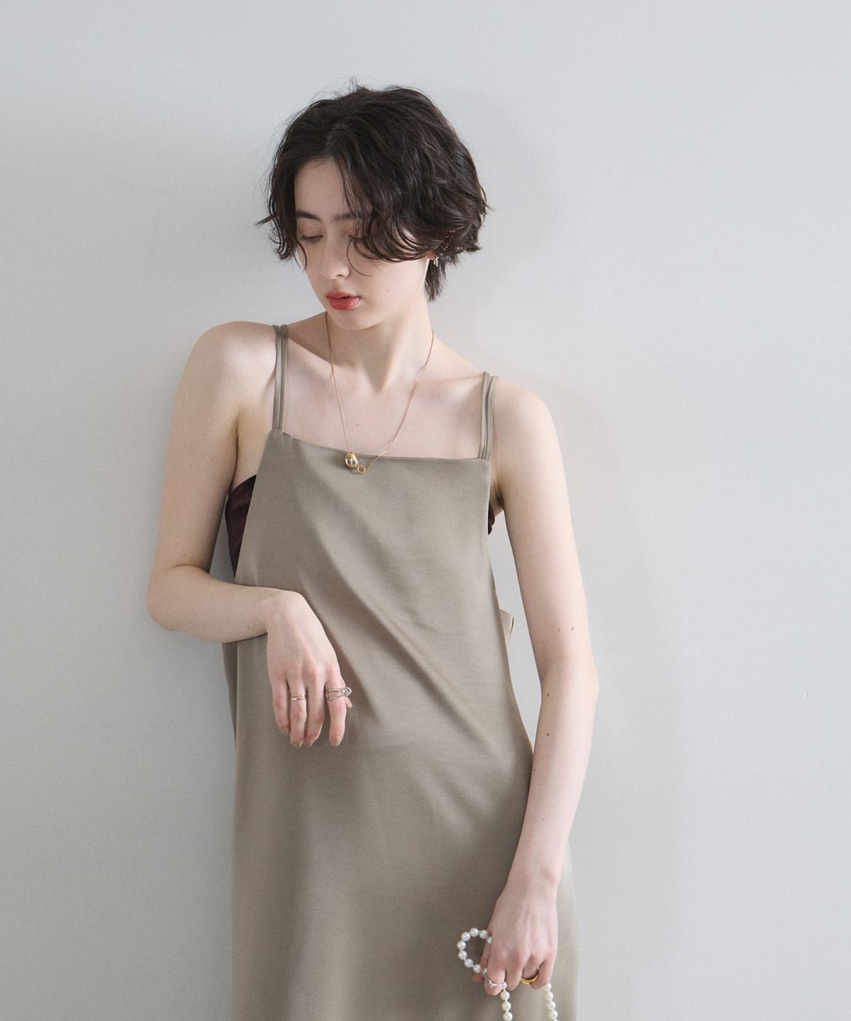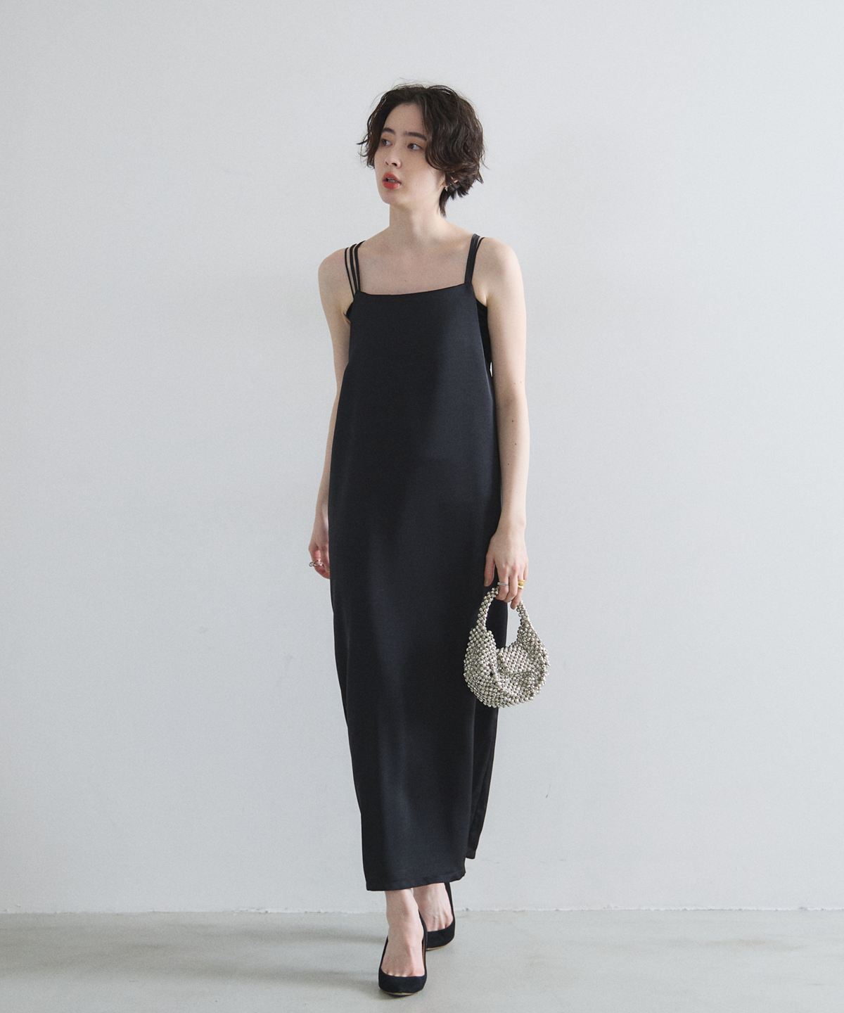 | 商品説明 | : | 繊細なチュールが描く奥行きとモードな抜け感、一着で洗練される主役級ワンピース。 シアー感のあるチュールトップスと、上品な光沢のキャミワンピースを重ねたセットアイテム。 フリル使いが目を惹くトップスは前後2WAYで着用でき、それぞれ単品使いも可能。 結婚式などのオケージョンから、デニムを合わせたデイリーな着こなしまで、日常にドラマチックな彩りを添えてくれます。 |