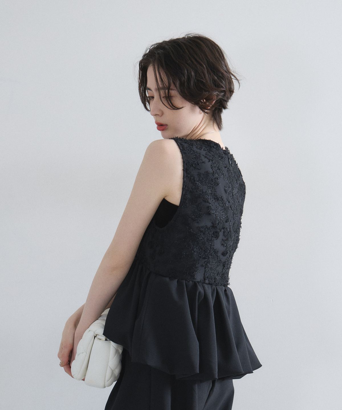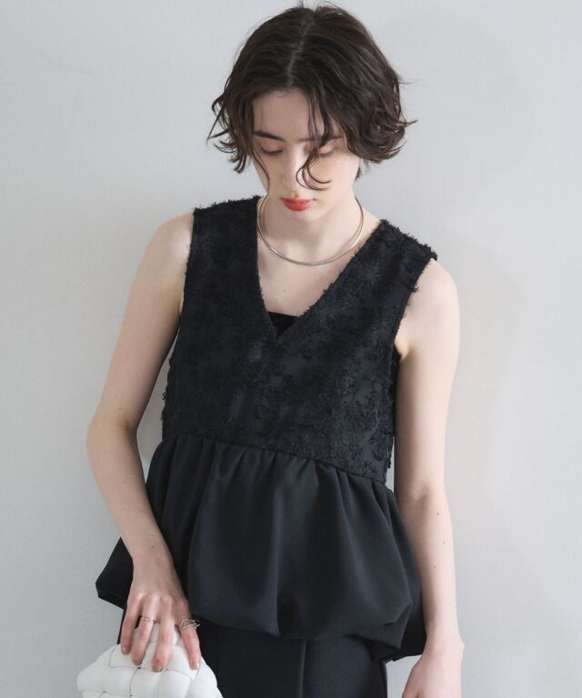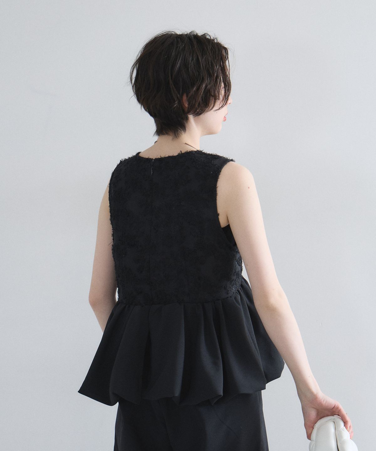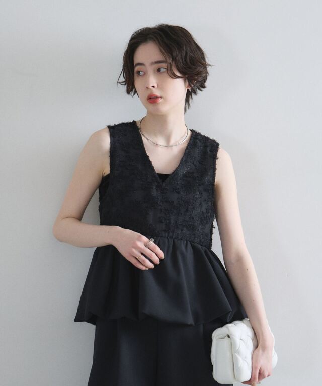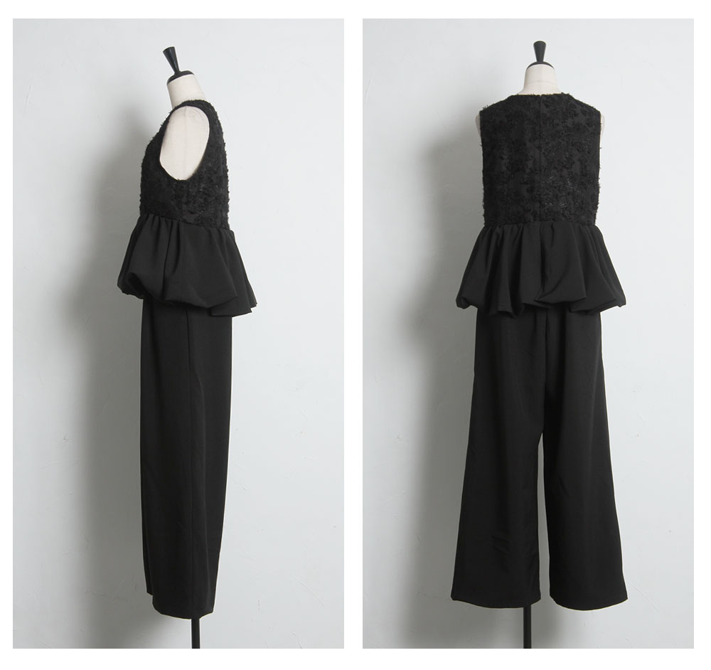 | 商品説明 | : | 異素材で魅せる、洗練のオールインワン。 表情豊かなフリンジジャガードと、構築的なペプラムシルエットが目を引く一着。 高めのウエスト切り替えがスタイルアップを叶え、纏うだけで凛とした佇まいに。 素材のコントラストが奥行きのある華やかさを演出します。 お呼ばれや特別なディナーなど、大切な日の気分を格上げしてくれる主役級アイテムです。 |