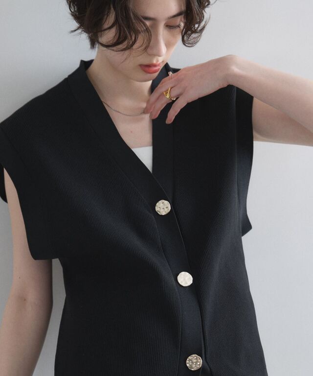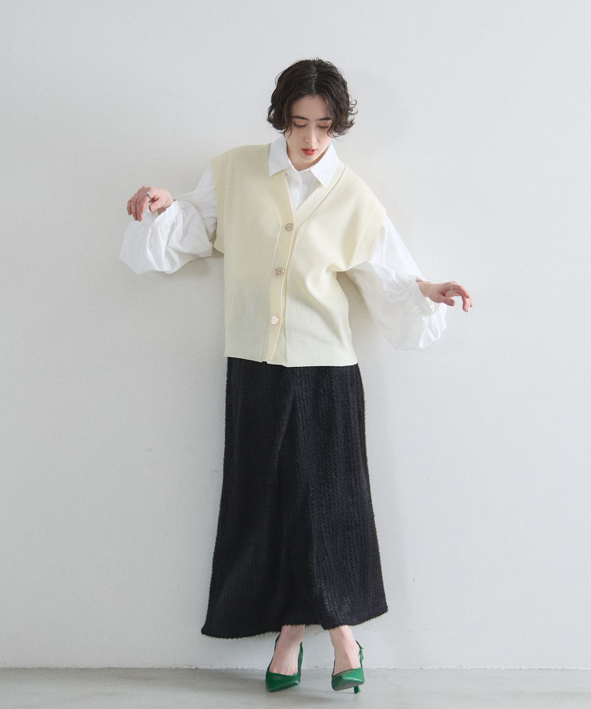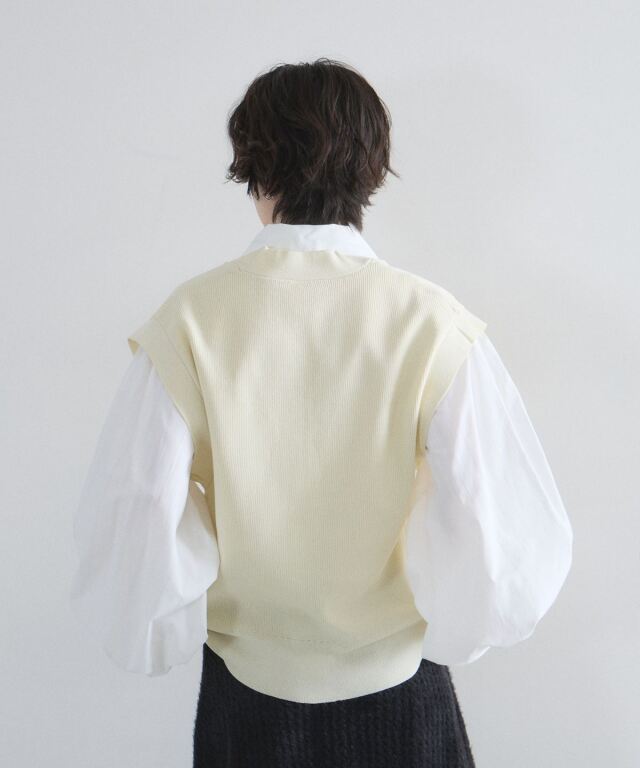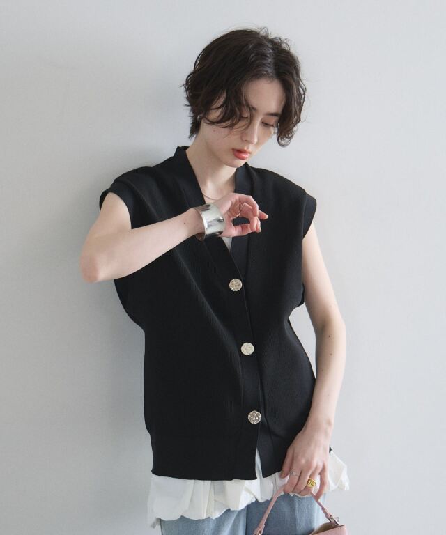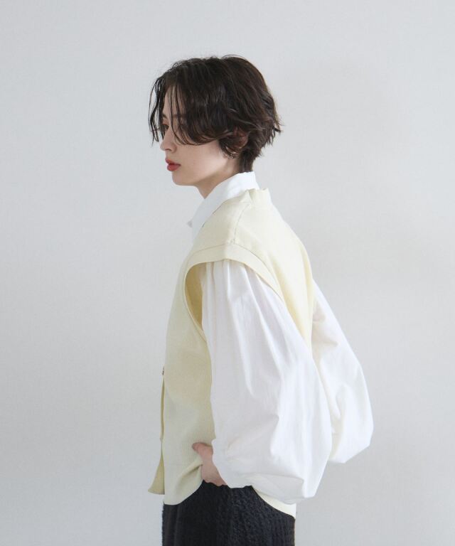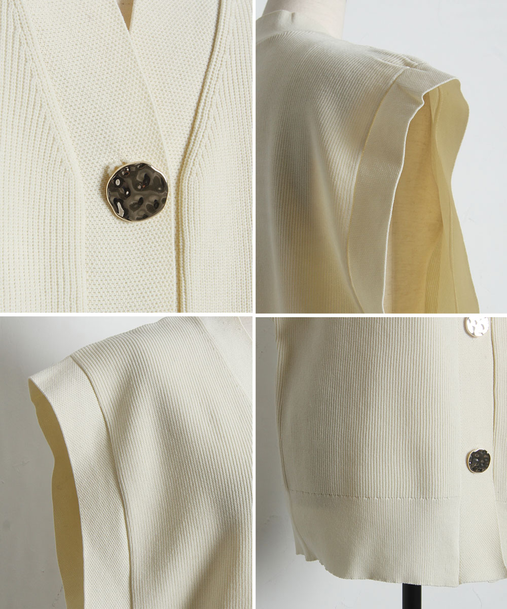| 商品説明 | : | 遊び心のあるボタン使いで、いつものレイヤードをワンランク上の着こなしへ。 一つひとつ表情の異なるアソートボタンがアクセントのニットベスト。 ゆったりとしたアームホールとオーバーサイズなシルエットで、ボリュームスリーブのブラウスともストレスなく重ね着が楽しめます。 シャツやカットソーにプラスするだけで洗練されたモードスタイルが完成します。 |