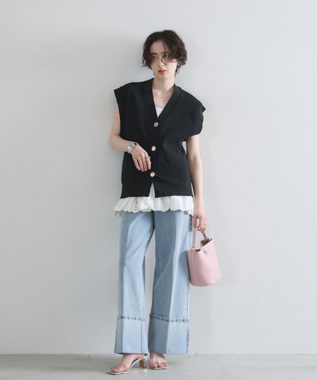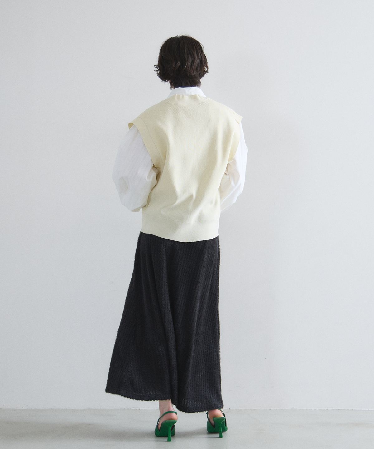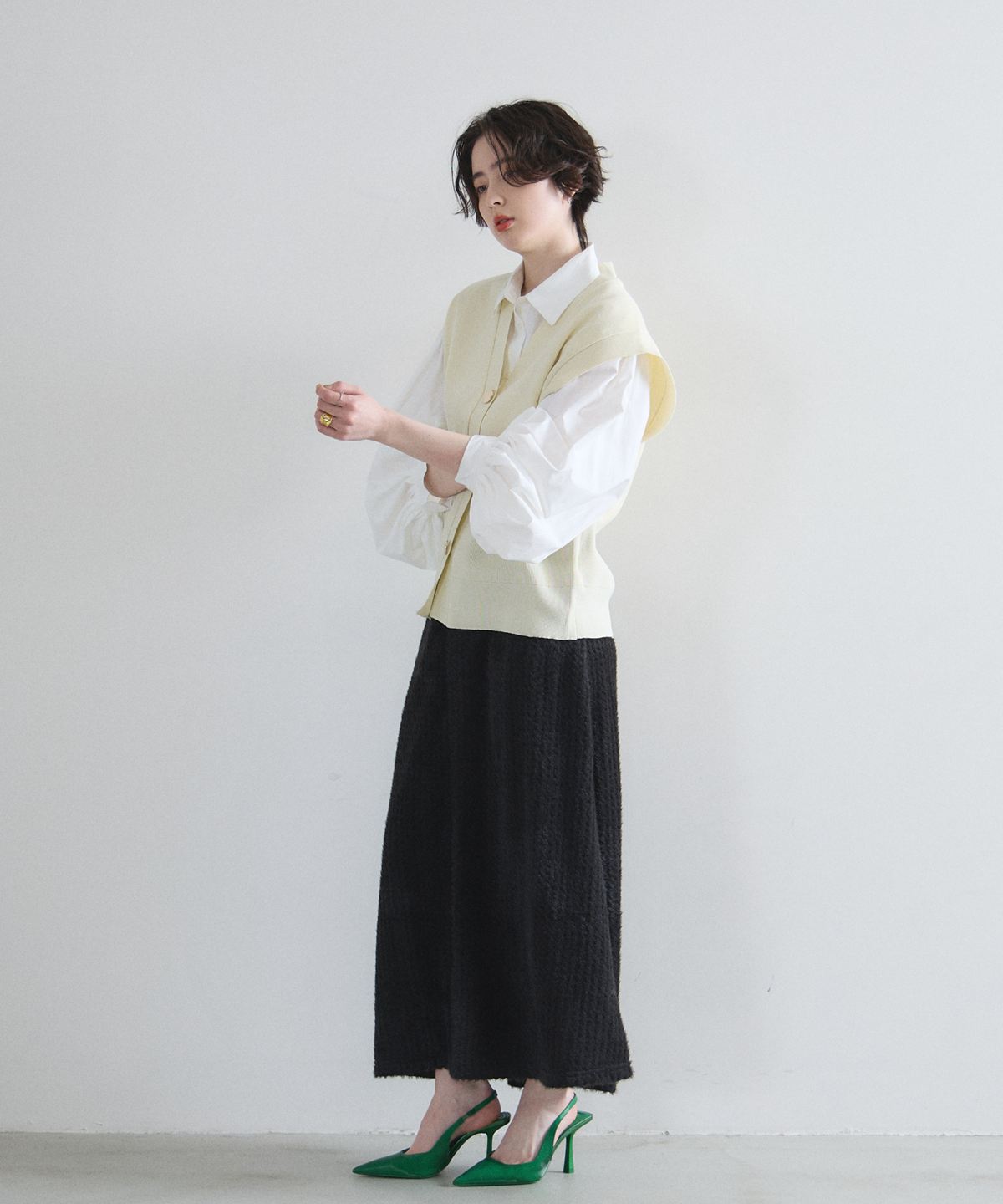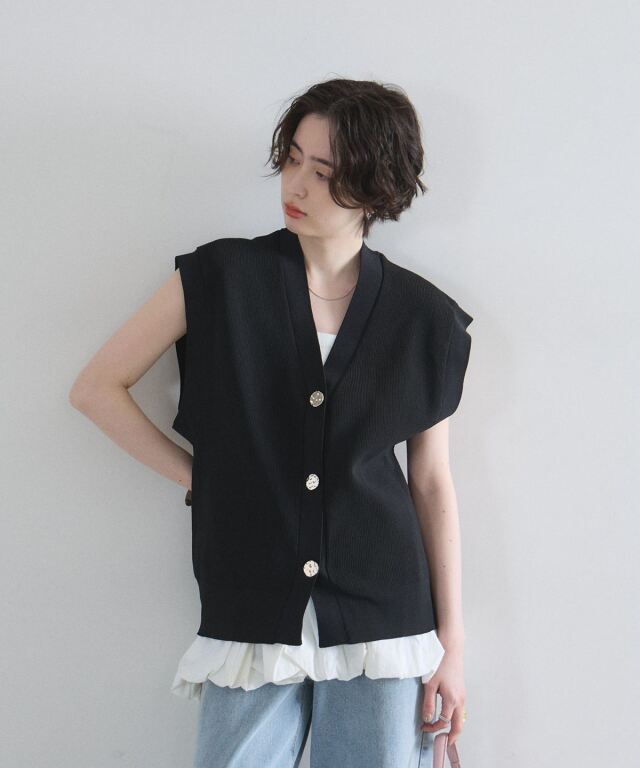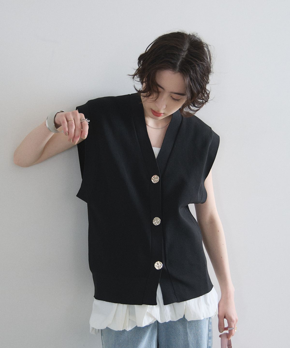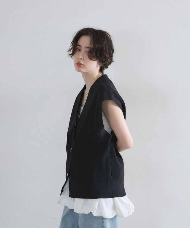 | 商品説明 | : | 遊び心のあるボタン使いで、いつものレイヤードをワンランク上の着こなしへ。 一つひとつ表情の異なるアソートボタンがアクセントのニットベスト。 ゆったりとしたアームホールとオーバーサイズなシルエットで、ボリュームスリーブのブラウスともストレスなく重ね着が楽しめます。 シャツやカットソーにプラスするだけで洗練されたモードスタイルが完成します。 |