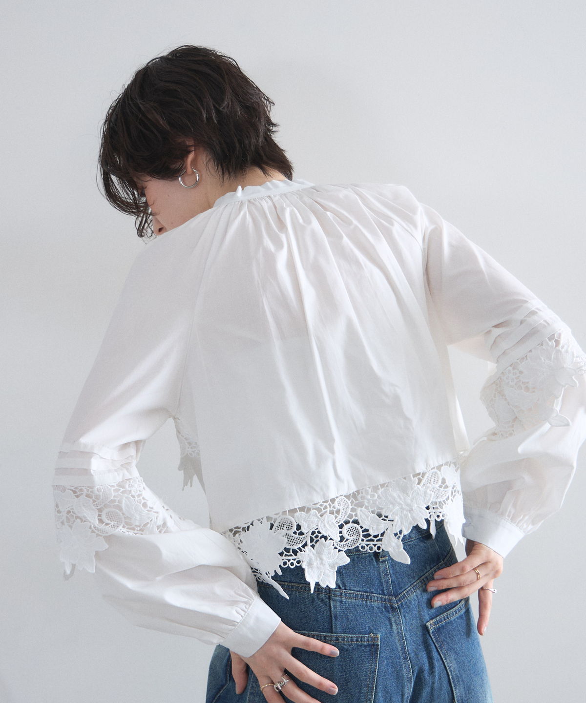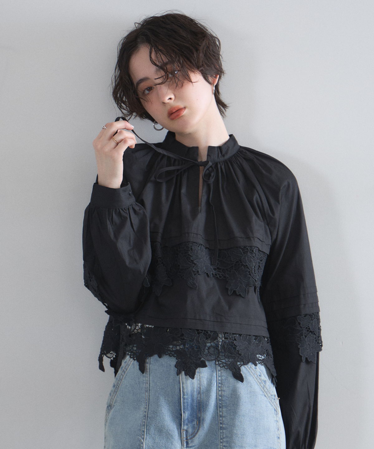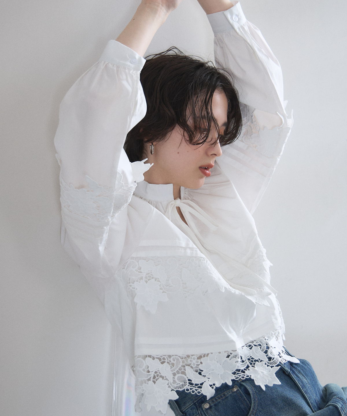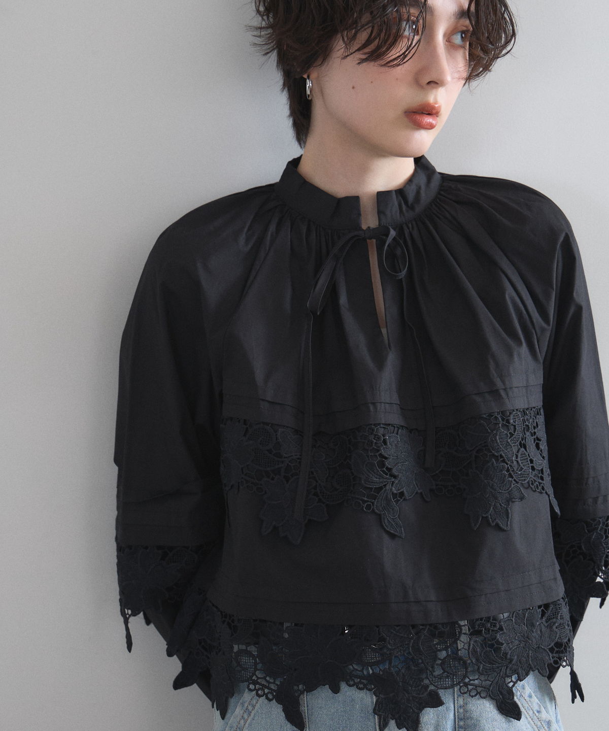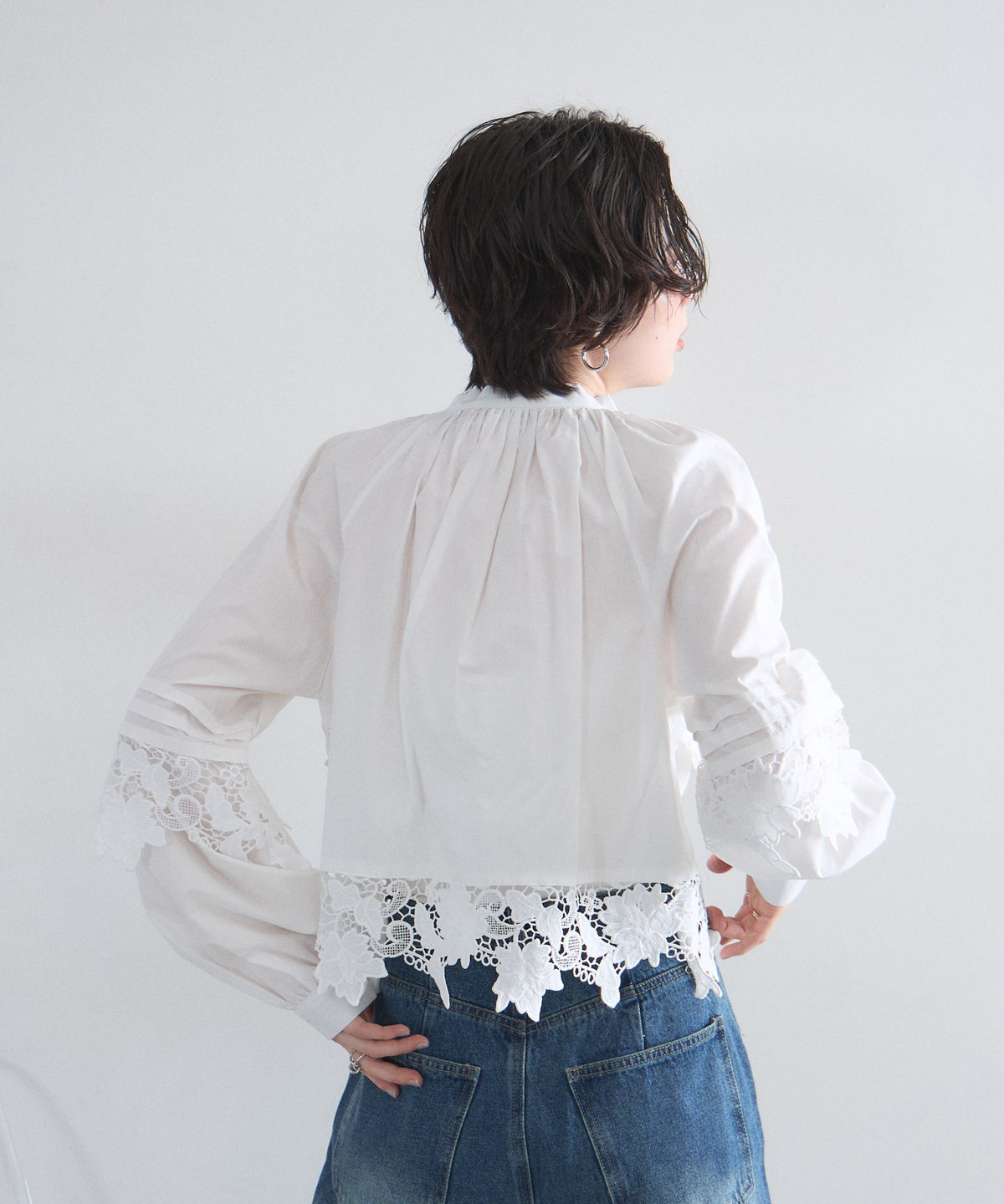 | 商品説明 | : | 贅沢なカットワークレースが目を惹く、フェミニンな主役級ブラウス。 フロントや裾に施された大ぶりのカットワークレースが、顔周りを華やかに演出する一着です。 首元のリボンタイと控えめな立ち襟がクラシカルな印象を与えつつ、ゆったりとしたシルエットでトレンド感もプラス。 デニムでカジュアルダウンしても、スカートでレディにまとめても様になる万能アイテムです。 |