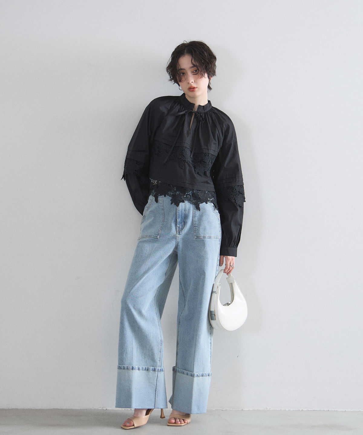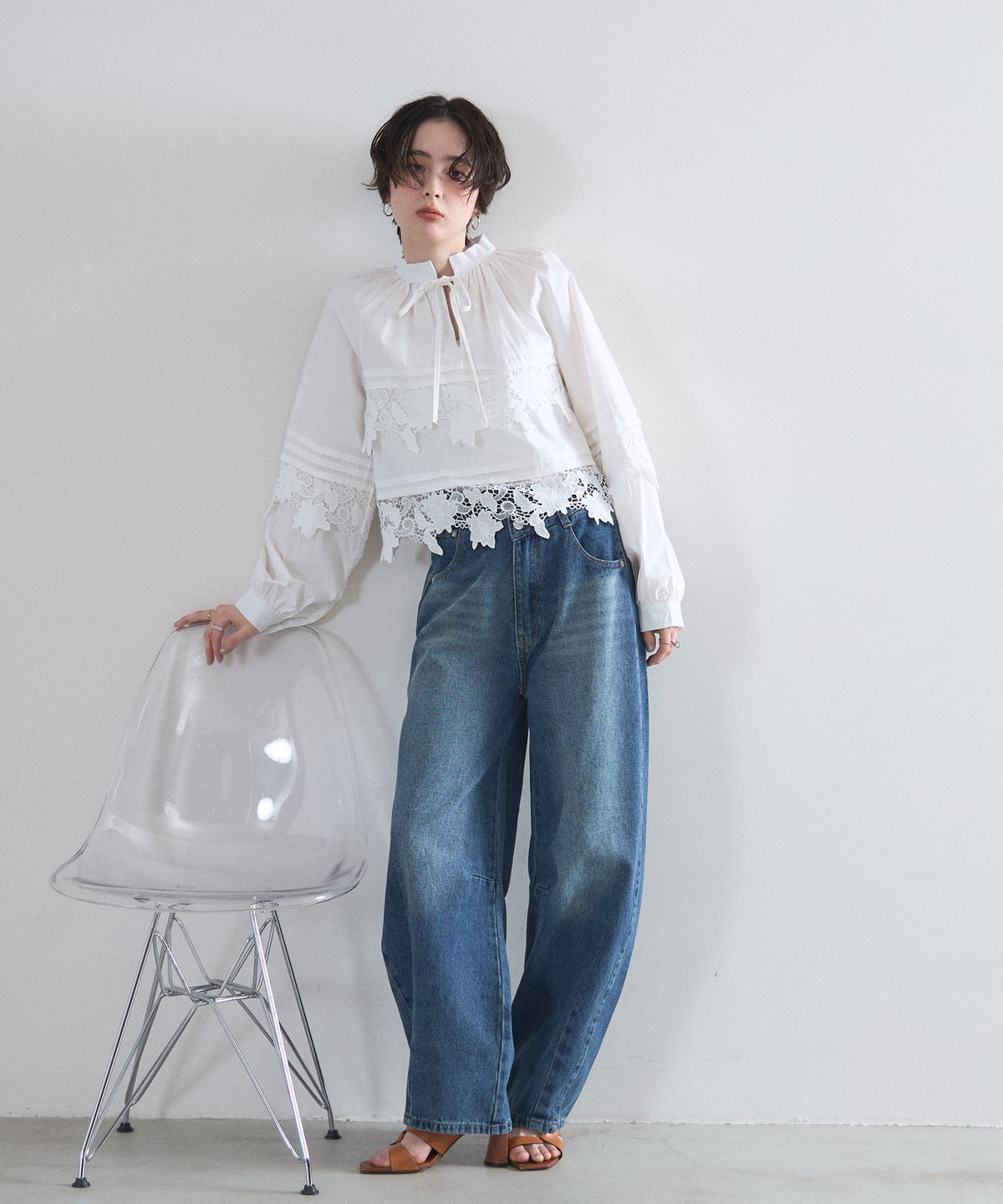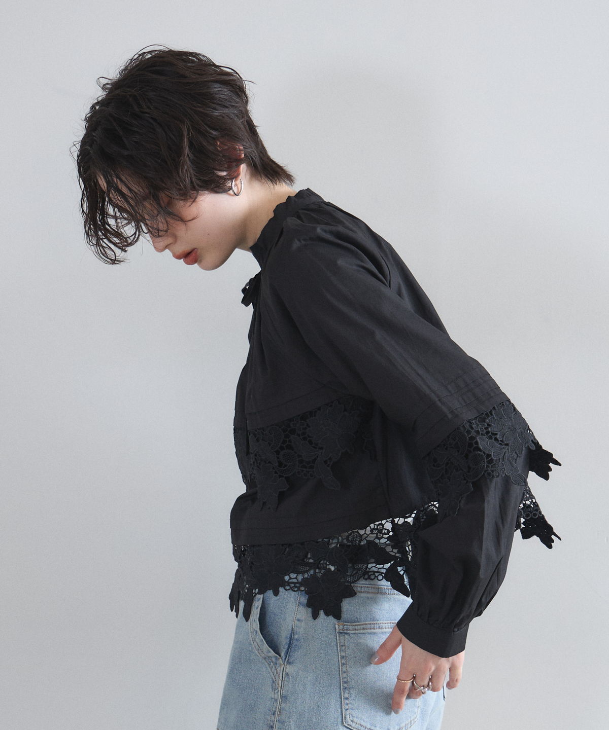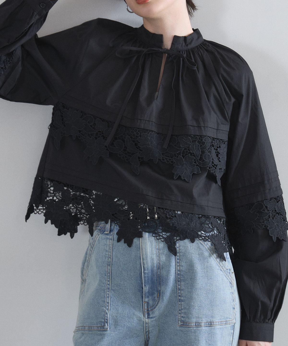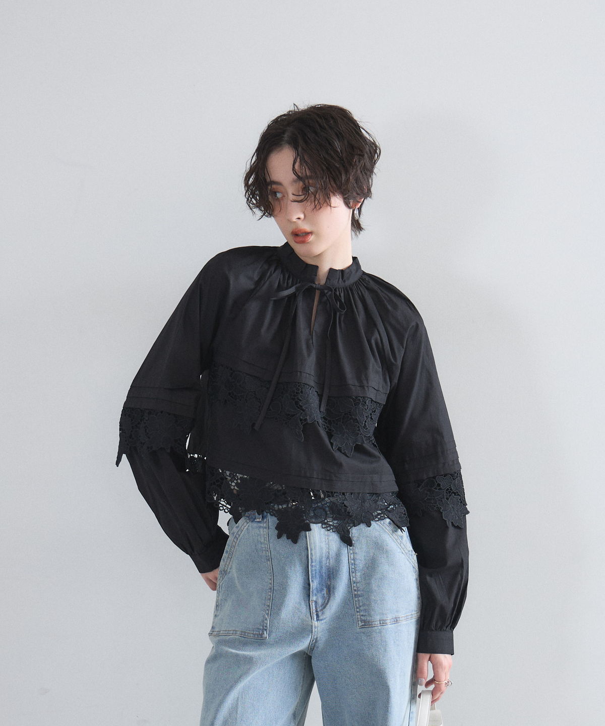 | 商品説明 | : | 贅沢なカットワークレースが目を惹く、フェミニンな主役級ブラウス。 フロントや裾に施された大ぶりのカットワークレースが、顔周りを華やかに演出する一着です。 首元のリボンタイと控えめな立ち襟がクラシカルな印象を与えつつ、ゆったりとしたシルエットでトレンド感もプラス。 デニムでカジュアルダウンしても、スカートでレディにまとめても様になる万能アイテムです。 |