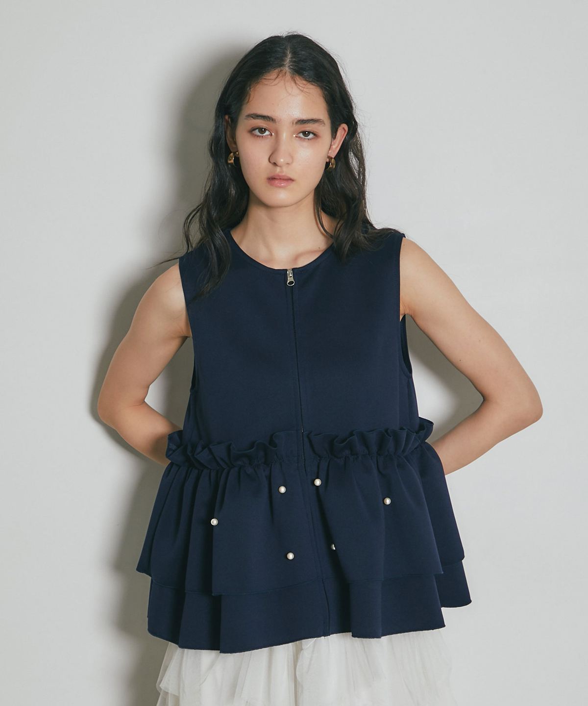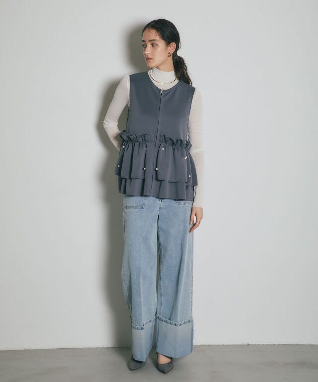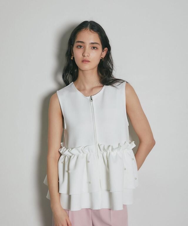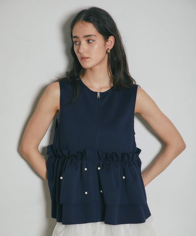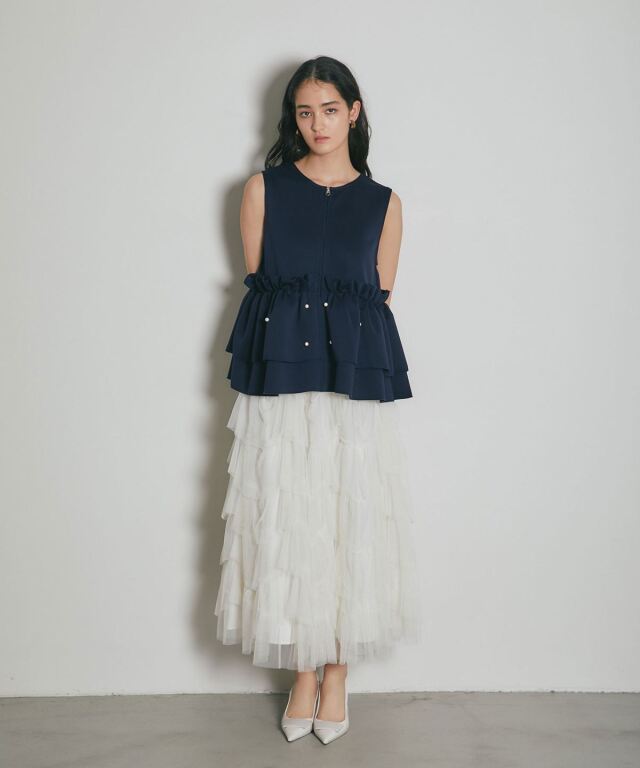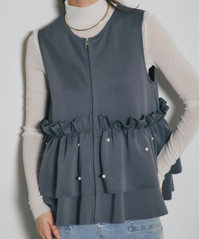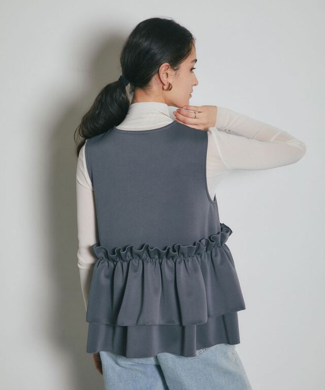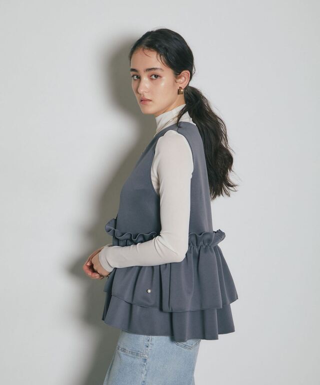| 商品説明 | ≪ Attention:販売日、在庫状況はWEBと店舗と異なります。予めご了承くださいませ。≫ とろみのある素材を使用したフリル切替ジレ 当店の人気アイテム!フリル切替ジレのNEWアイテム ペプラム切替のフリルにパールをあしらった上品かつガーリーな1枚 カジュアルなアイテムとも相性◎ シンプルなコーディネートに投入するだけで 華やかさと可愛らしさをプラスしてくれるアイテムです |