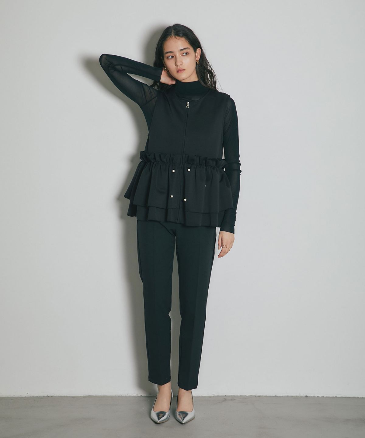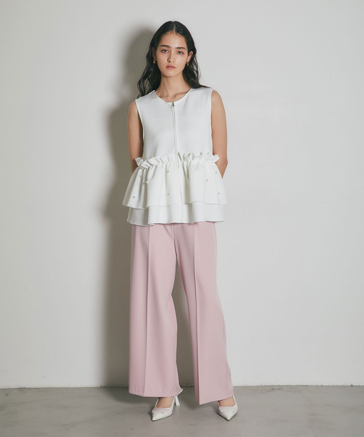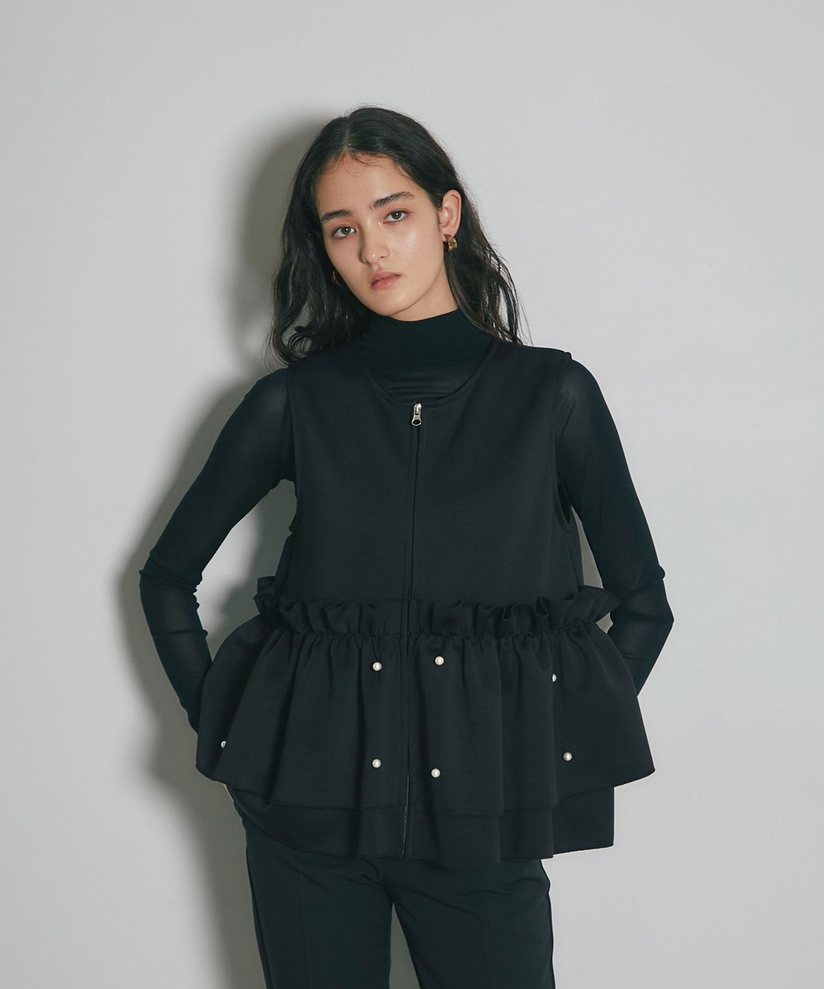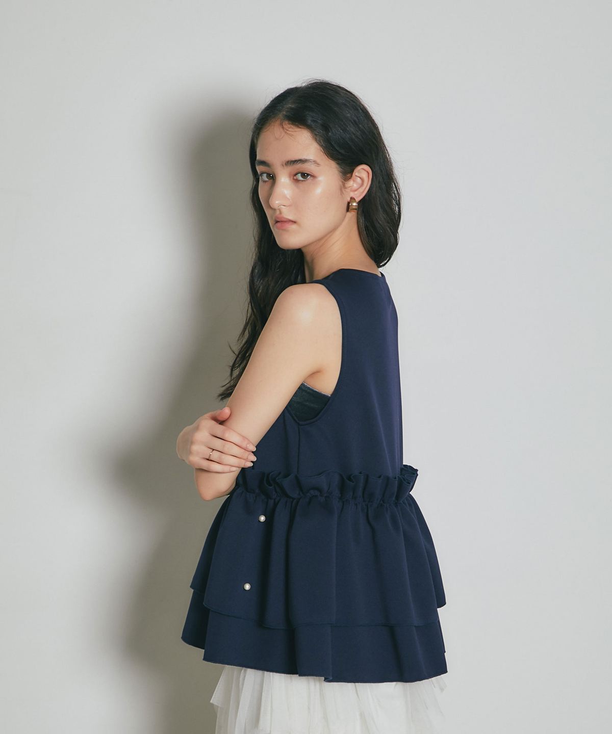 | 商品説明 | ≪ Attention:販売日、在庫状況はWEBと店舗と異なります。予めご了承くださいませ。≫ とろみのある素材を使用したフリル切替ジレ 当店の人気アイテム!フリル切替ジレのNEWアイテム ペプラム切替のフリルにパールをあしらった上品かつガーリーな1枚 カジュアルなアイテムとも相性◎ シンプルなコーディネートに投入するだけで 華やかさと可愛らしさをプラスしてくれるアイテムです |