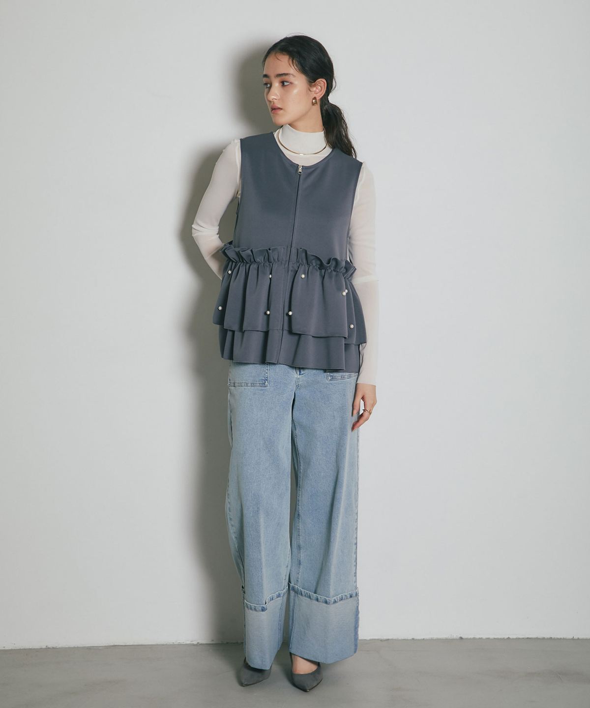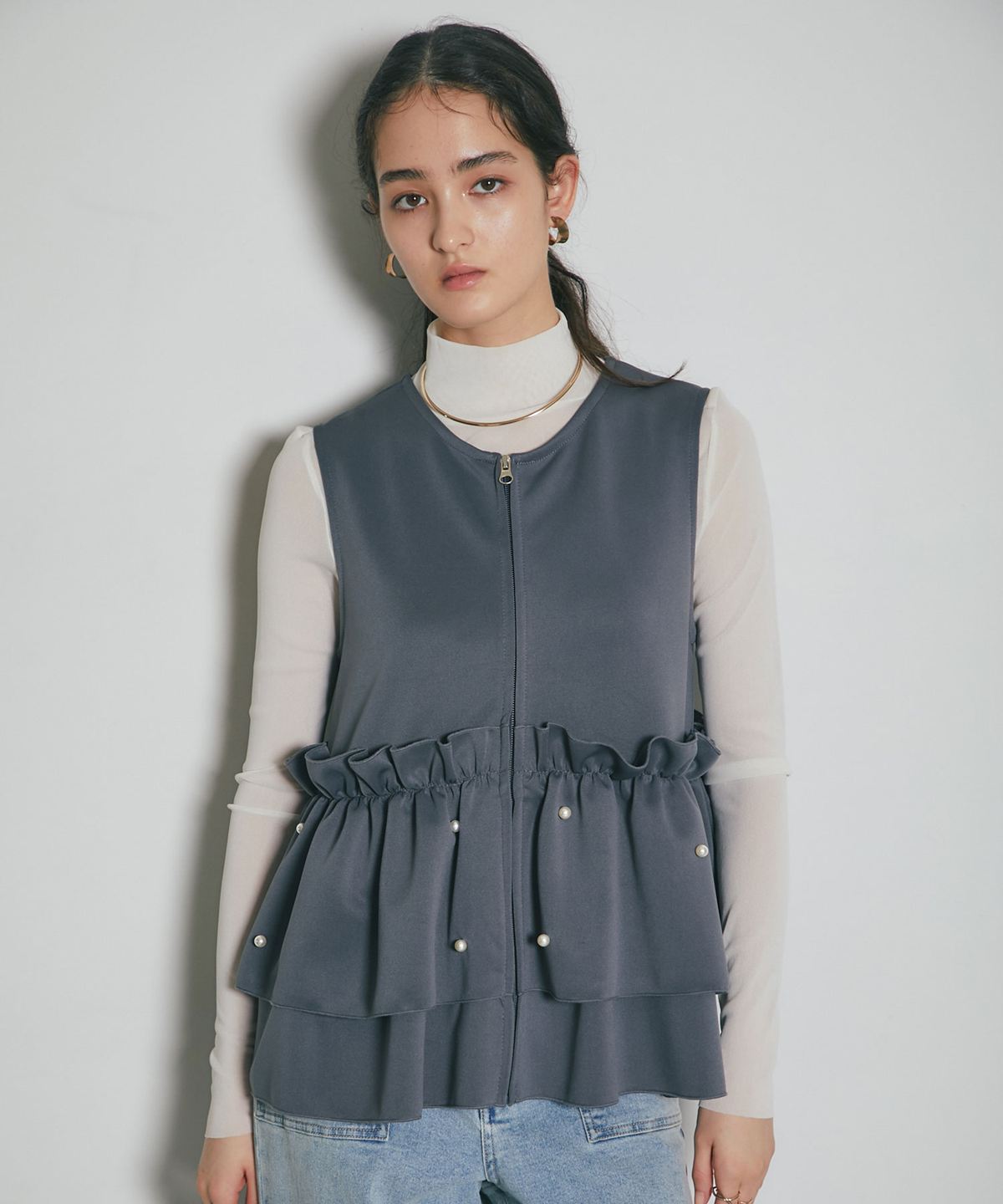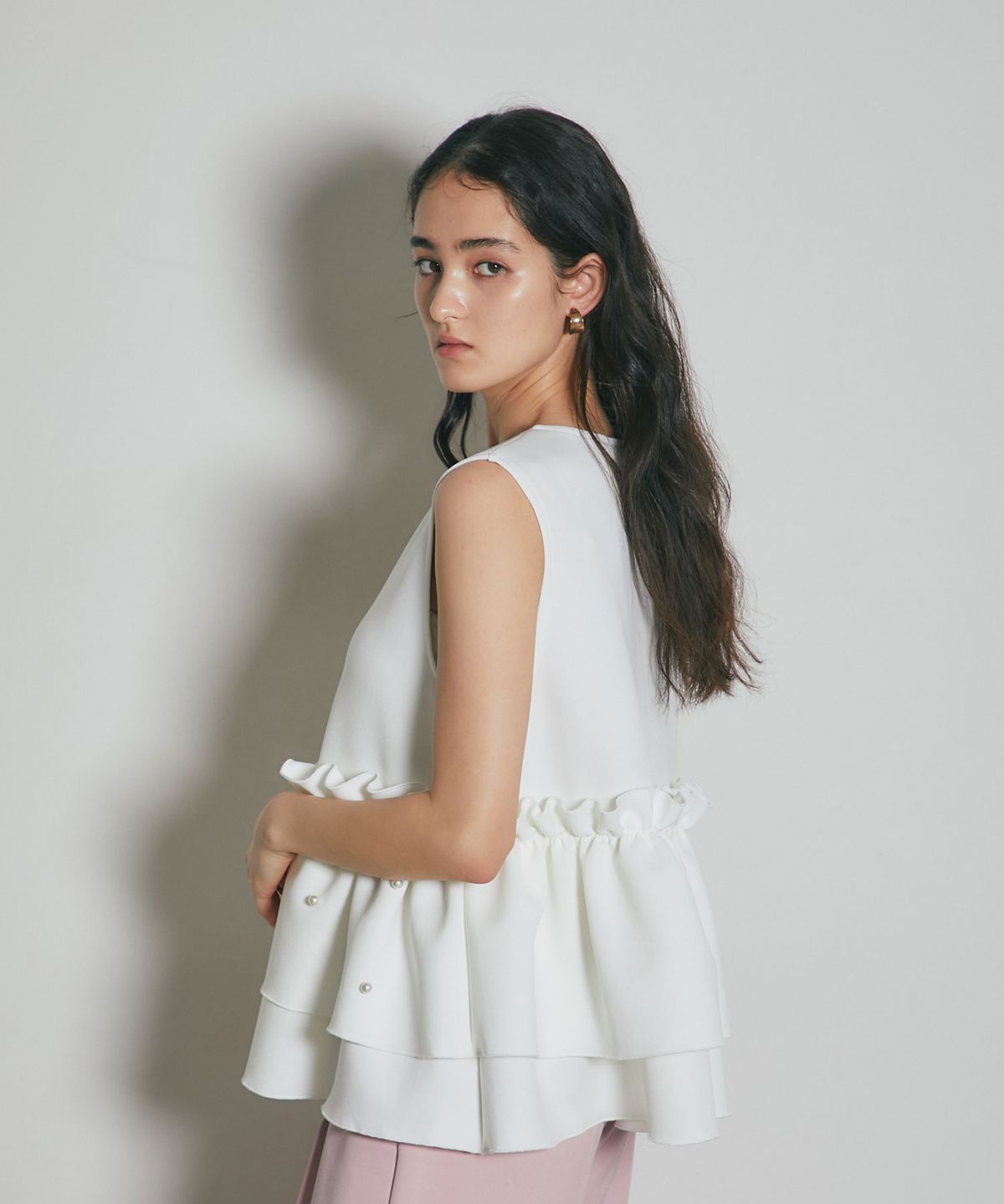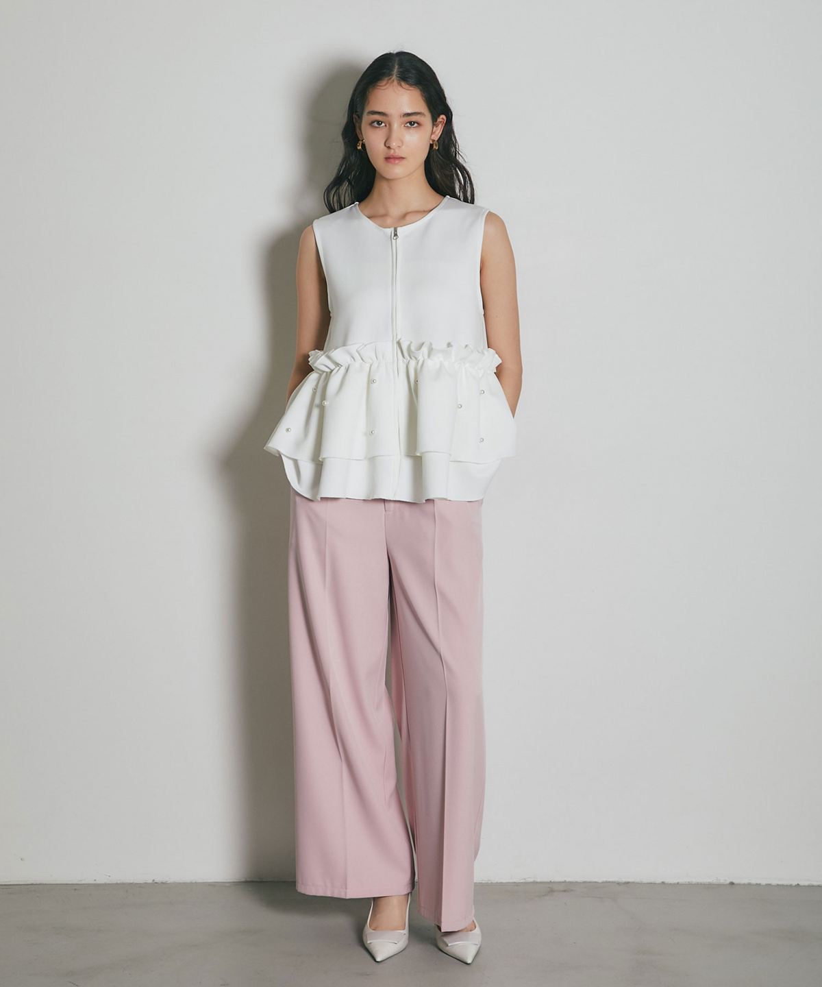 | 商品説明 | ≪ Attention:販売日、在庫状況はWEBと店舗と異なります。予めご了承くださいませ。≫ とろみのある素材を使用したフリル切替ジレ 当店の人気アイテム!フリル切替ジレのNEWアイテム ペプラム切替のフリルにパールをあしらった上品かつガーリーな1枚 カジュアルなアイテムとも相性◎ シンプルなコーディネートに投入するだけで 華やかさと可愛らしさをプラスしてくれるアイテムです |