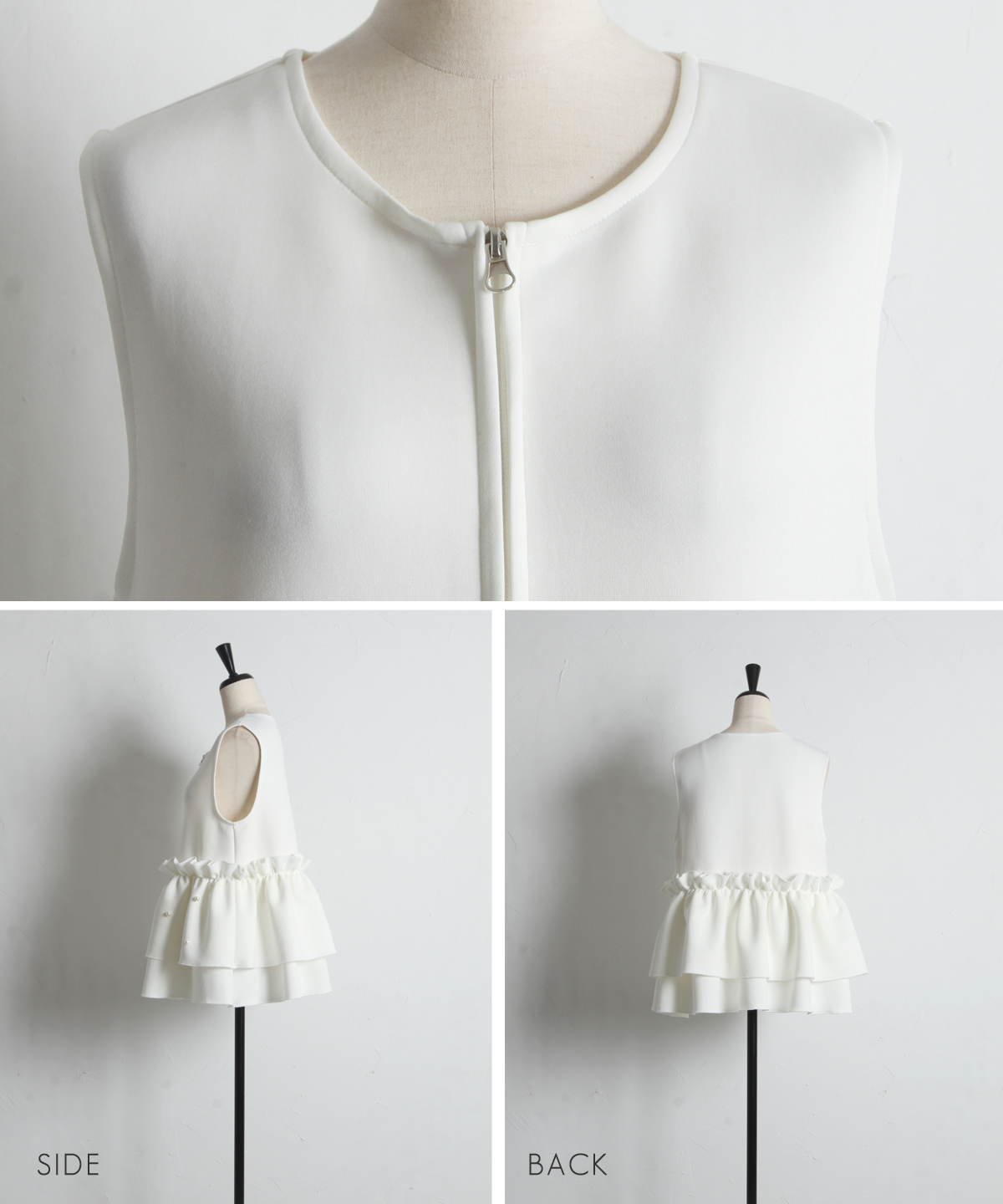 | 商品説明 | : | とろみのある素材を使用したフリル切替ジレ 当店の人気アイテム!フリル切替ジレのNEWアイテム ペプラム切替のフリルにパールをあしらった上品かつガーリーな1枚 カジュアルなアイテムとも相性◎ シンプルなコーディネートに投入するだけで 華やかさと可愛らしさをプラスしてくれるアイテムです |