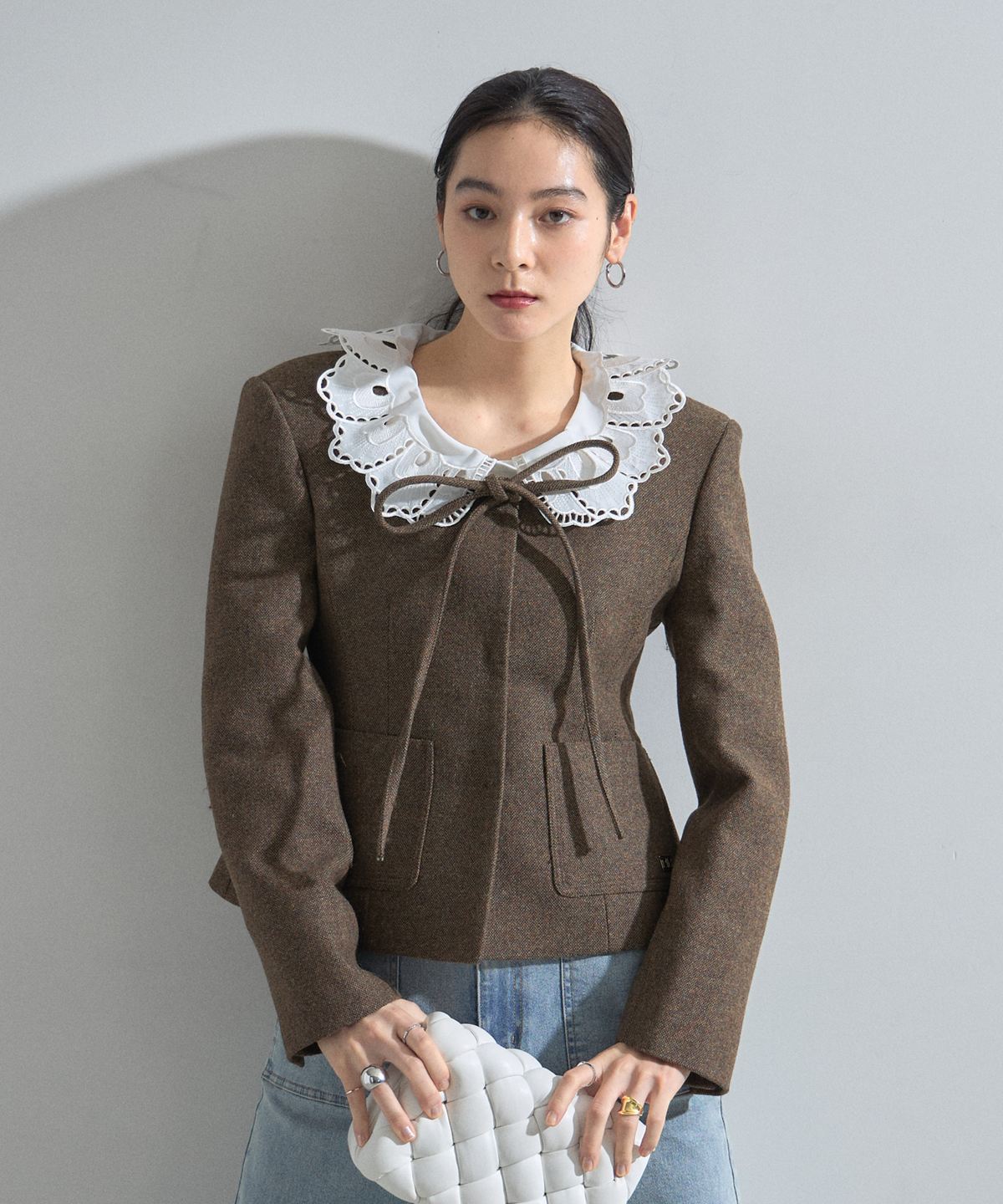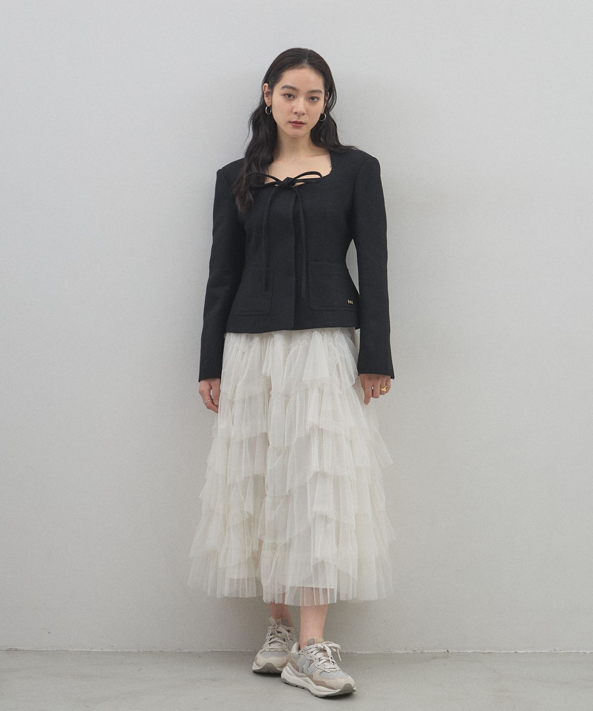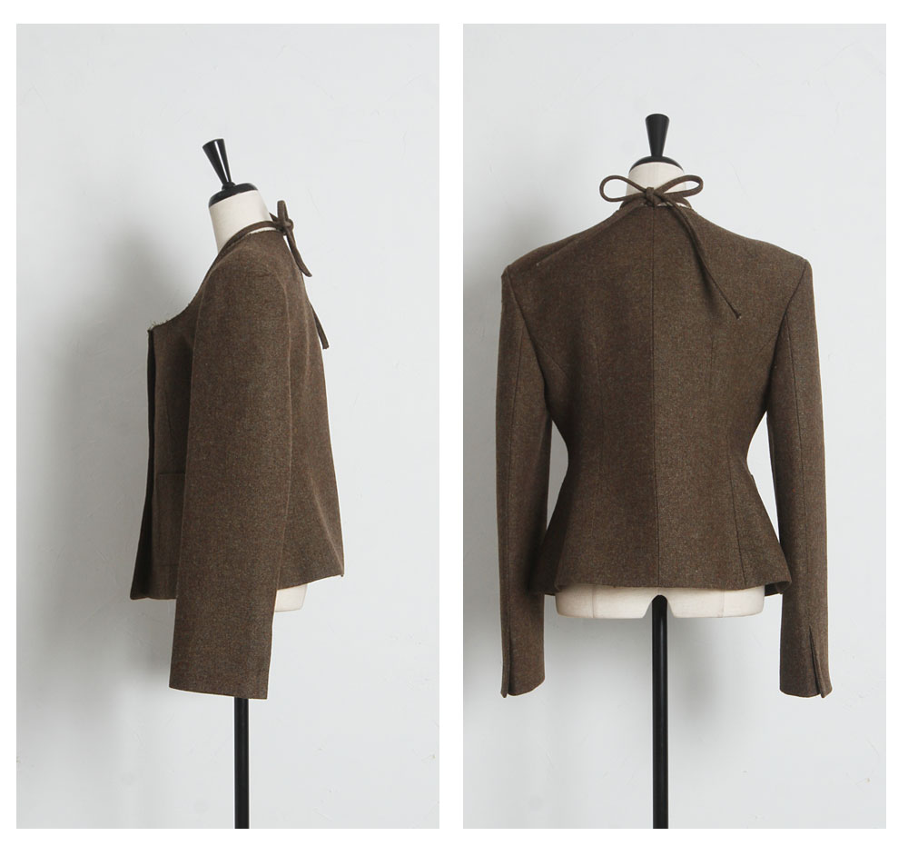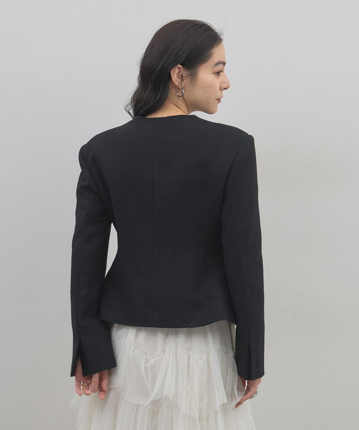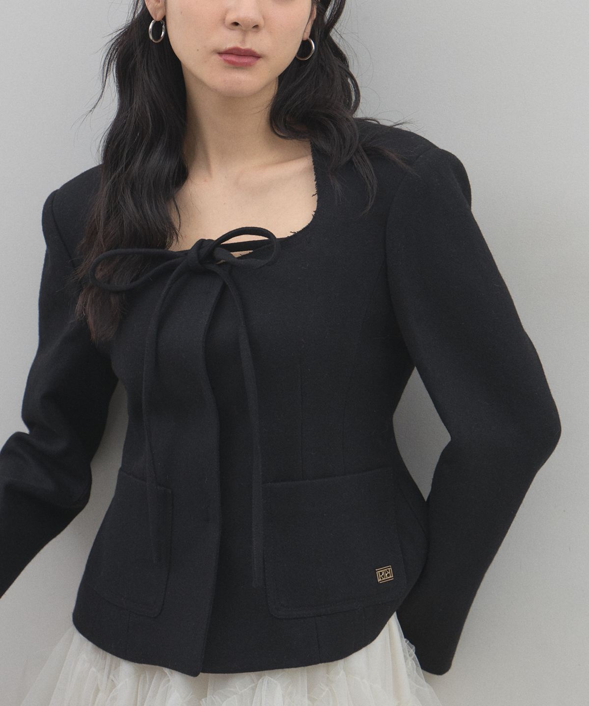 | 商品説明 | : | デコルテを美しく魅せるスクエアネックとリボン使いが目を惹く、クラシカルな主役級ジャケット。 大きく開いたスクエアネックが女性らしい抜け感を演出し、顔周りをすっきりと見せてくれる一着です。 フロントにあしらわれた細身のリボンタイが、マニッシュになりがちなジャケットスタイルに程よい甘さとモードなエッセンスをプラスします。 ウエストを程よくシェイプしたコンパクトなシルエットは、ボリュームのあるチュールスカートやワイドパンツとも相性抜群。 パッチポケットのさりげないディテールがアクセントになり、デイリーから華やかなシーンまで幅広く活躍します。 羽織るだけで品格のあるスタイリングが完成する、こだわりの詰まったアイテムです。 |