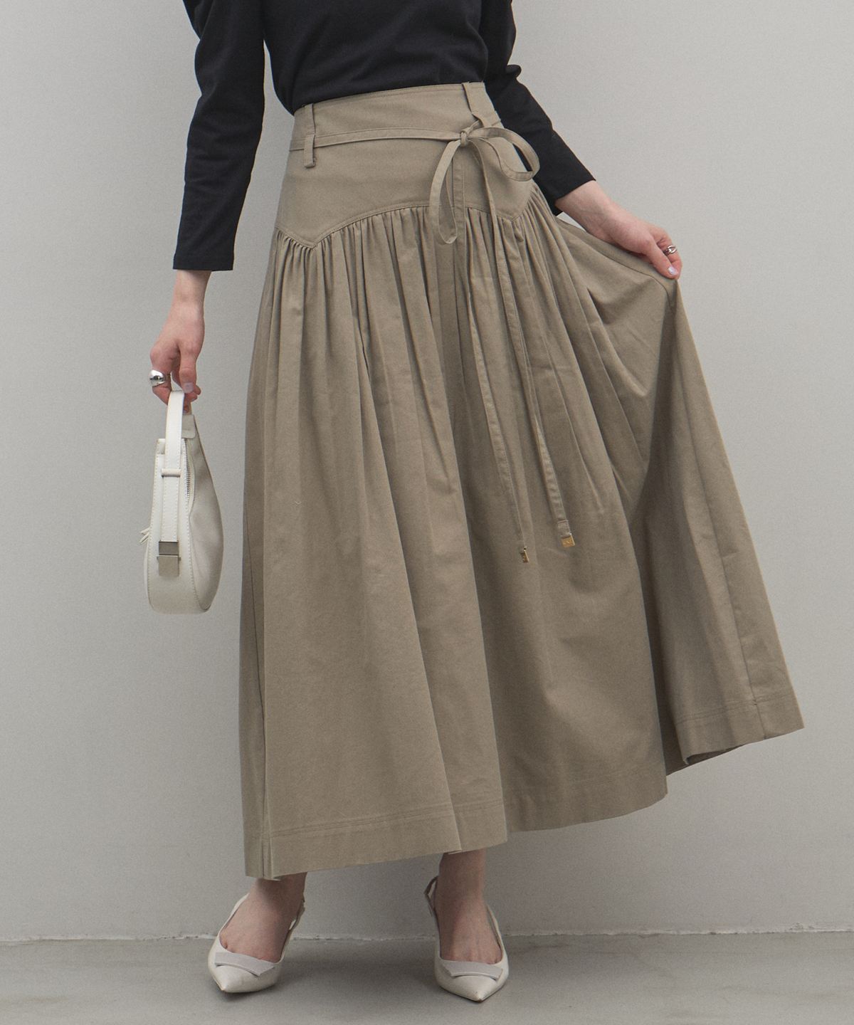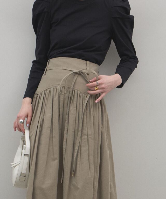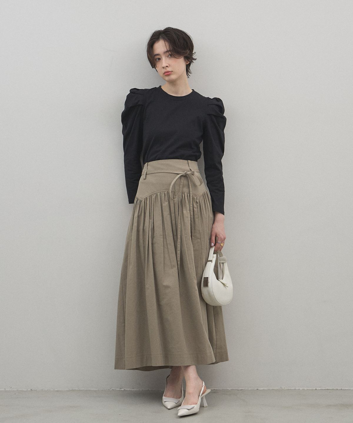 | 商品説明 | : | 歩くたびにドラマが生まれる。贅沢なボリュームで魅せる、主役級ギャザースカート。 たっぷりと寄せたギャザーが生み出す、圧倒的なボリューム感が目を惹くフレアスカート。 ウエストから腰まわりにかけてのV字の切り替えデザインが、 ボリュームがありながらもお腹周りをすっきりと見せ、洗練されたメリハリのあるシルエットを叶えます。 ハリのある素材を使用することで、ふんわりとした形を一日中キープ。 共布の細リボンがさりげないアクセントになり、シンプルなトップスを合わせるだけで都会的でレディなスタイルが完成します。 スニーカーで外しても、ヒールで上品にまとめてもサマになる、ワードローブに華を添える一着です。 |