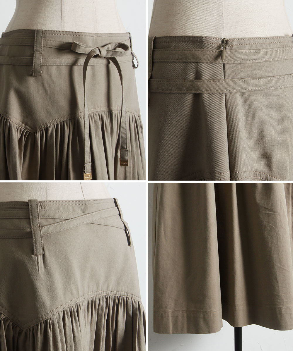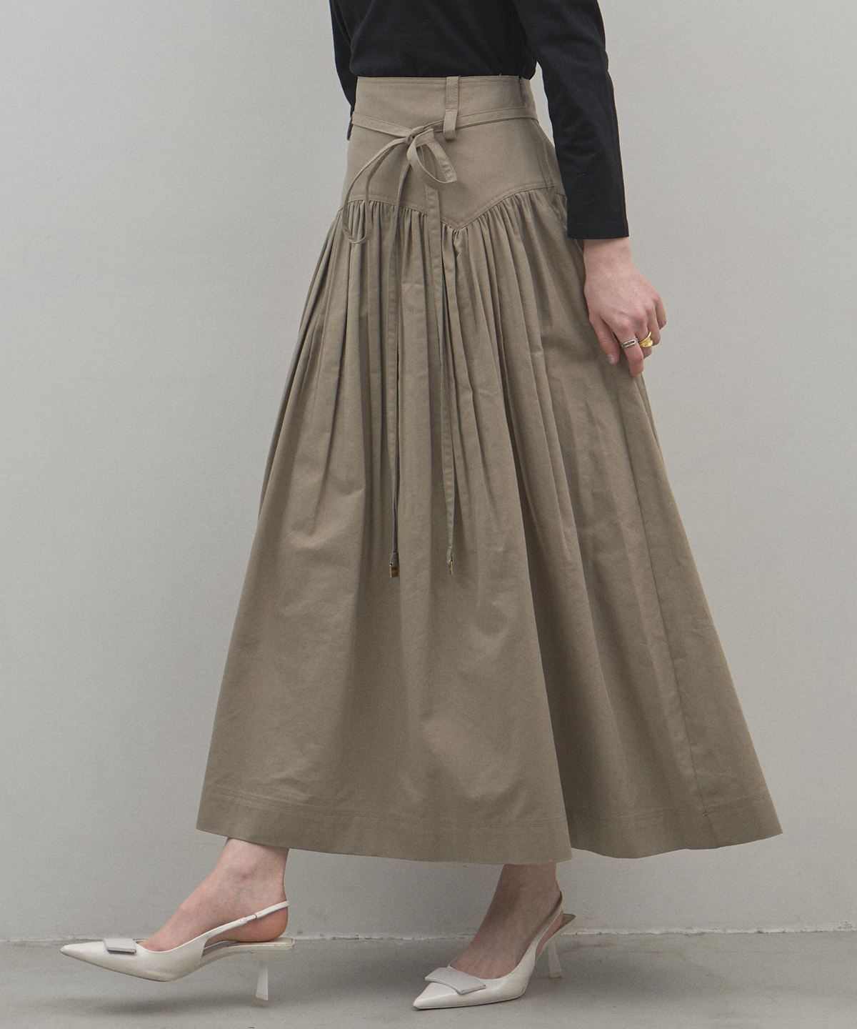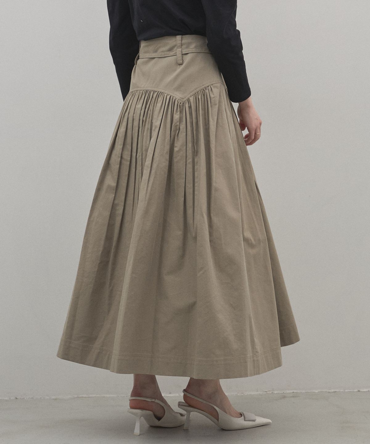 | 商品説明 | : | 歩くたびにドラマが生まれる。贅沢なボリュームで魅せる、主役級ギャザースカート。 たっぷりと寄せたギャザーが生み出す、圧倒的なボリューム感が目を惹くフレアスカート。 ウエストから腰まわりにかけてのV字の切り替えデザインが、 ボリュームがありながらもお腹周りをすっきりと見せ、洗練されたメリハリのあるシルエットを叶えます。 ハリのある素材を使用することで、ふんわりとした形を一日中キープ。 共布の細リボンがさりげないアクセントになり、シンプルなトップスを合わせるだけで都会的でレディなスタイルが完成します。 スニーカーで外しても、ヒールで上品にまとめてもサマになる、ワードローブに華を添える一着です。 |