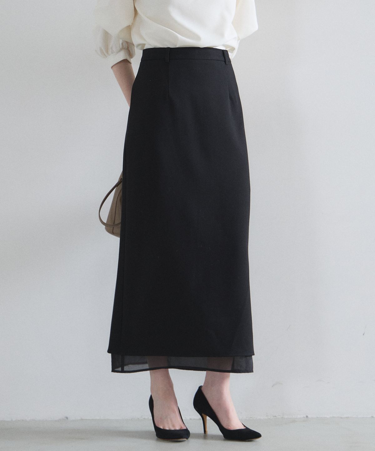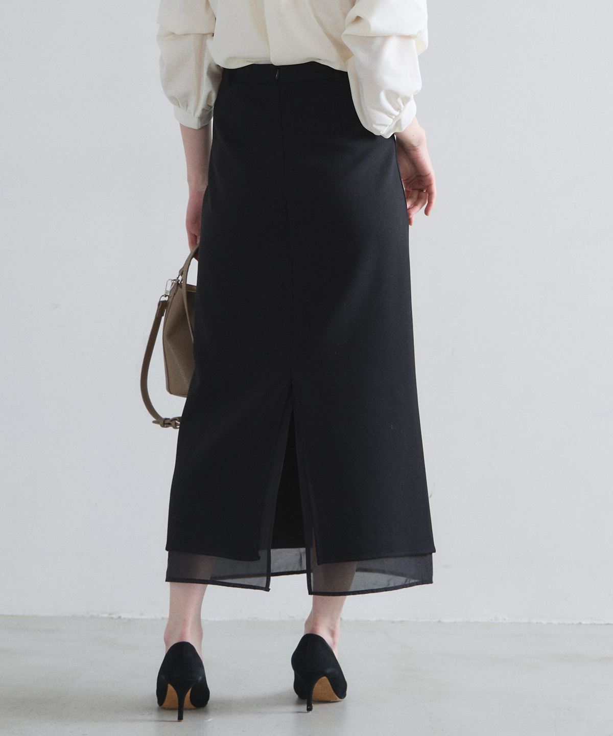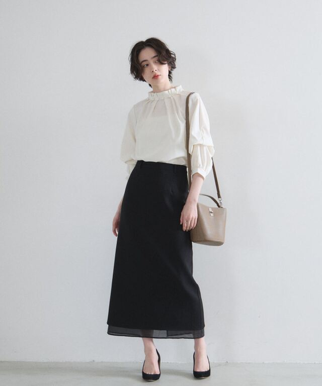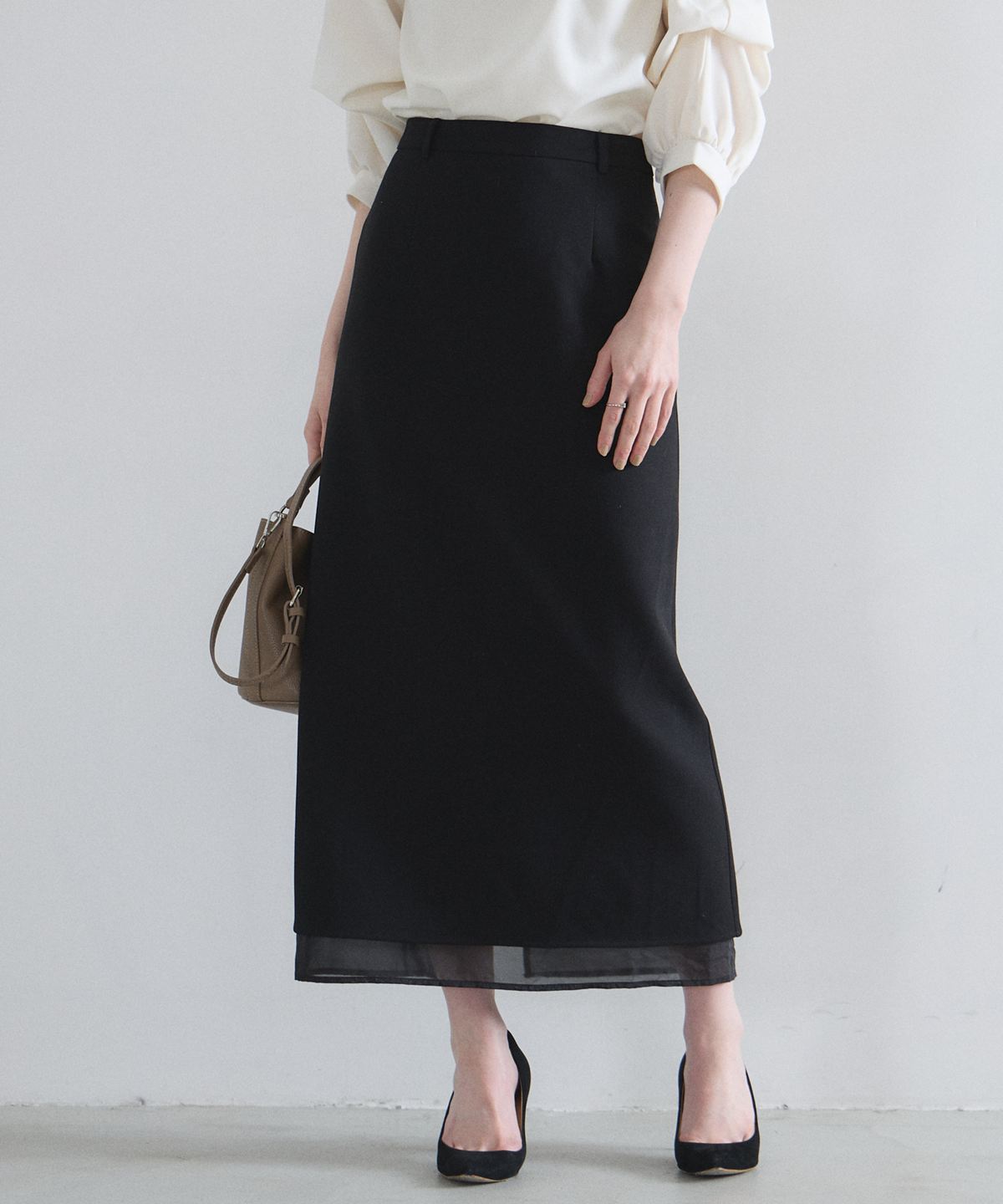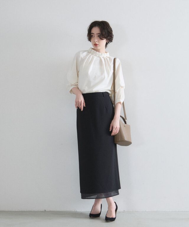 | 商品説明 | : | 裾のシアーが抜け感を添える美シルエットタイトスカート オンオフ問わず活躍する、洗練されたIラインシルエットが魅力のロングスカート。 裾部分にさりげなく重ねたシアー素材が、重たくなりがちなブラックに軽やかな抜け 感と都会的なニュアンスをプラスします。 腰周りをすっきりと見せるハイウエスト設計で、スタイルアップ効果も抜群。 バックスリット入りで足さばきも良く、ブラウスを合わせたオフィススタイルから、 カジュアルなニット合わせまで、大人の日常に品格を添えてくれる一着です。 |
