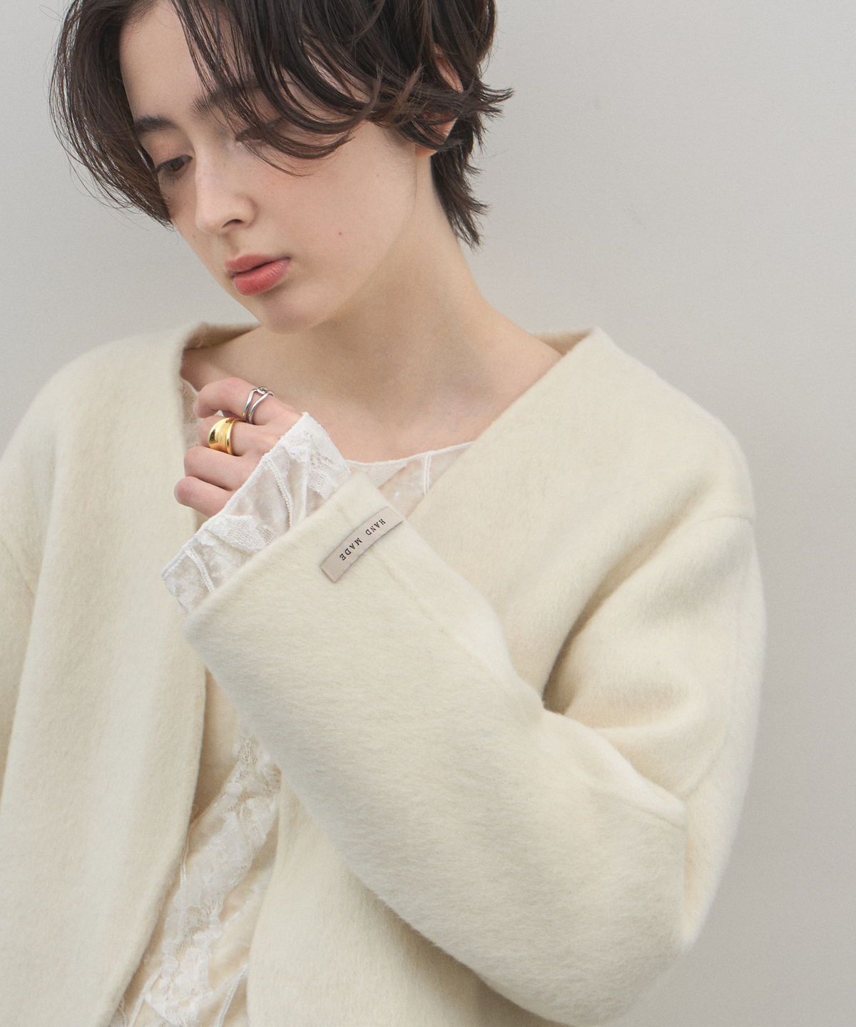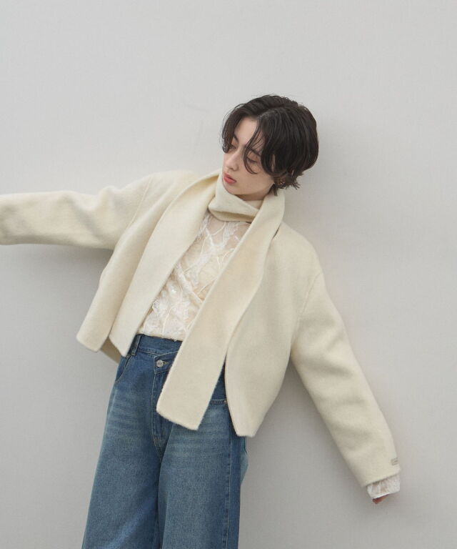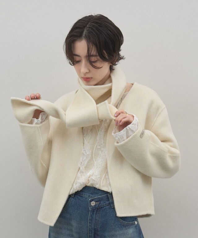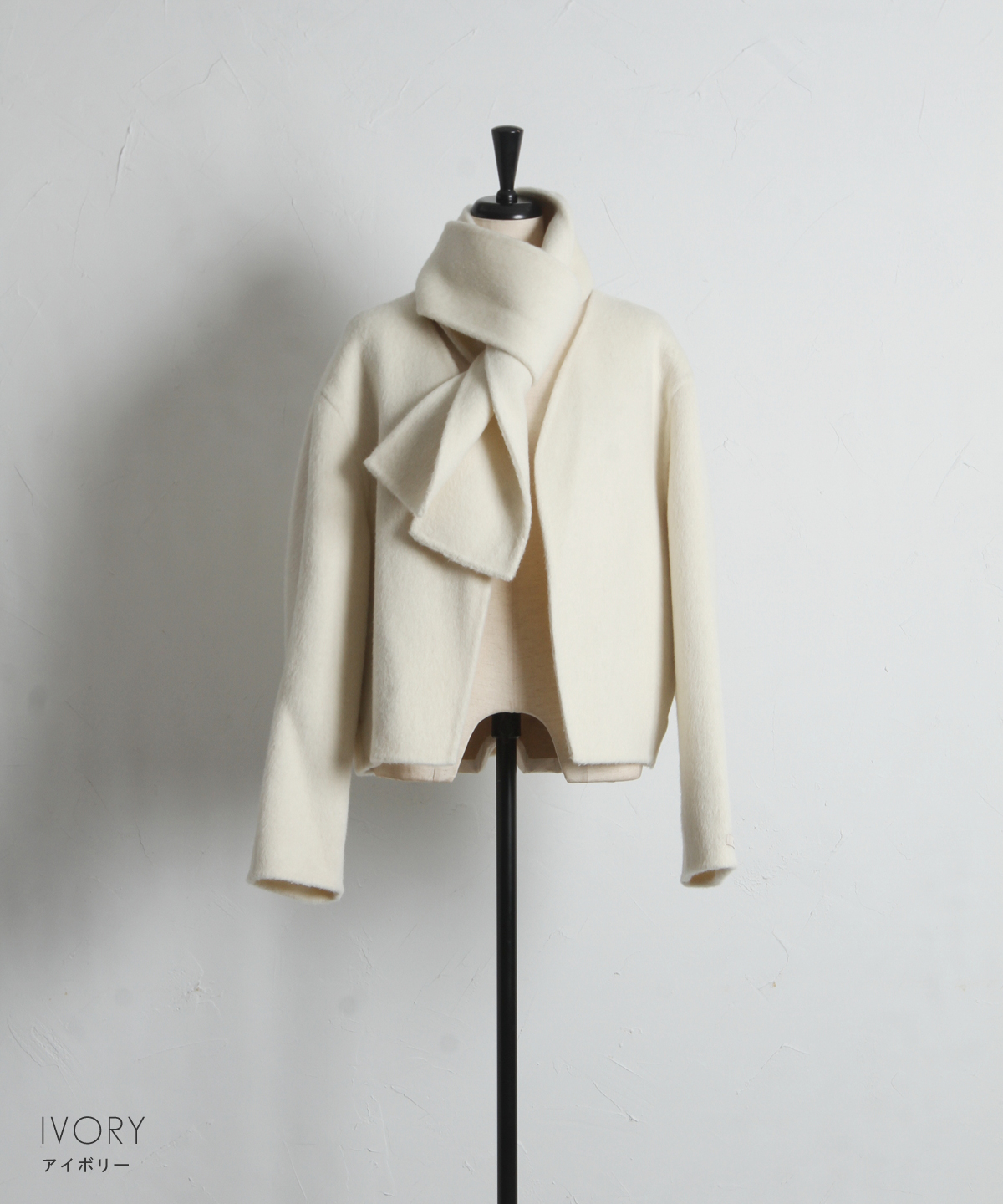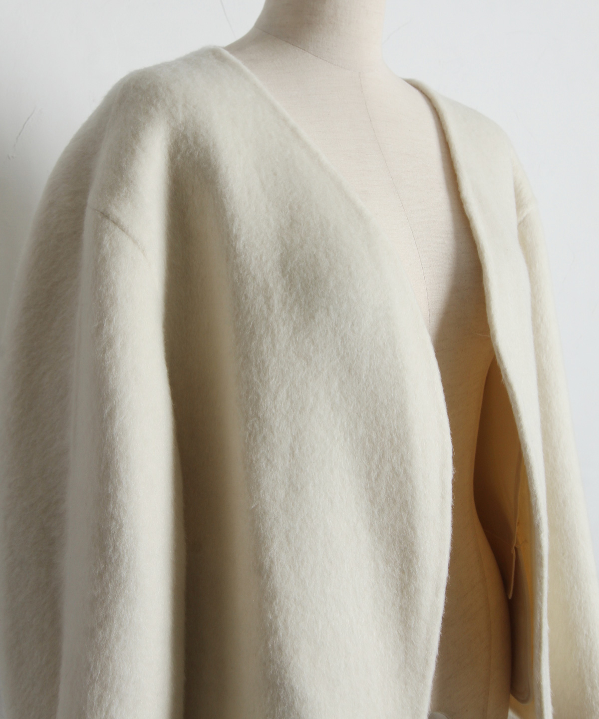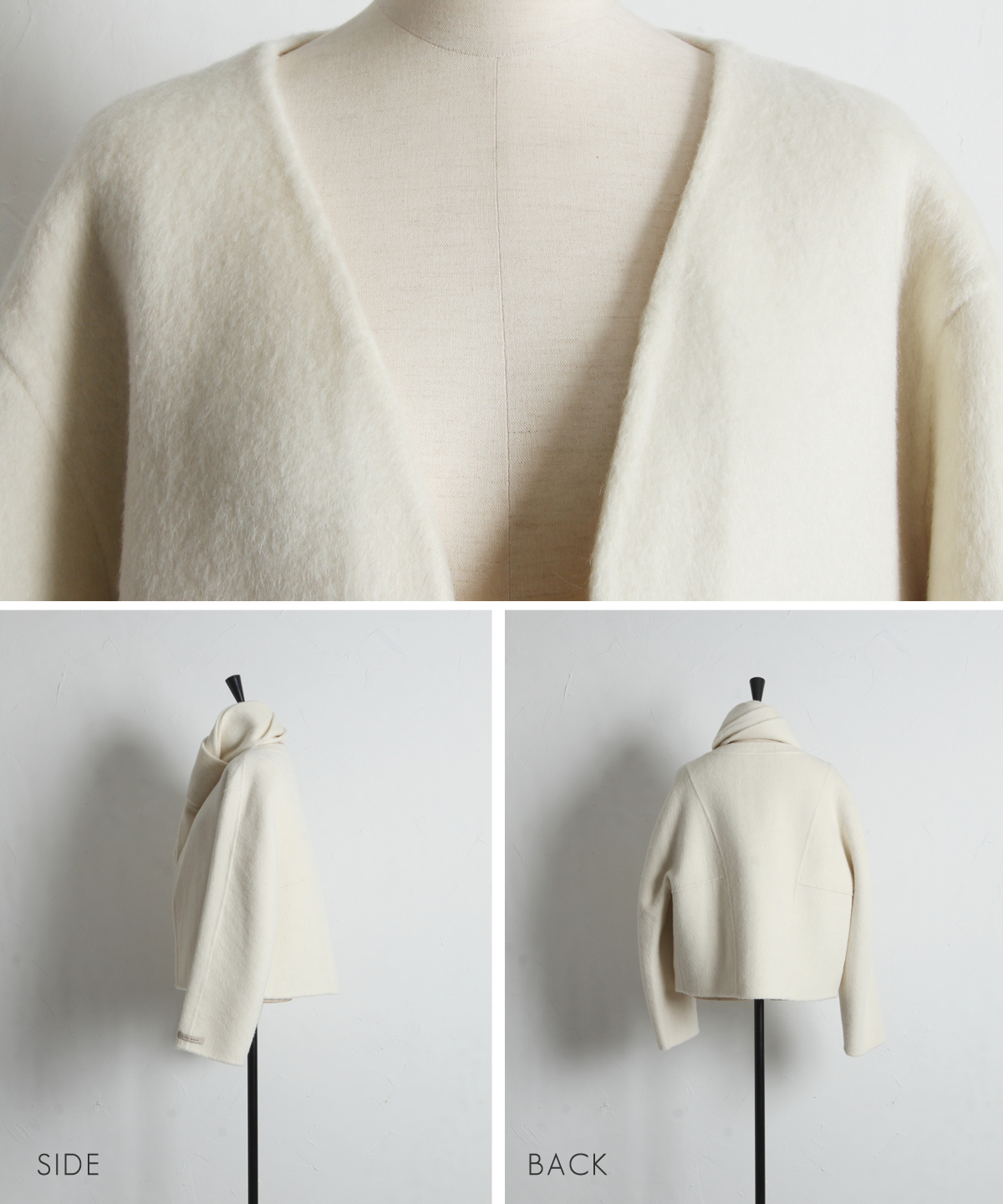 本体/ウール80% アンゴラ10% シルク10% 裏地/ポリエステル100% (中国製・伸縮性あり・透け感なし・裏地なし) |