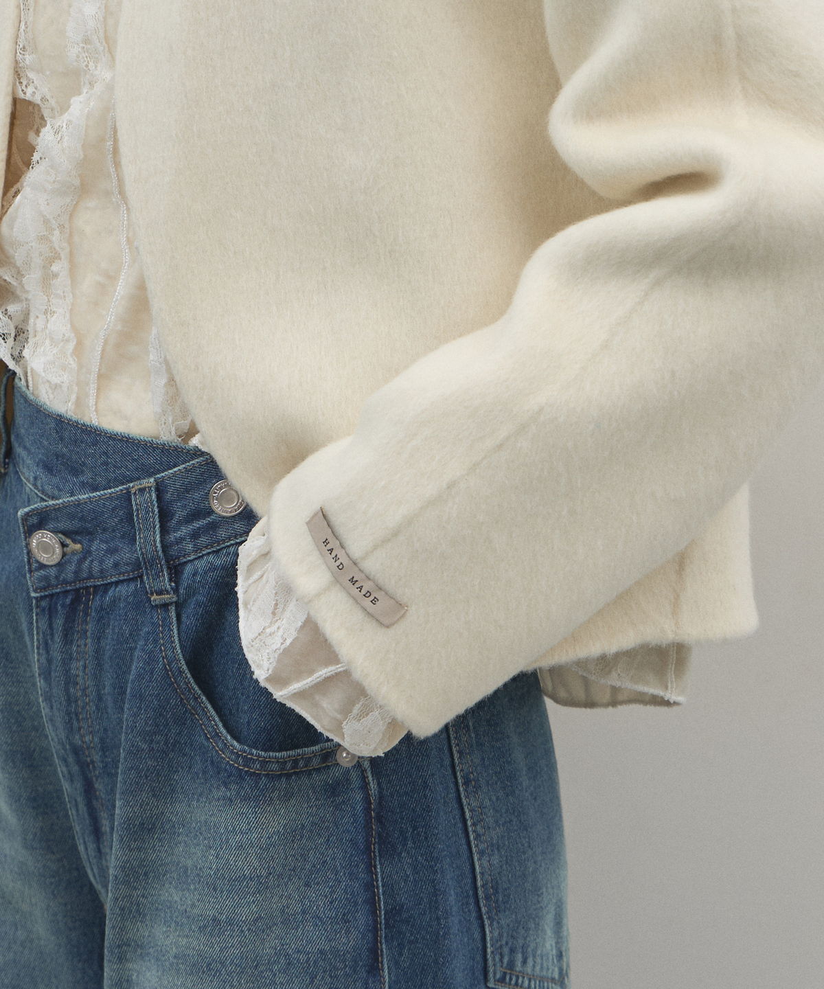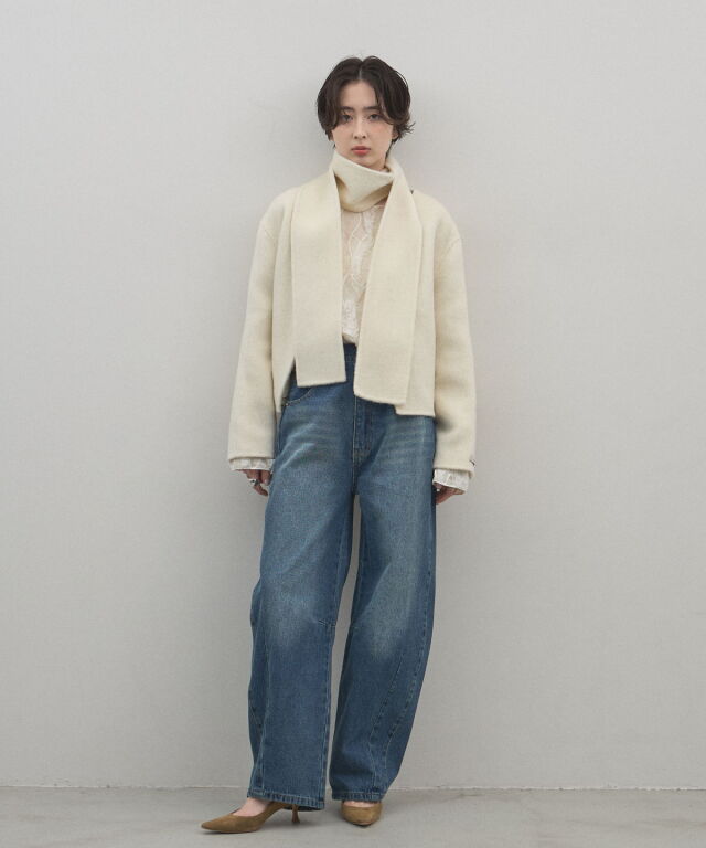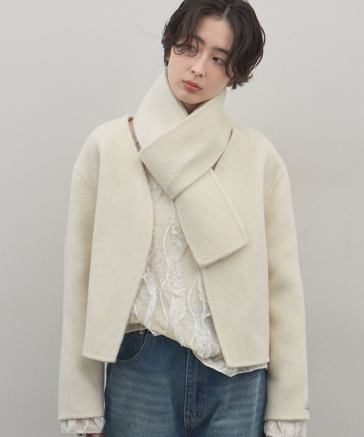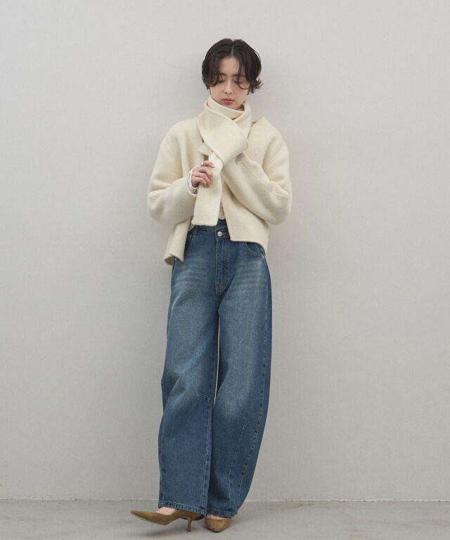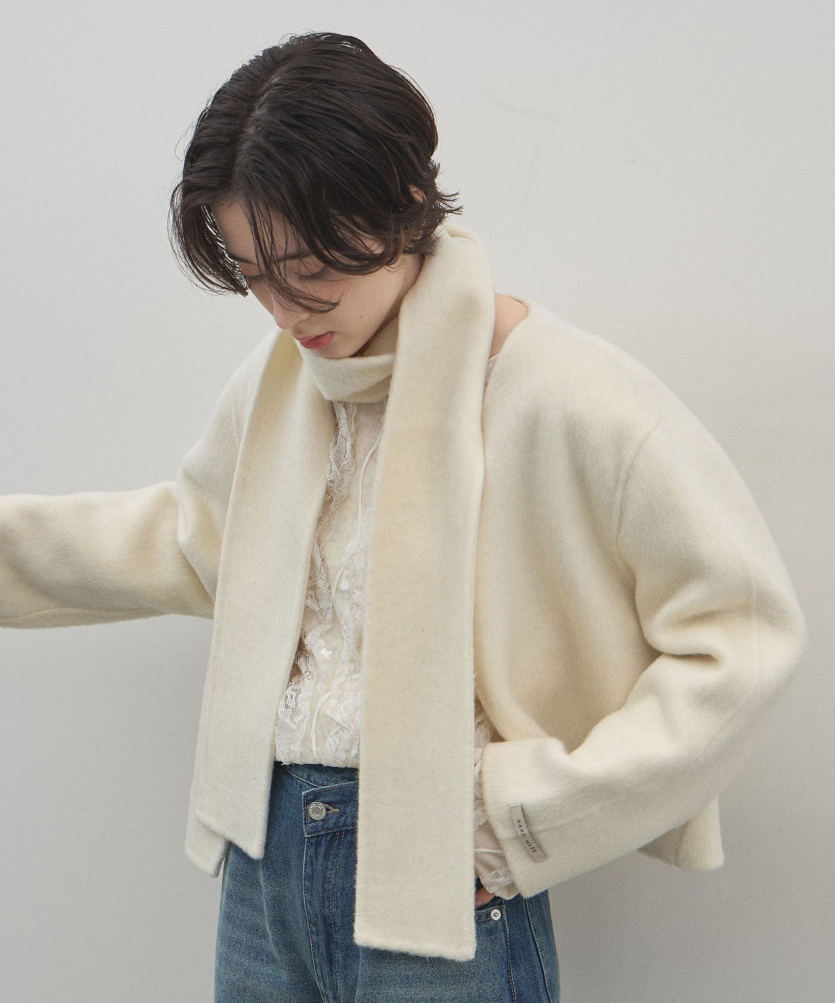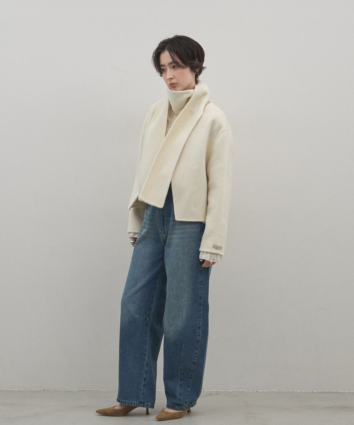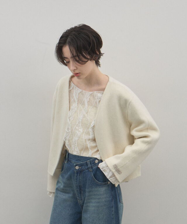 本体/ウール80% アンゴラ10% シルク10% 裏地/ポリエステル100% (中国製・伸縮性あり・透け感なし・裏地なし) |