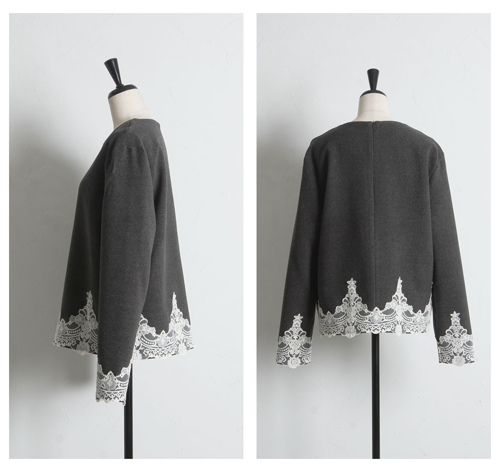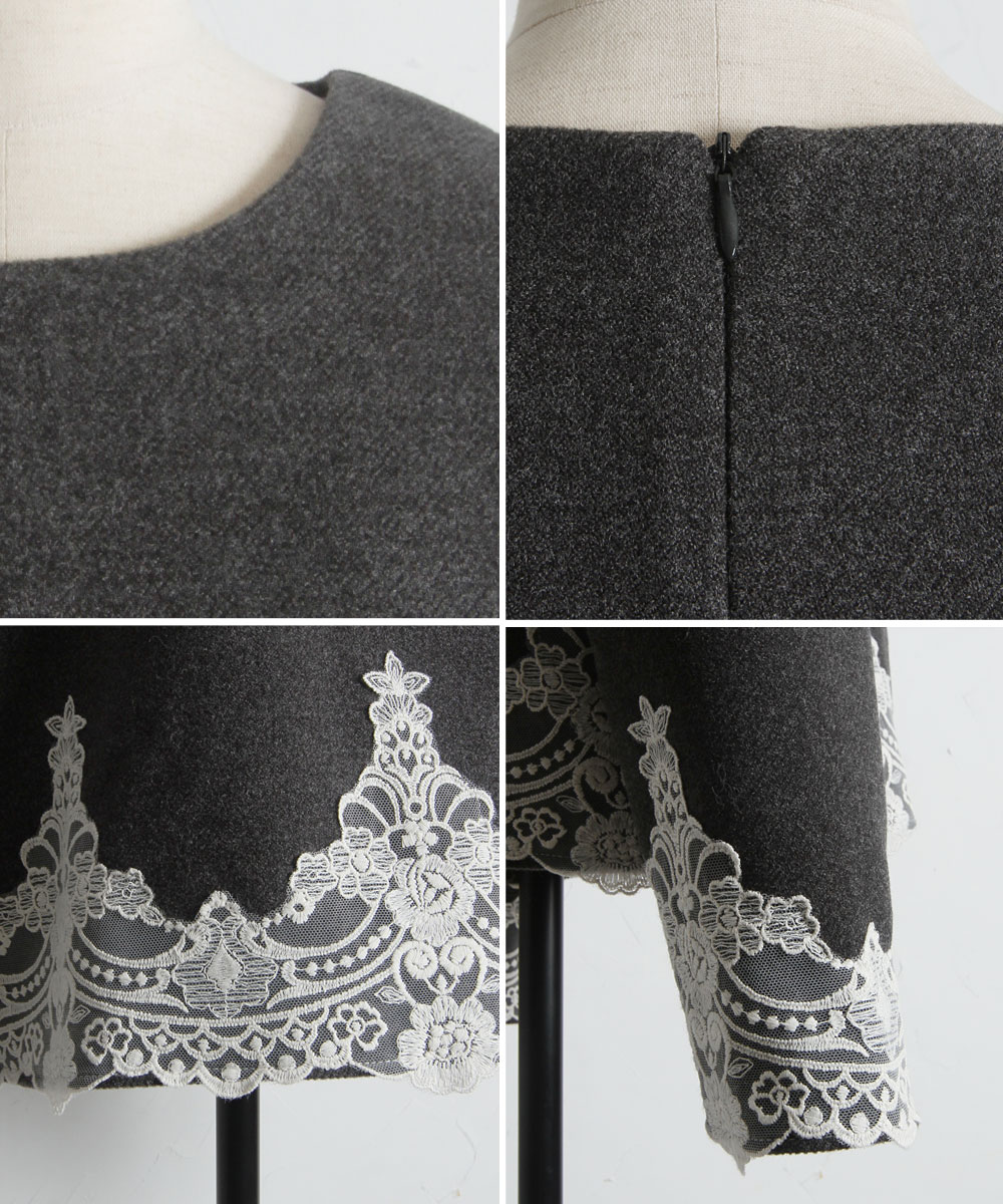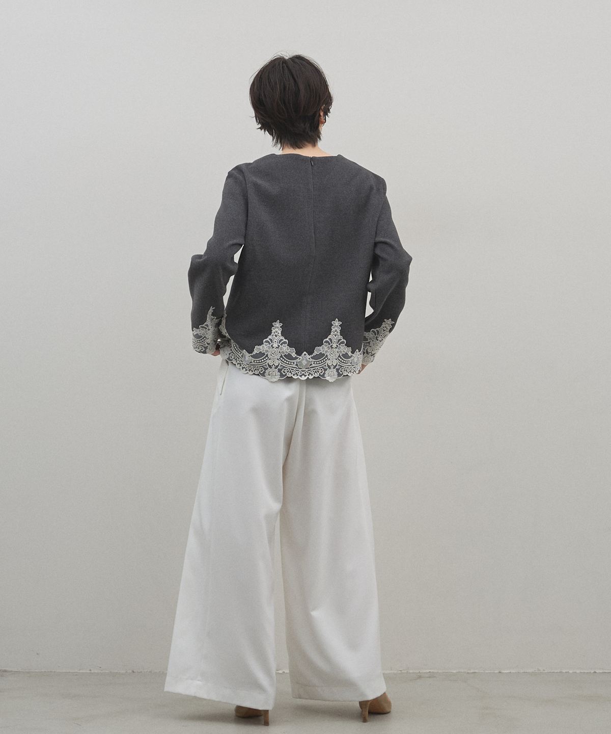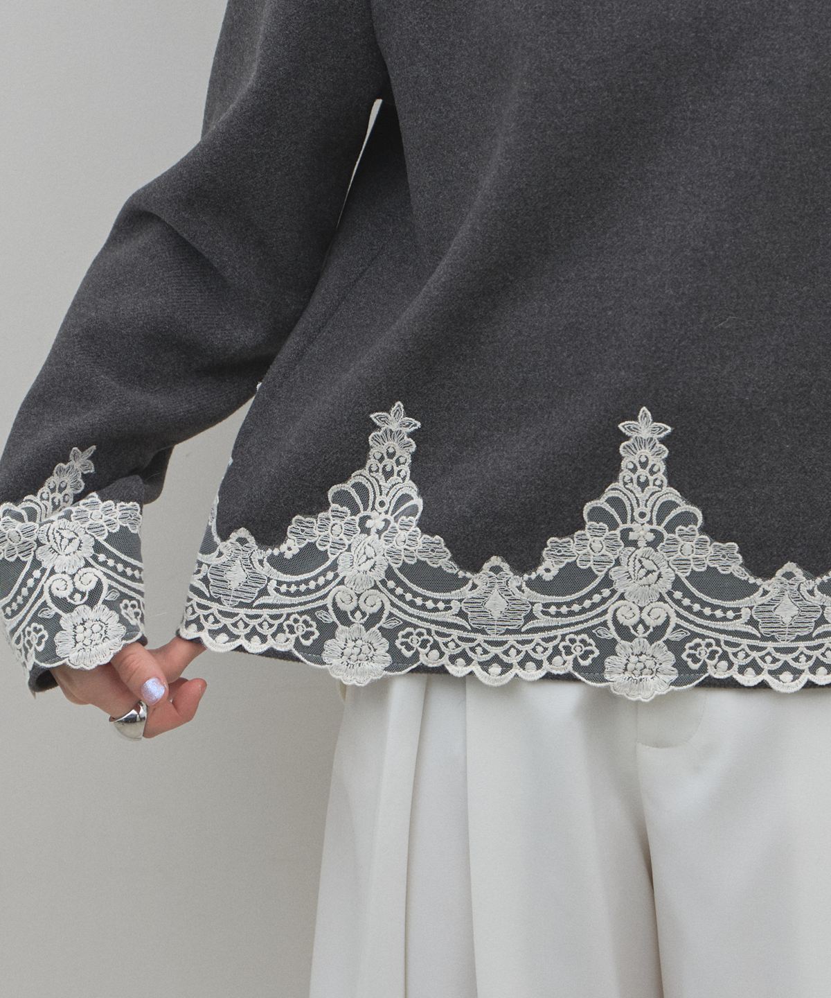 | 商品説明 | : | 日常をクラスアップさせる、静かな華やぎを纏う繊細レースのプルオーバー。 シックなチャコールカラーのボディに、ヴィンテージライクな白レースを贅沢にあしらった一着。 袖口と裾に配された大ぶりのレースが、重たくなりがちな冬の装いに軽やかさと上品な甘さをプラスします。 身幅にゆとりを持たせたボックスシルエットは、体型を拾わずリラックスした着心地を実現。 きれいめなスラックスでモードに、 デニムでカジュアルダウンしても様になります。大人のこだわりを感じさせる、主役級のトップスです。 |