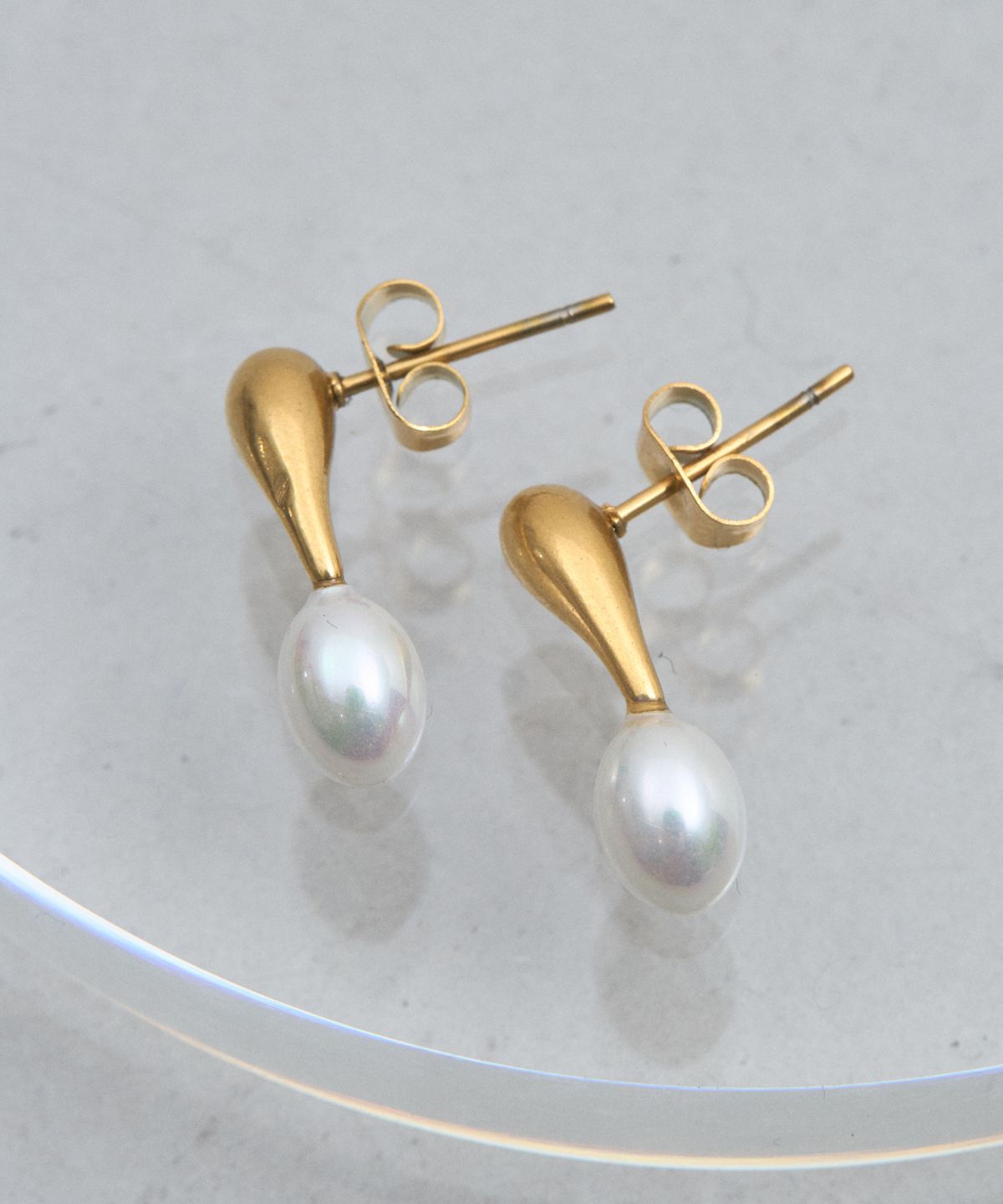 | 商品説明 | : | 横顔に、一粒の光の雫を。表情を優しく照らすドロップパールピアス。 艶やかなパールの雫が耳元で軽やかに揺れる、ノーブルな魅力のドロップピアス。耳に触れる部分には小さなビジューをあしらい、パールの柔らかな光沢にさりげない輝きを添えた、拘りのディテールが光ります。 主張しすぎない絶妙なサイズ感は、カジュアルなボアニットからドレッシーな装いまで、どんなスタイルにも自然にマッチ。動くたびに視線を惹きつける繊細な動きが、日常のコーディネートを品よく、そしてドラマティックに格上げしてくれるタイムレスなアクセサリーです。 |