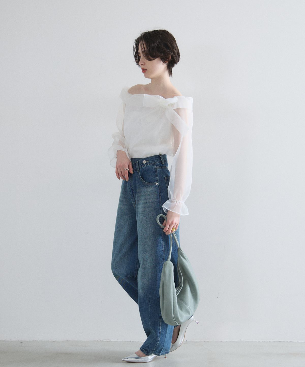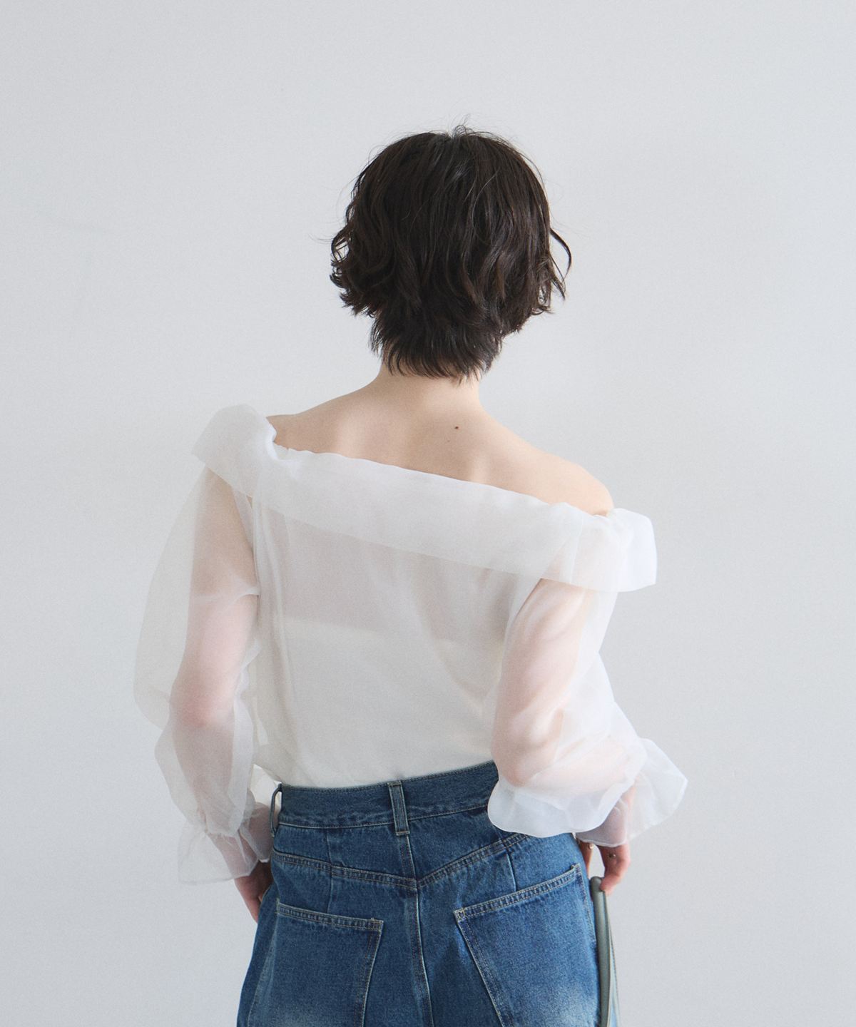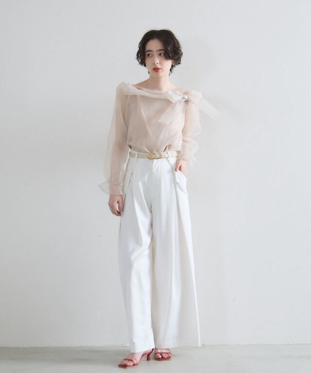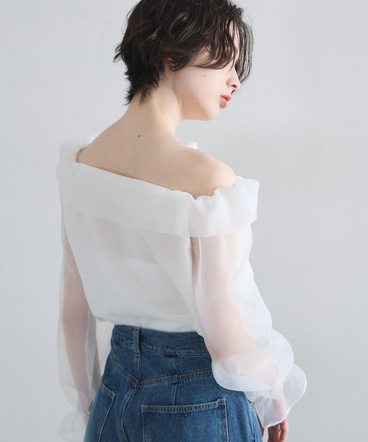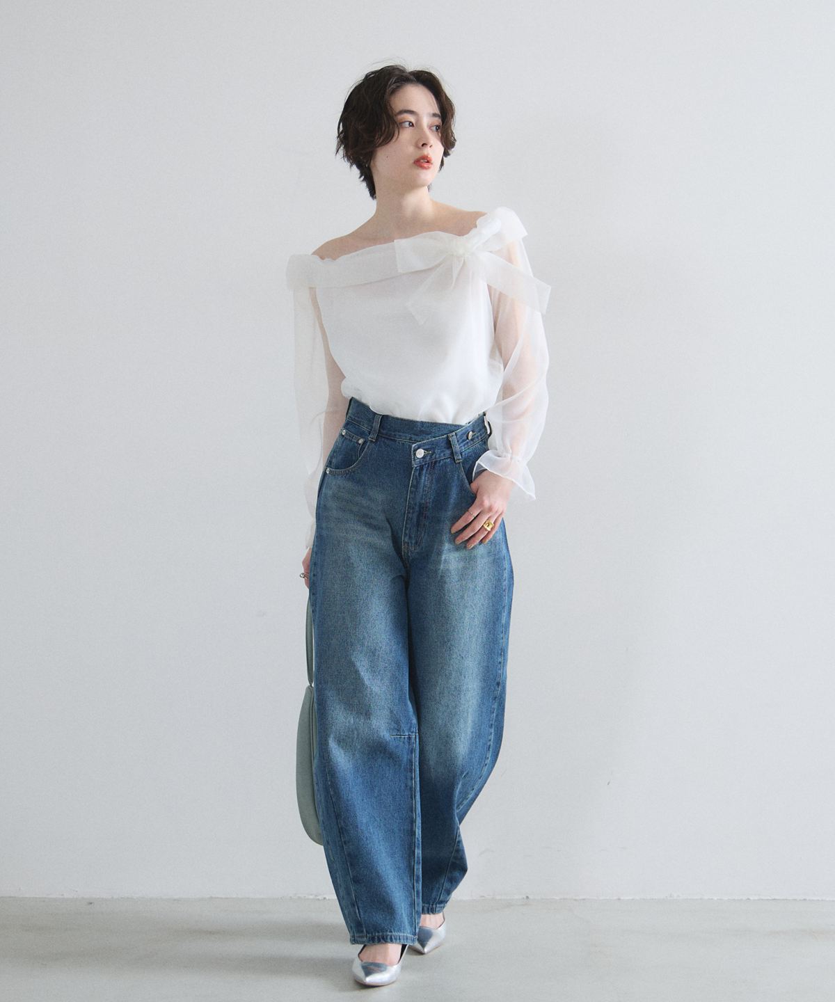 | 商品説明 | : | 大きなリボンが肩先を飾るシフォンオフショルブラウス 柔らかなシアー素材が、動くたびに儚げで美しいニュアンスを放つ一枚。 デコルテを綺麗に見せるオフショルダーのラインと、 肩にあしらわれた大胆なオーガンジーリボンが、特別な日の装いをドラマチックに演出します。 袖口のフリルが手元にまで甘さを添えつつ、デニムと合わせればヘルシーな大人カジュアルに。 軽やかな抜け感と圧倒的な主役級の存在感を兼ね備えた、今季一押しのフェミニンアイテムです。 |