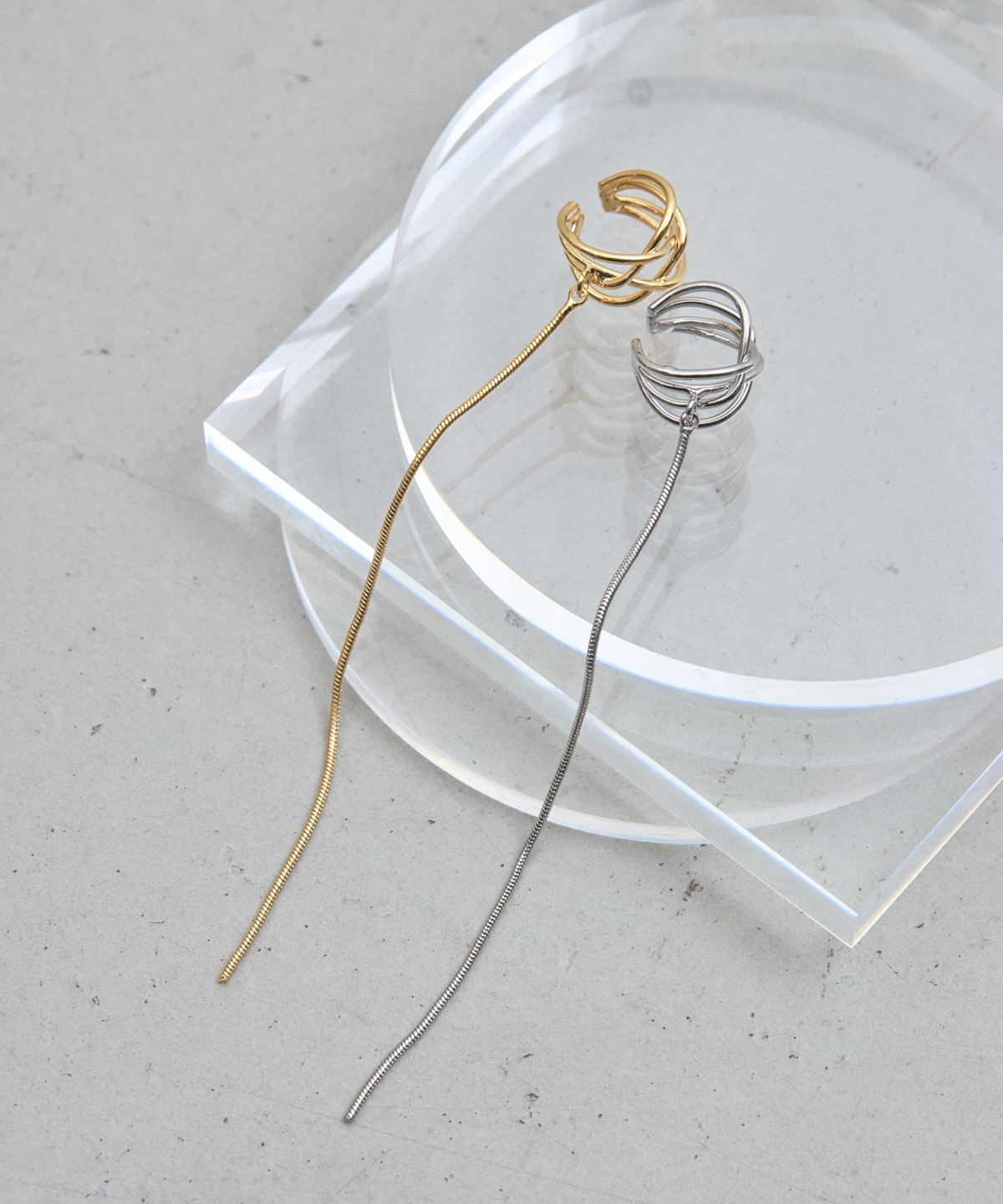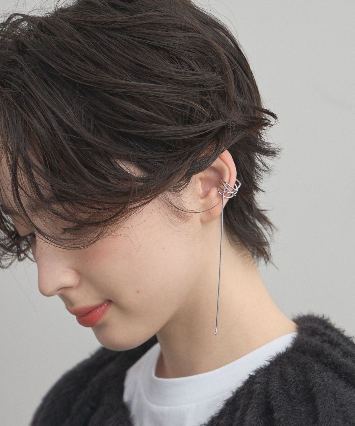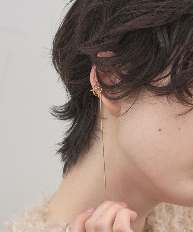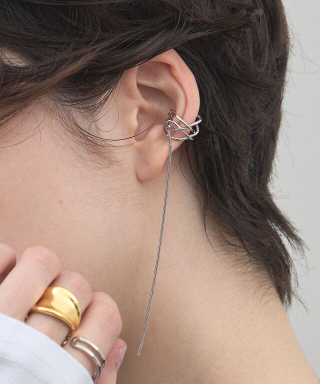 | 商品説明 | : | 耳元から零れ落ちるような煌めき。 横顔にドラマチックな余韻を残す、ロングチェーンイヤーカフ。 繊細に編み込まれたような多層ラインのベースから、しなやかなロングチェーンが美しく伸びるイヤーカフ。 耳元に引っ掛けるだけのストレスフリーな着け心地ながら、 動くたびにチェーンが光を反射し、凛とした華やかさを演出します。 カラーは肌馴染みの良いゴールドと、モードで都会的なシルバーの2色をご用意しました。 お手持ちのピアスやイヤリングとのレイヤードはもちろん、 片耳にアクセントとして取り入れるだけで、いつものスタイリングがぐっとモダンにアップデートされます。 日常からパーティーシーンまで、大人の遊び心をさりげなく主張してくれる逸品です。 |
