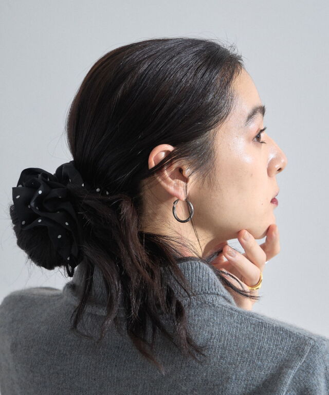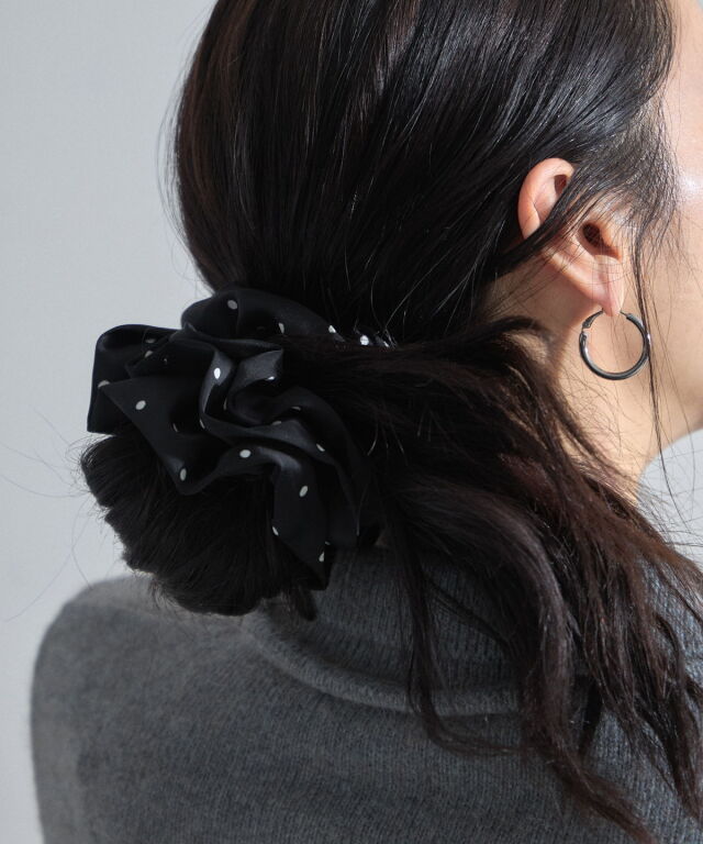 | 商品説明 | : | いつものまとめ髪に、可憐な遊び心を添えるドット柄シュシュ。 クラシカルなポルカドット柄をあしらった、モノトーンのシュシュ。 程よいボリューム感のあるフリルが、シンプルなポニーテールやシニヨンを華やかに彩ります。 なめらかな質感の生地を使用しており、髪への負担が少なく、 デイリー使いからオフィススタイルまで幅広く活躍。 手首につけてもアクセサリー感覚で楽しめる、大人可愛いアイテムです。 |