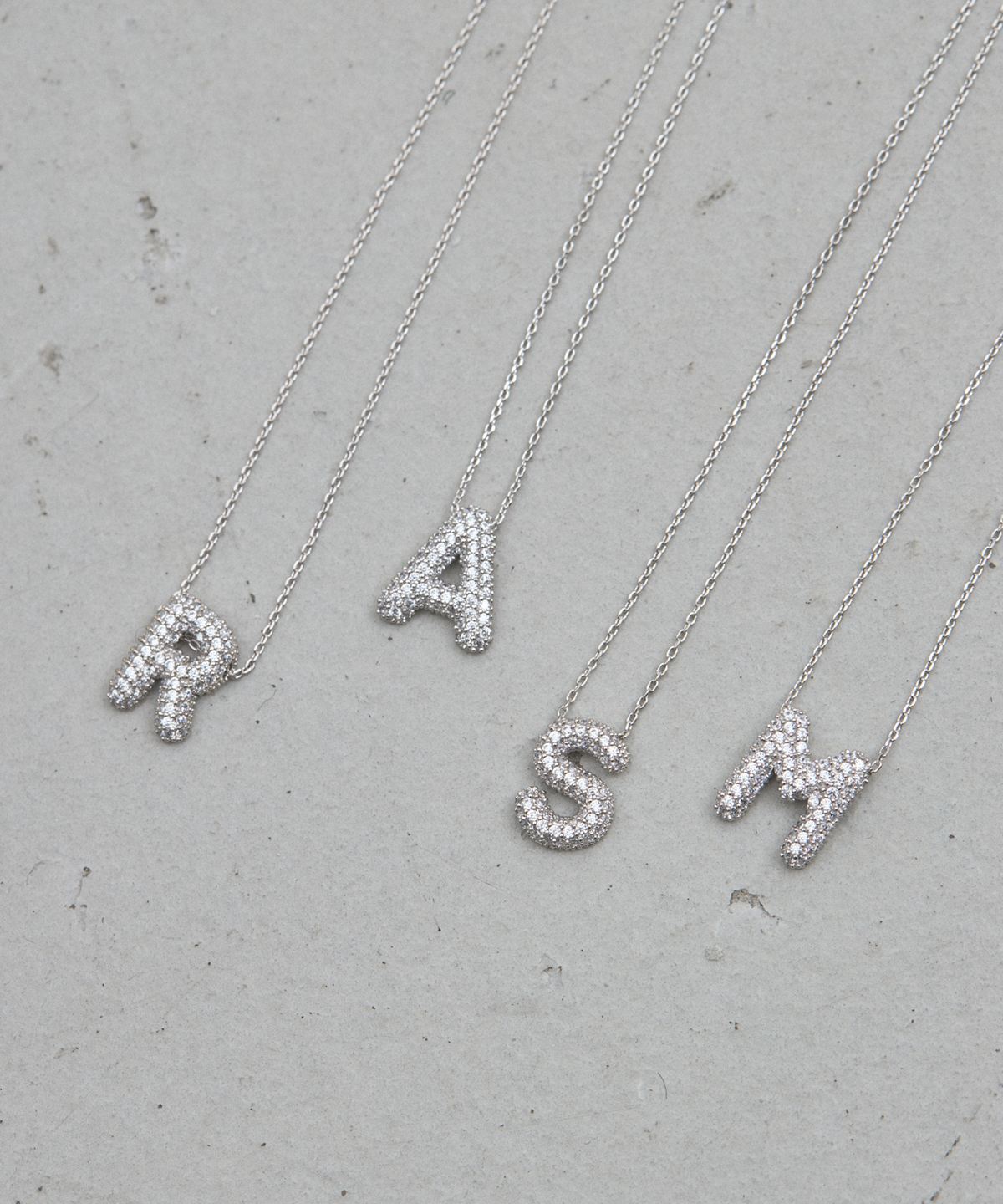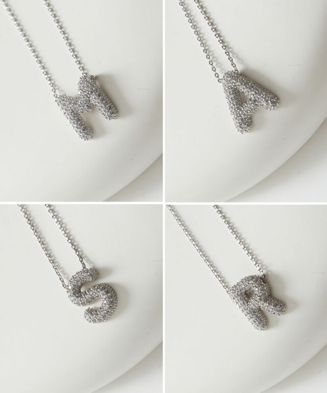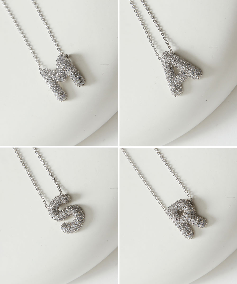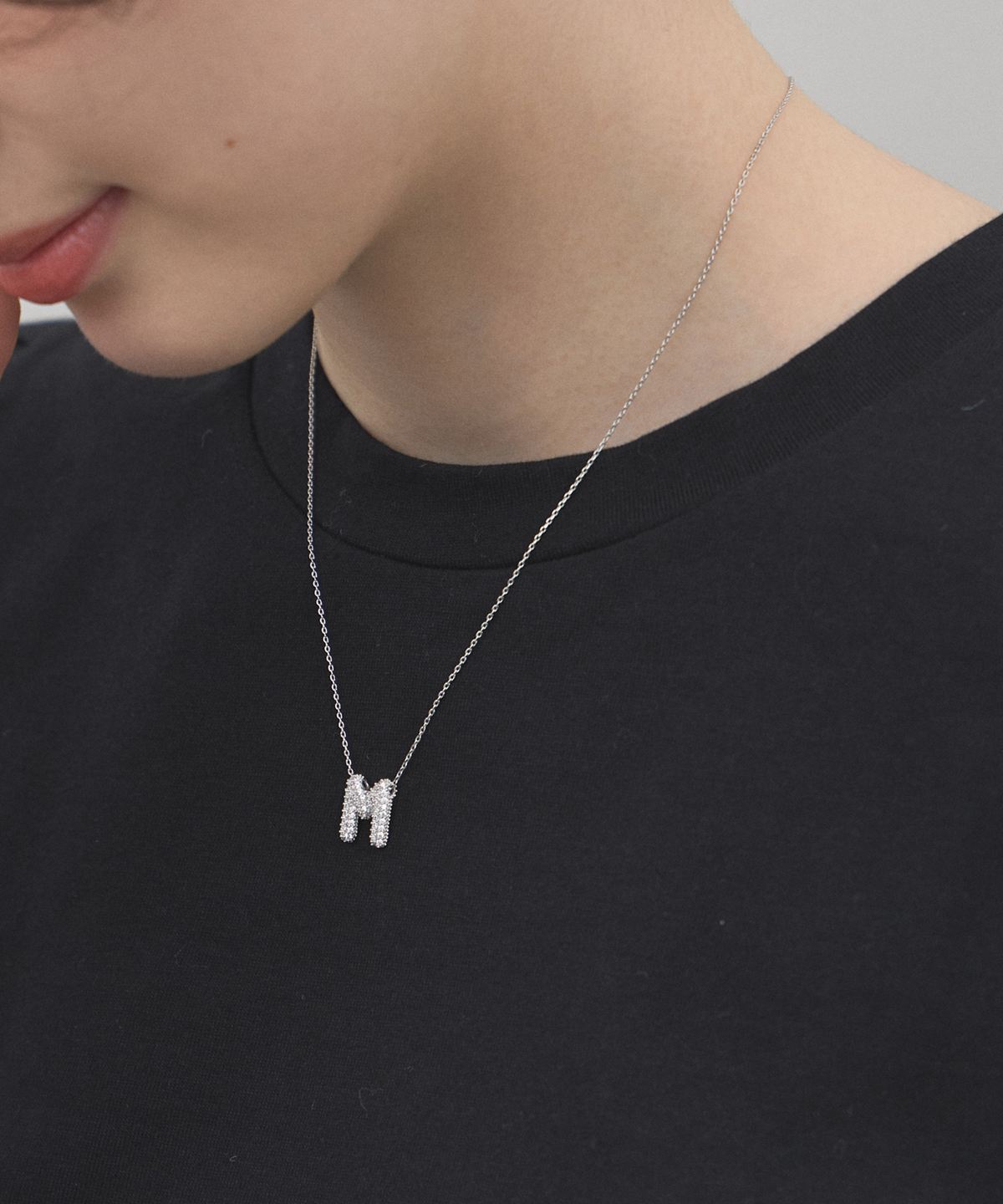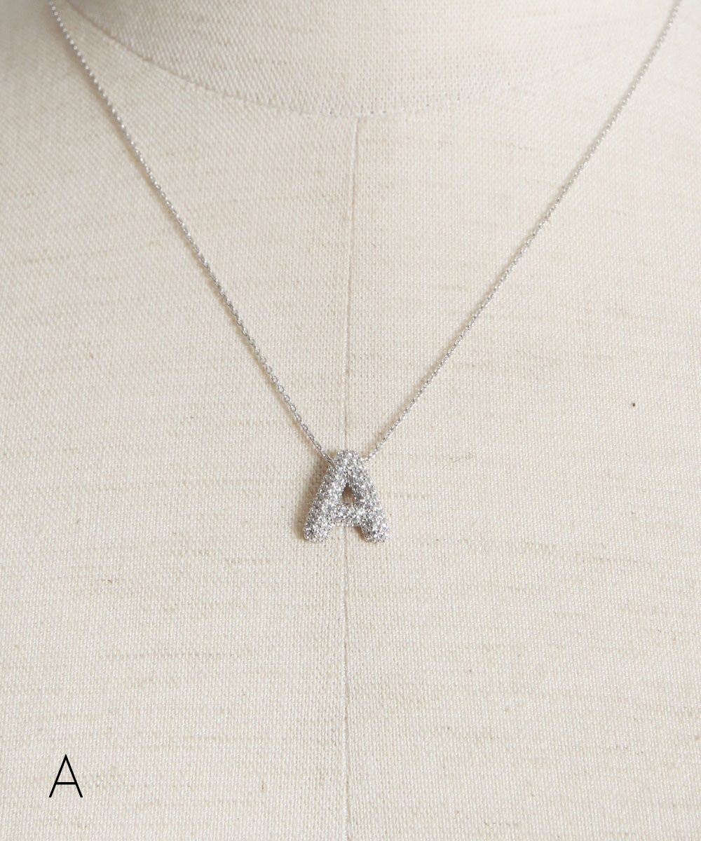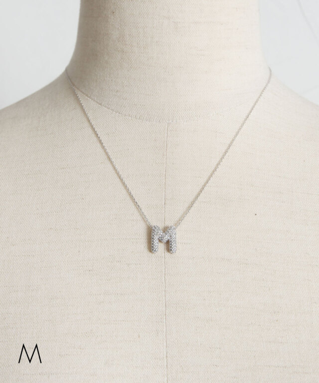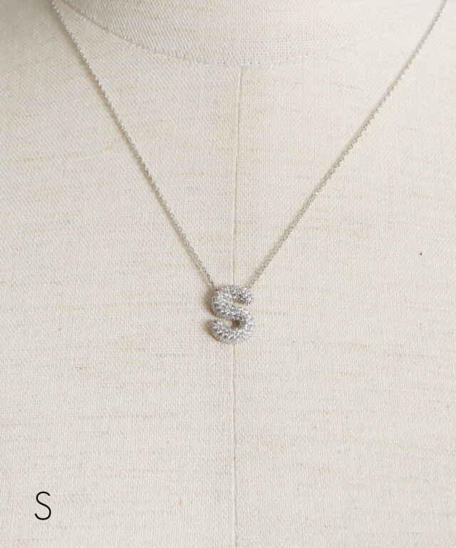 | 商品説明 | : | 自分だけの特別な煌めきを胸元に。遊び心と上品さが同居する、 パヴェイニシャルネックレス。 丸みを帯びたキャッチーなフォントに、輝くビジューを贅沢にパヴェセッティングしたイニシャルネックレス。 程よいボリューム感のある立体的なモチーフが、光を細やかに反射し、デコルテを華やかに彩ります。 繊細なシルバーカラーのチェーンは、どんな装いにもクリーンな印象をプラス。 ご自身のイニシャルはもちろん、大切な方のイニシャルを選んでお守りのように身に着けるのも素敵です。 デイリースタイルのアクセントにはもちろん、ギフトとしても喜ばれること間違いなしの、愛着の湧くアクセサリーです。 |