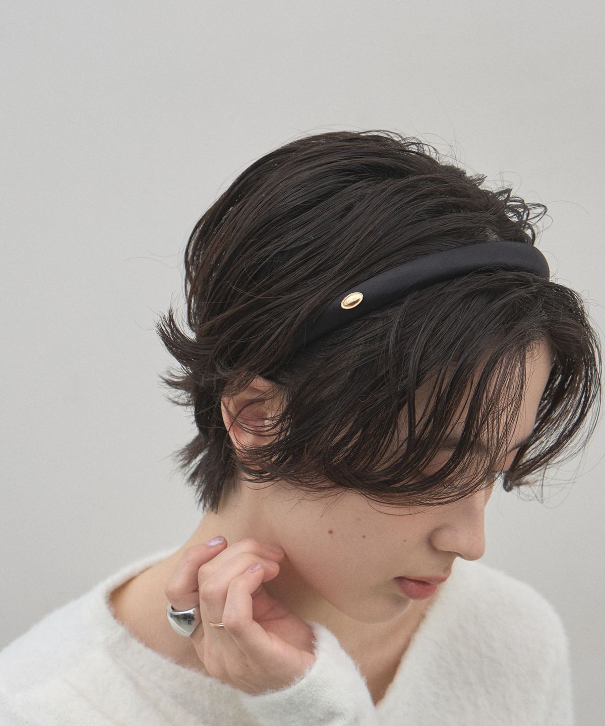 | 商品説明 | : | 日常をクラスアップさせる、静かな気品。横顔を美しく縁取るミニマル・サテンカチューシャ。 控えめな光沢を放つサテン調の生地を贅沢に使用した、シンプルながらも存在感のあるカチューシャ。 サイドにさりげなく配されたゴールドのオーバルプレートが、 クラシックで洗練されたアクセントを添えてくれます。 程よい厚みがあるため、つけるだけでヘアスタイルに立体感が生まれ、 小顔効果も期待できます。カジュアルなデニムスタイルから、オケージョンシーンのまとめ髪まで、どんな装いも品良く引き締めてくれる、ワードローブに欠かせない一点です。 |