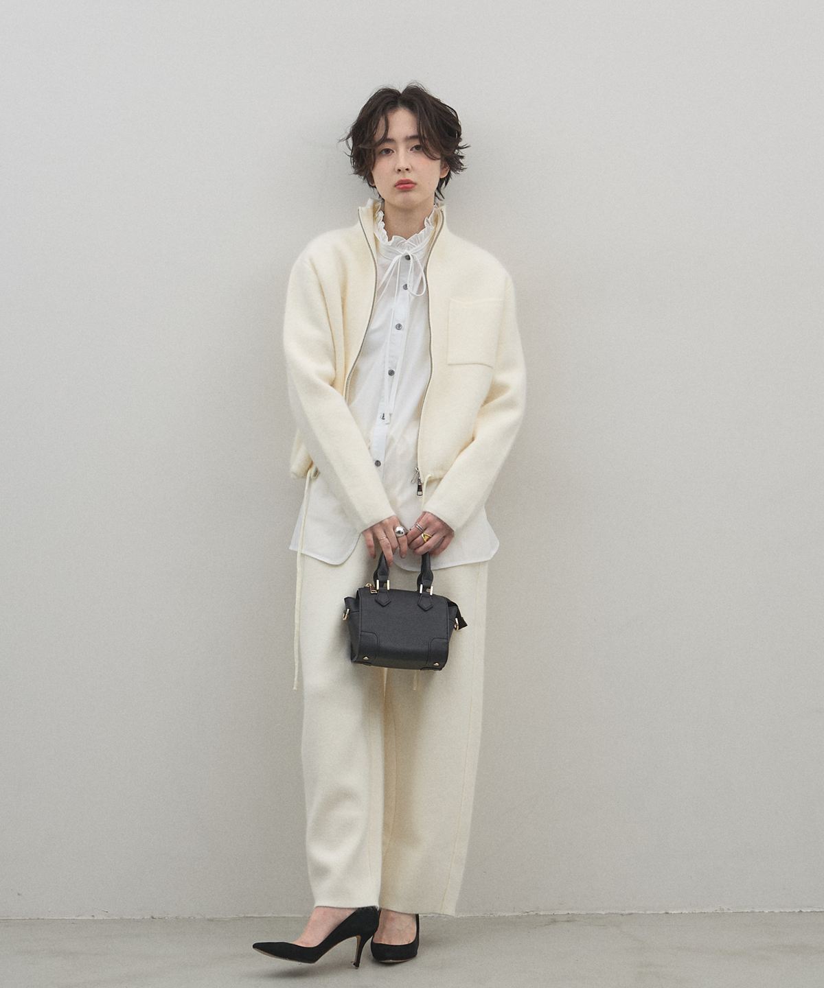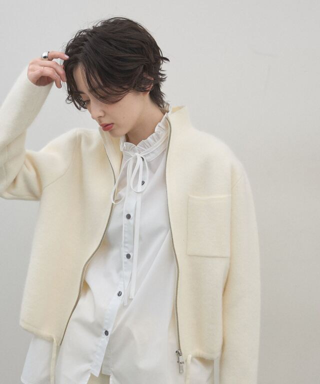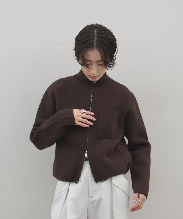 | 商品説明 | : | 日常をクラスアップさせる、ミニマルを極めたウールジップブルゾン。 洗練された色彩と、ウール特有のふっくらとした肉厚な質感が目を惹くジップアップブルゾン。 無駄を削ぎ落としたミニマルなデザインながら、 立ち上がりの良いスタンドカラーと程よいボリューム袖が、羽織るだけでモダンな立体感を演出します。 同素材のパンツと合わせたセットアップスタイルなら、統一感のある洗練されたモードな装いが即座に完成。 コンパクトな着丈はワイドパンツとも相性が良く、カジュアルなロゴTシャツからクリーンなシャツまで、合わせるインナーを選びません。 秋口のアウターとしてはもちろん、冬場のコートのインナーとしても重宝する、大人のワードローブに欠かせない一着です。 |