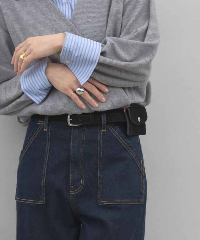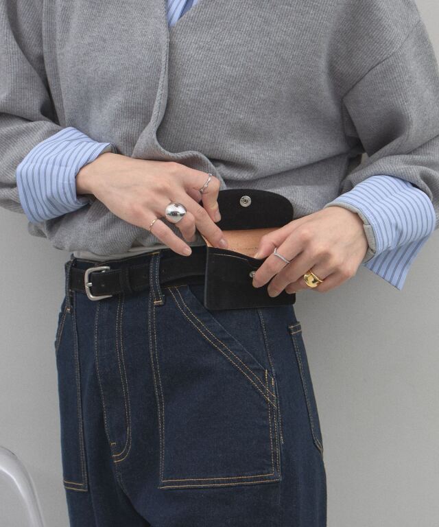 | 商品説明 | : | 洗練をウエストに。装いをモダンに引き締める、スエード調ミニベルトポーチ。 無駄を削ぎ落としたミニマルなデザインが、都会的なムードを放つブラックのベルトポーチ。 マットな質感のスエード調素材を使用し、シルバーのボタンがクールなアクセントを添える、大人のためのアクセサリーバッグです。 シャツやデニムといった定番スタイルに投入するだけで、 シルエットにメリハリが生まれ、一気にこなれた表情に。 ハンズフリーで軽やかに動きたいデイリーシーンから、 スタイリングの鮮度を上げたい特別な日まで、ジャンルを問わず活躍します。 ブラックならではの汎用性の高さで、ワードローブに欠かせないスパイスとなるはずです。 |