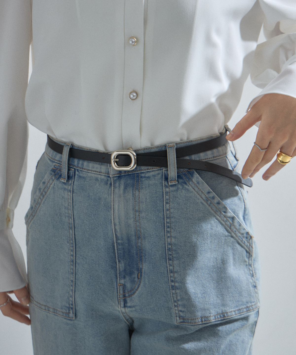 | 商品説明 | : | ウエストマークでスタイルアップ。洗練されたミニマルデザインのナローベルト。 オンオフ問わず活躍する、装飾を抑えたシンプルなナローベルト。 丸みのあるバックルが、コーディネートにさりげない上品さとモダンなアクセントをプラスします。 細身のシルエットなので、デニムのカジュアルアップはもちろん、 ワンピースやブラウスのウエストマークにも最適。 スタイルを邪魔せず、全身のバランスをすっきりと整えてくれる、 一本は持っておきたい万能なベーシックアイテムです。 |