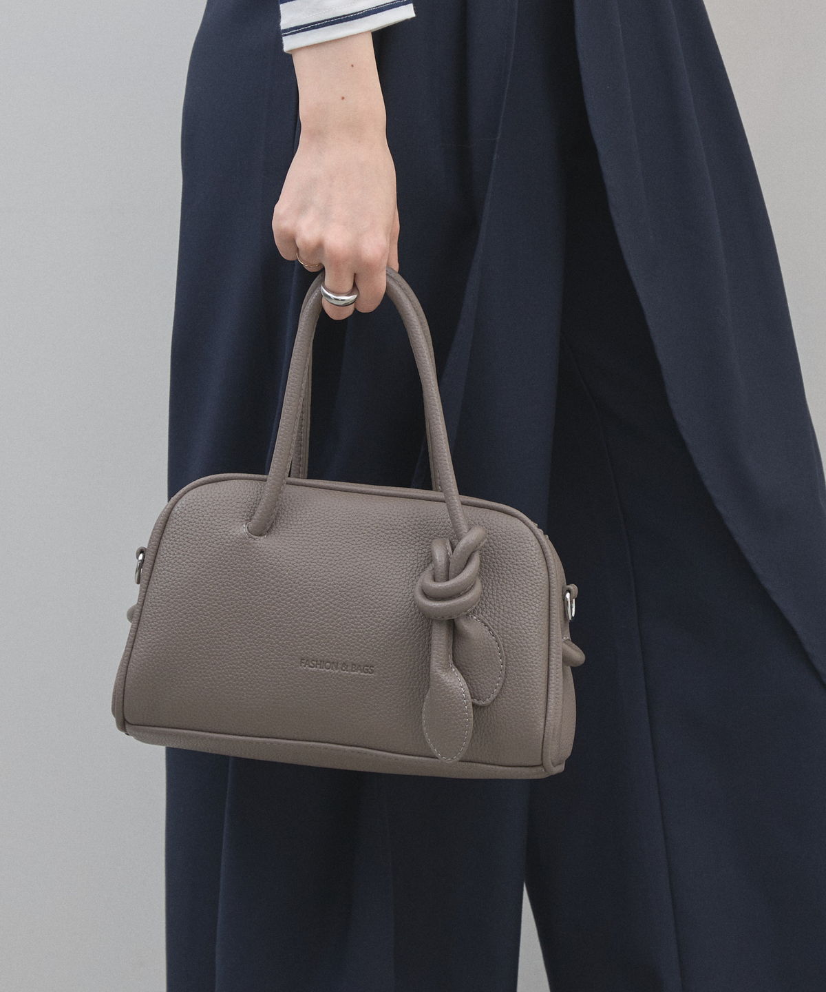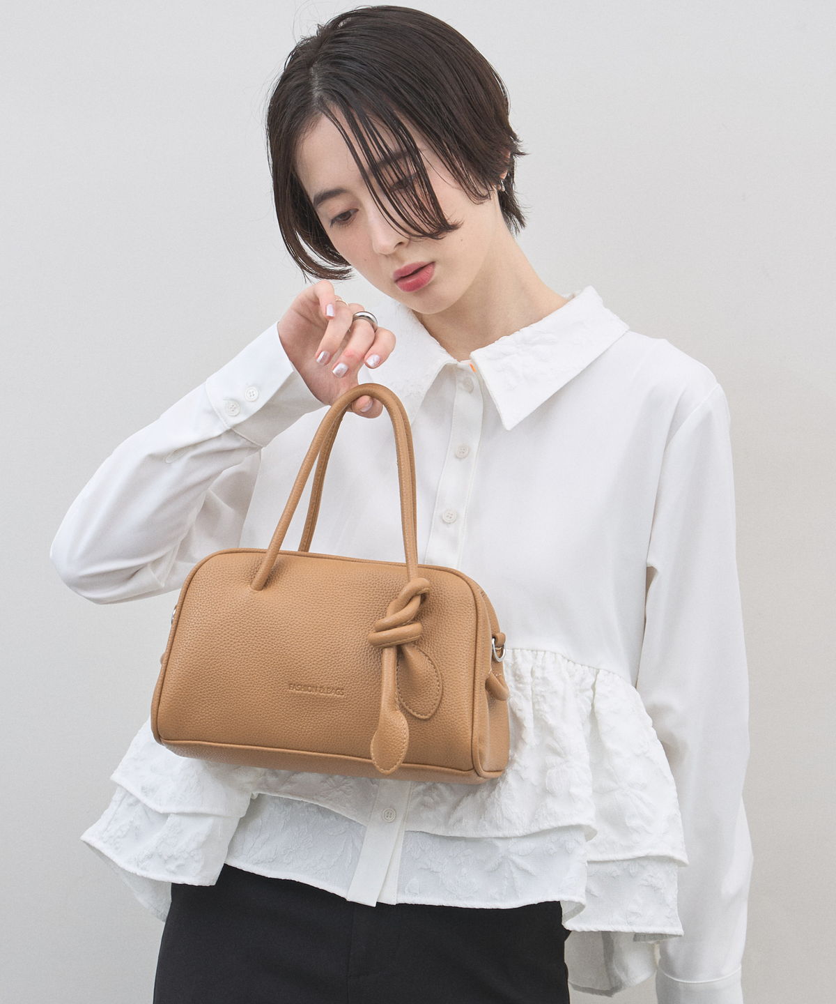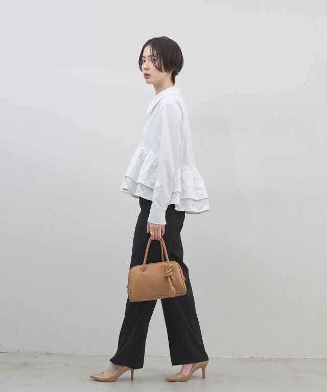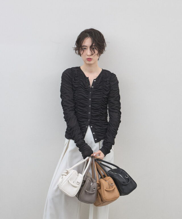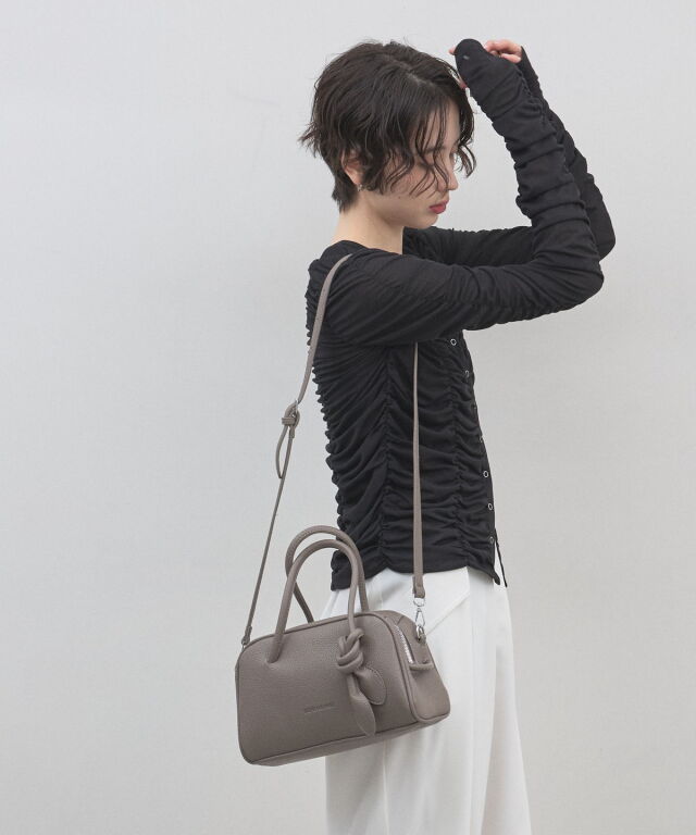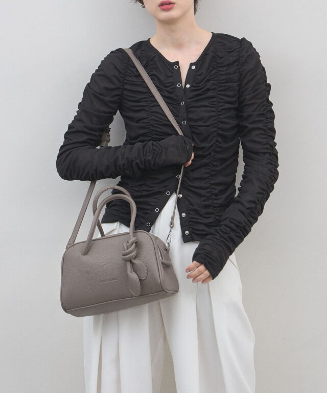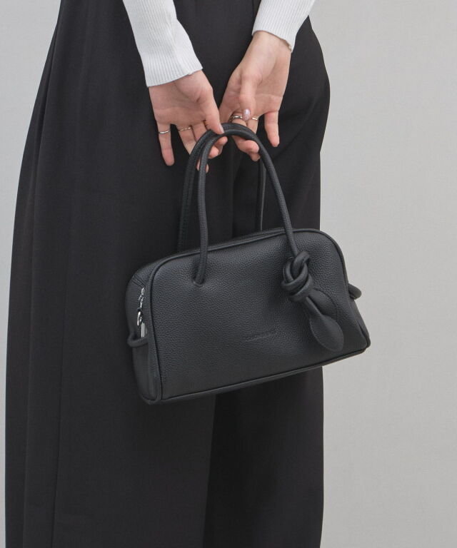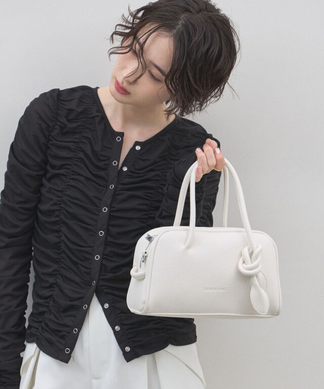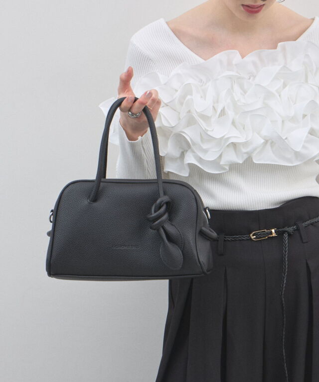 | 商品説明 | : | ミニマルな形に、遊び心を結んで。 装いをクラスアップする、大人のミニボストン。 柔らかなシボ感のある素材と、端正なボストンシルエットが調和した、洗練のミニバッグ。 持ち手部分にあしらわれた大胆なノット(結び目)デザインが、 シンプルなルックスに現代的なエッセンスと程よい抜け感をプラスします。 コンパクトなサイズ感ながら、広めのマチで見た目以上の収納力を備えており、 デイリーからお出かけまで幅広く活躍します。モードなトップスと合わせれば、 パッと目を惹くトレンド感が生まれ、洗練された大人のスタイルが完成します。 |