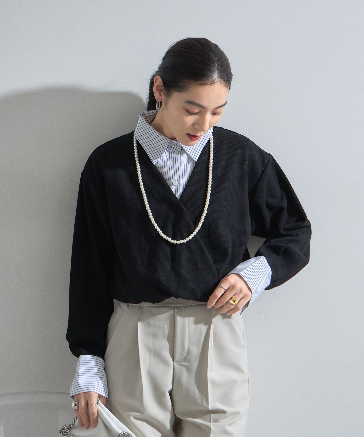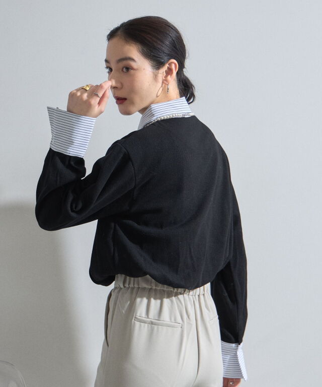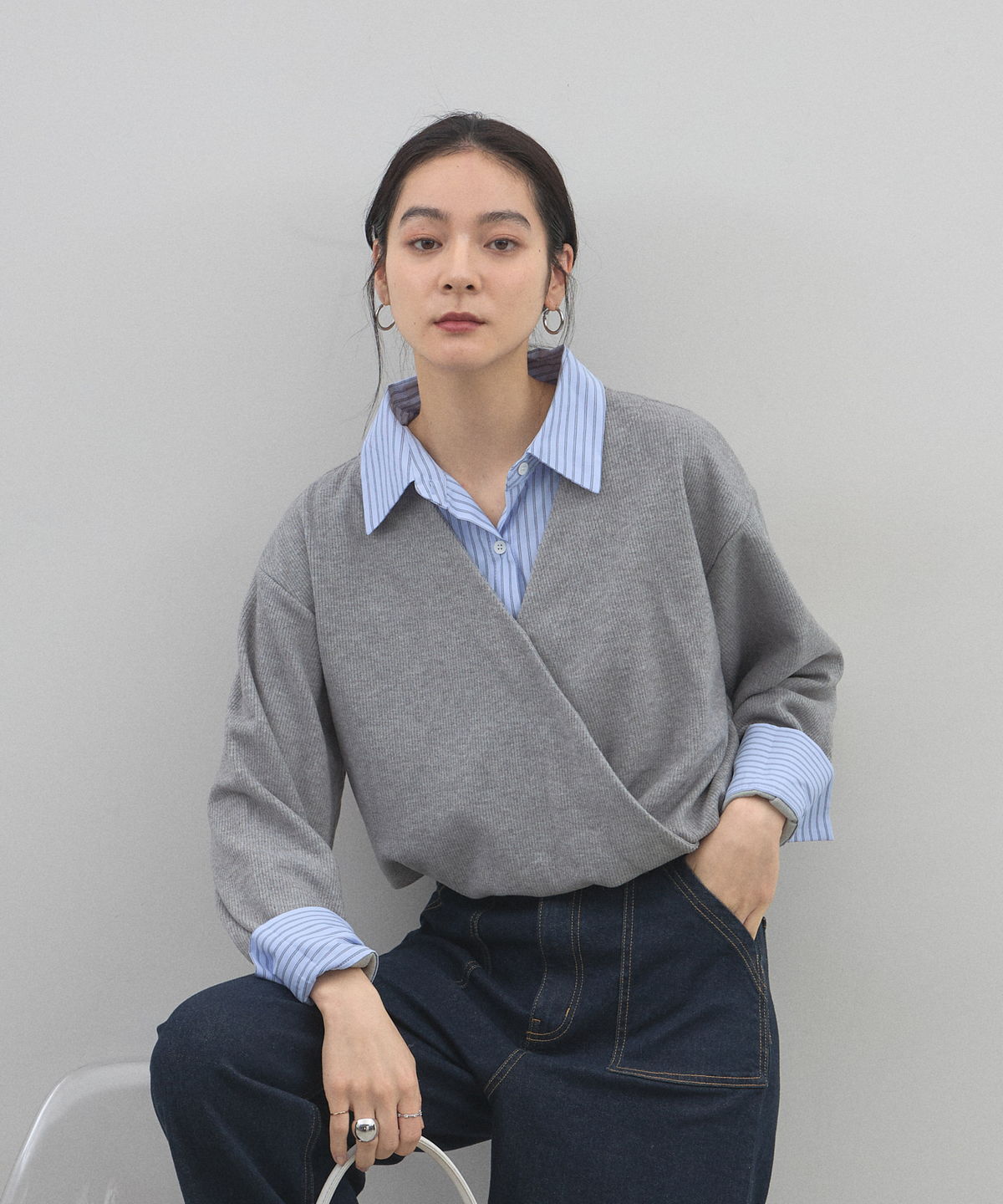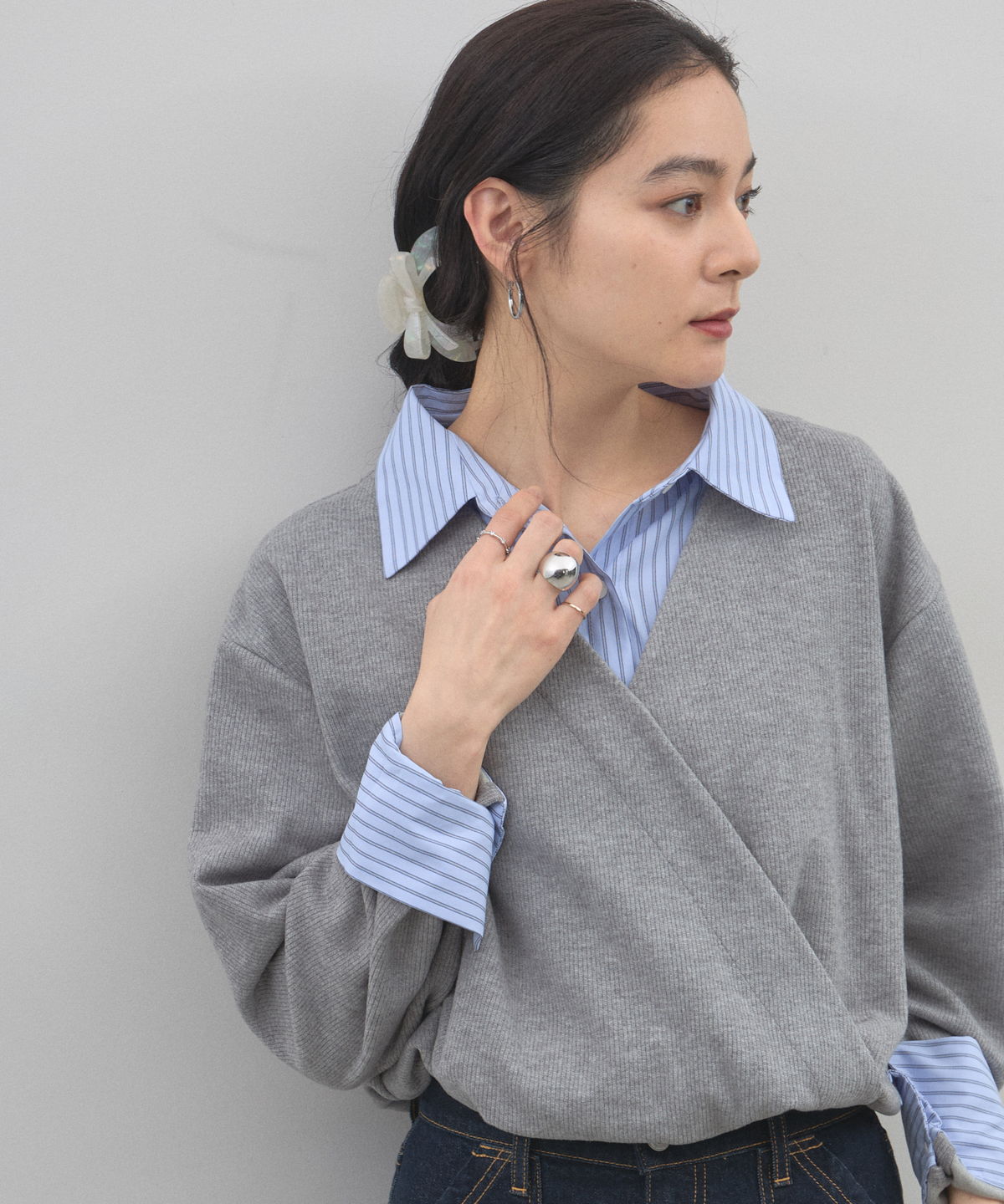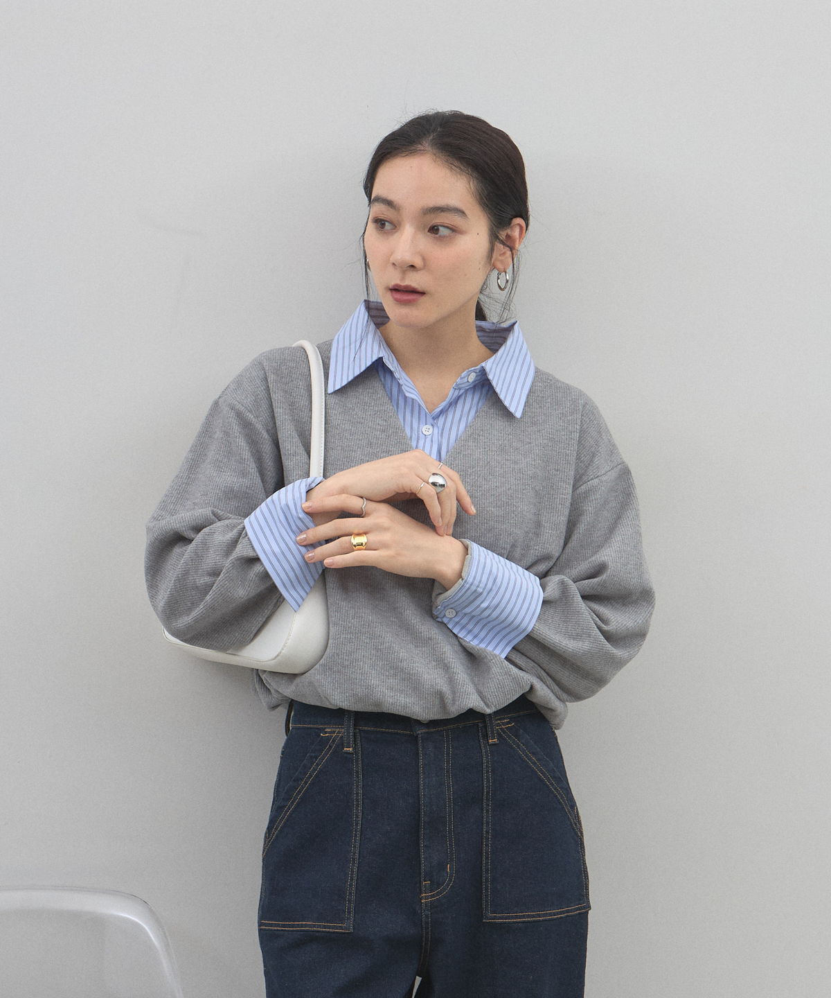 | 商品説明 | : | これ一枚で「映える」レイヤード。知的なシャツ襟が覗く、大人のドッキングプルオーバー。 シャツを重ねたようなこなれ感が一瞬で手に入る、ドッキングデザインのニット。 深めのVネックラインがデコルテをすっきり見せ、 ストライプ柄の襟元が顔まわりに知的なアクセントを添えます。 程よいボリューム袖とカシュクール風のシルエットが、 女性らしい柔らかな表情を演出します。 |
