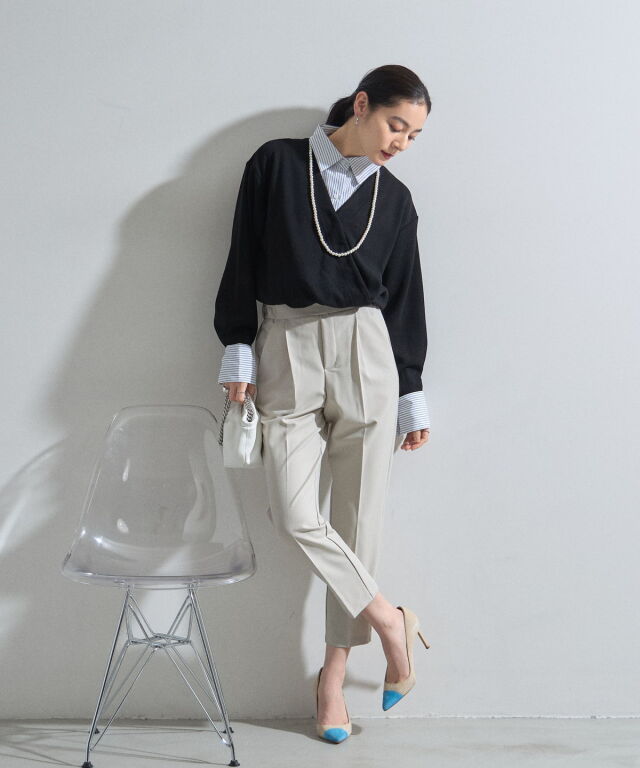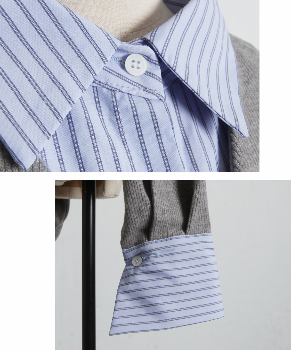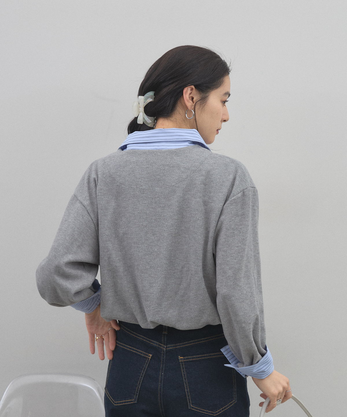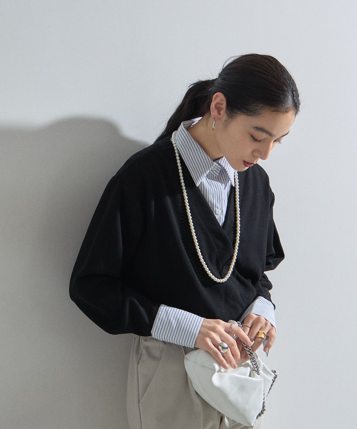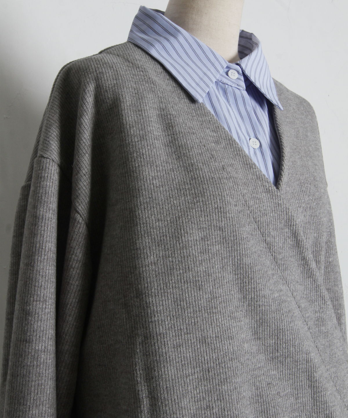 | 商品説明 | : | これ一枚で「映える」レイヤード。知的なシャツ襟が覗く、大人のドッキングプルオーバー。 シャツを重ねたようなこなれ感が一瞬で手に入る、ドッキングデザインのニット。 深めのVネックラインがデコルテをすっきり見せ、 ストライプ柄の襟元が顔まわりに知的なアクセントを添えます。 程よいボリューム袖とカシュクール風のシルエットが、 女性らしい柔らかな表情を演出します。 |