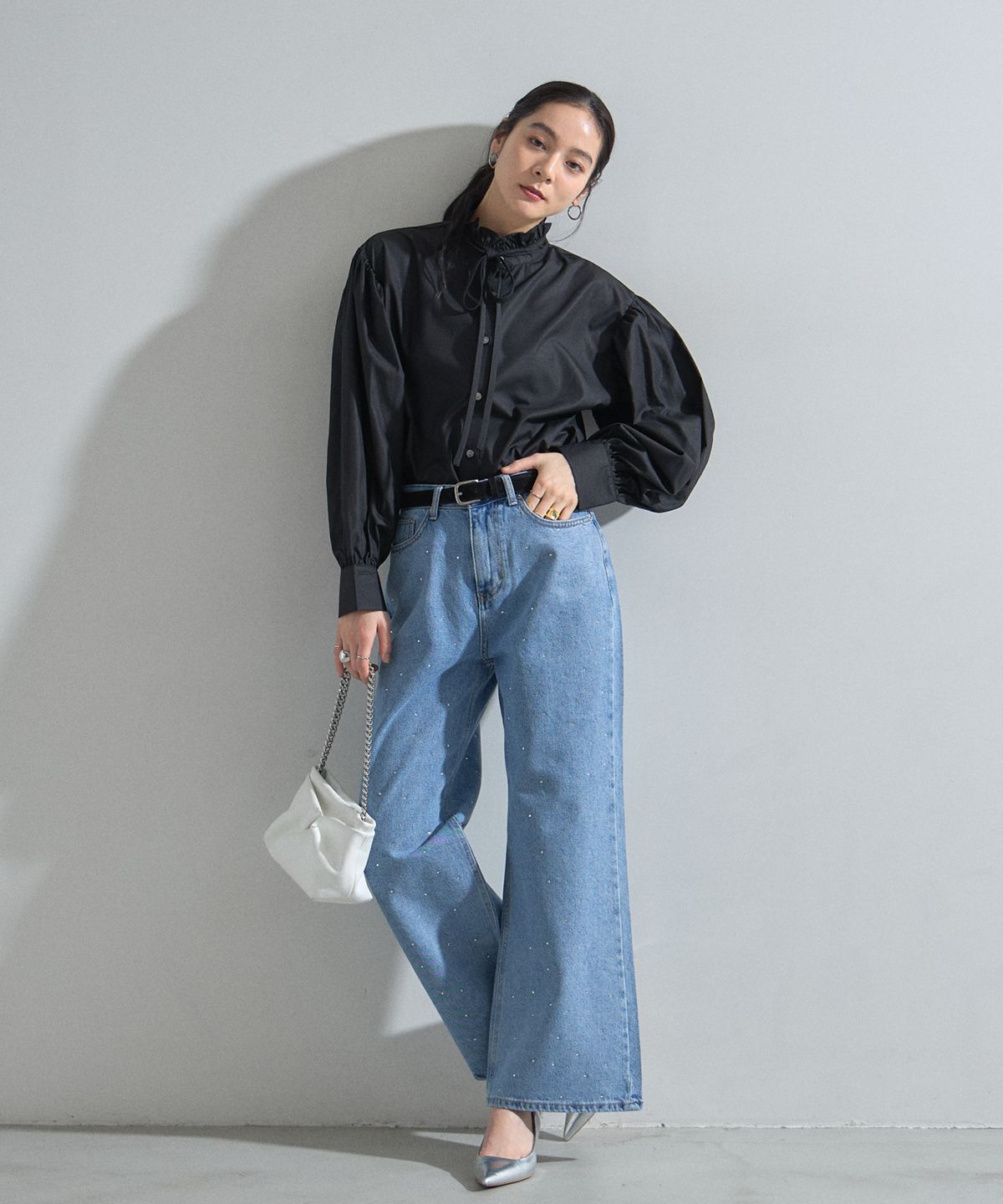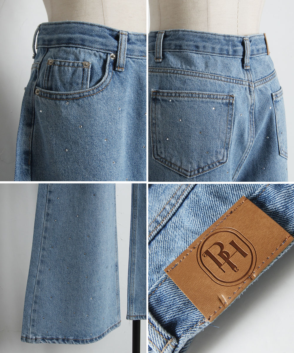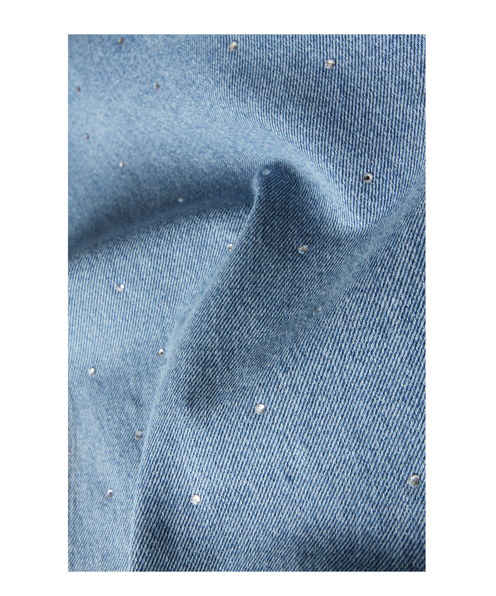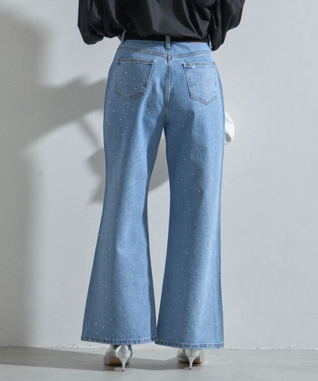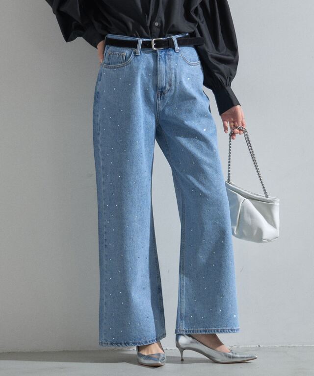 | 商品説明 | : | 大人の遊び心溢れるラインストーンデニム。 全体に散りばめられた小粒のラインストーンが、動くたびに繊細な輝きを放つ主役級の一本。 程よいゆとりのあるストレートワイドシルエットが、脚のラインを拾わずスタイルアップを叶えます。 ヴィンテージライクな淡色デニムに煌めきをプラスした、 カジュアルさと上品さを兼ね備えた最旬アイテムです。 |