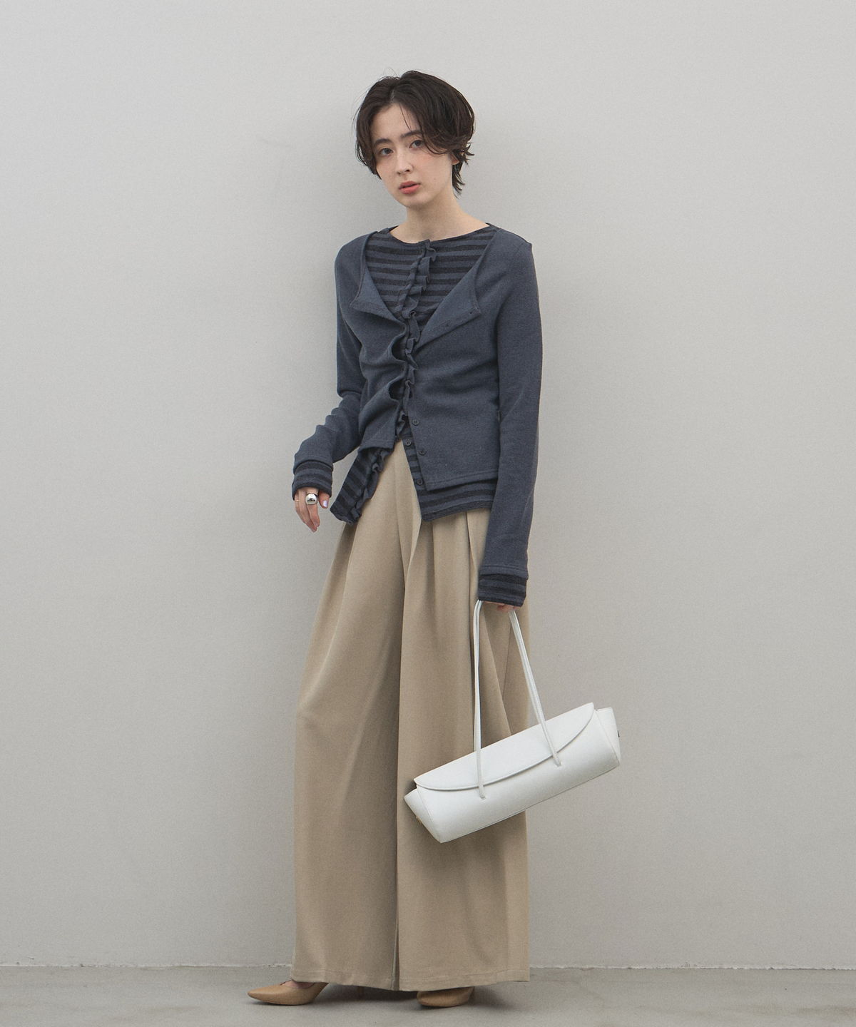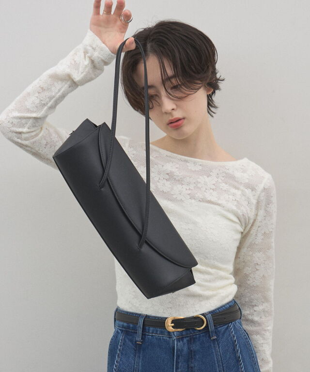 | 商品説明 | : | 横長フォルムが描く、一歩先を行くモダン・エレガンス。 今季注目の横長シルエットを、削ぎ落とされたミニマルなデザインに昇華。無駄のないシャープなフォルムと、繊細なロングハンドルのバランスが、持つだけで都会的なこなれ感を演出します。 フラップの緩やかなカーブが、モダンさの中に女性らしい柔らかさをプラス。肩掛けした際もすっきりと収まりが良く、スマートな立ち姿を叶えます。モードなセットアップから、デニムを格上げするアクセントまで。日常の何気ないシーンを、研ぎ澄まされたスタイルへと変える主役級バッグです。 |