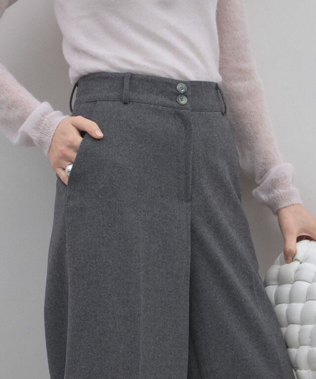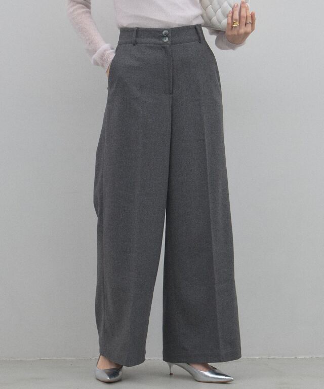 | 商品説明 | : | 品よく、心地よく。美シルエットを叶える大人のワイドパンツ。 ハンサムな佇まいの中にも、女性らしい柔らかさを感じさせる絶妙なセミワイドシルエット。 センタープレスが縦のラインを強調し、 フラットシューズやヒールを合わせるだけで、スタイルアップした理想的な立ち姿へと導きます。 落ち着いたトーンのグレーは、淡いカラーのトップスとも相性抜群。 ウエスト周りはダブルボタンのディテールがアクセントになり、 トップスをインしてもすっきりと洗練された印象に。 オンシーンのジャケパンスタイルから、休日のリラックスした着こなしまで、 シーンを選ばず頼れる万能な一本です。 |