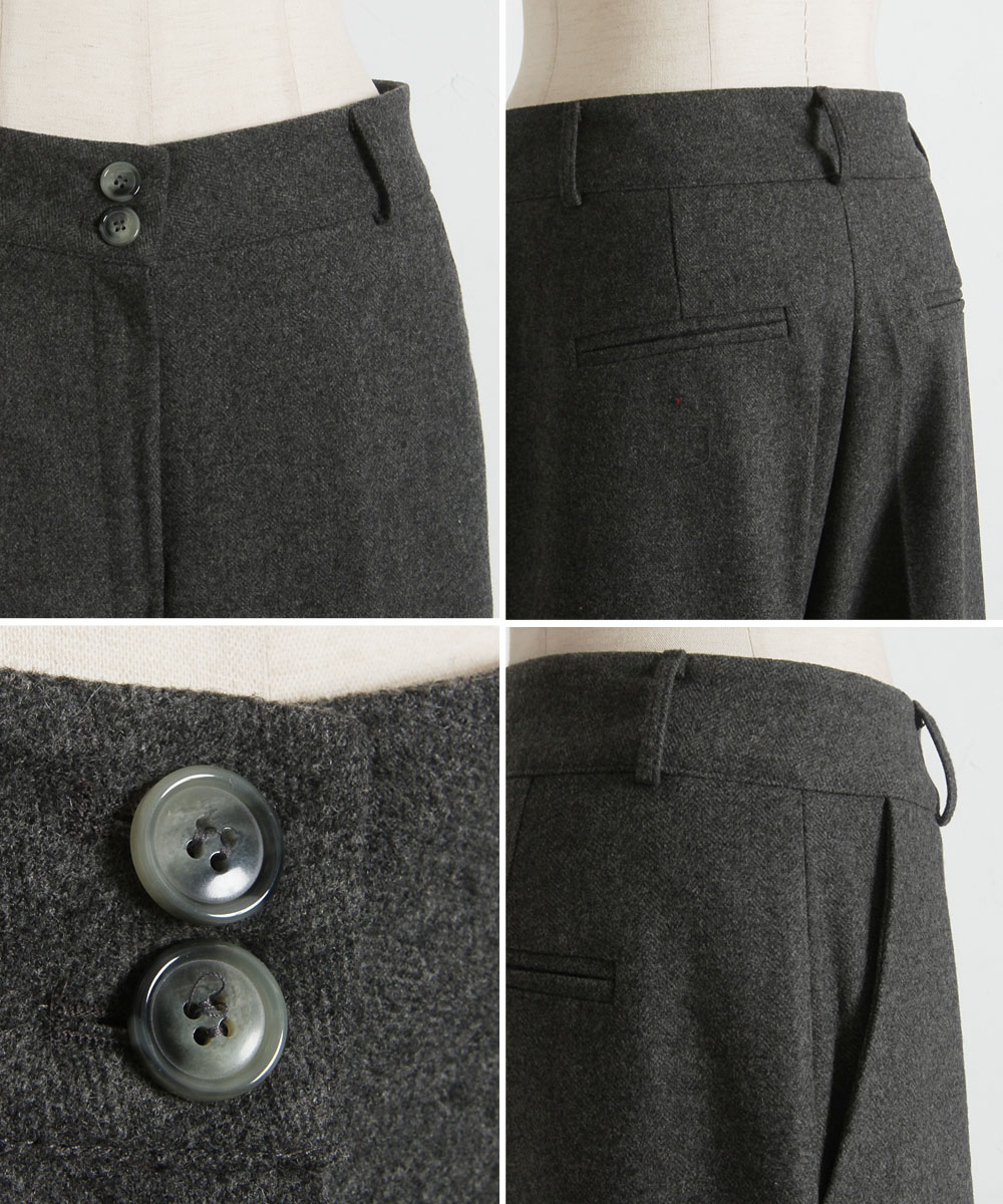 本体/ポリエステル52% ウール37% ナイロン6% スパン5% 裏地/ポリエステル100% (韓国製・伸縮性:あり・透け感:なし・裏地:あり) |